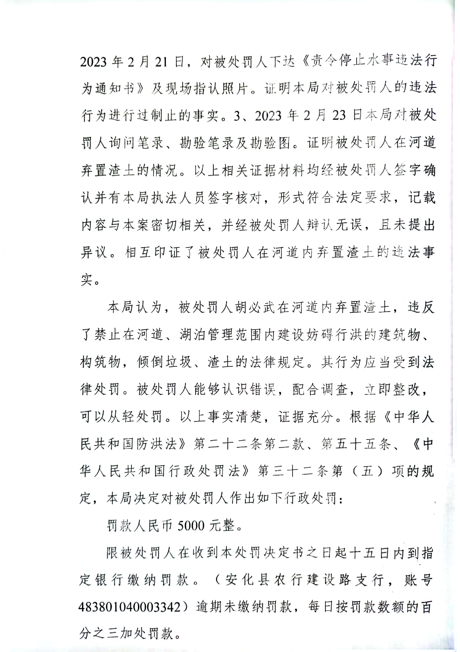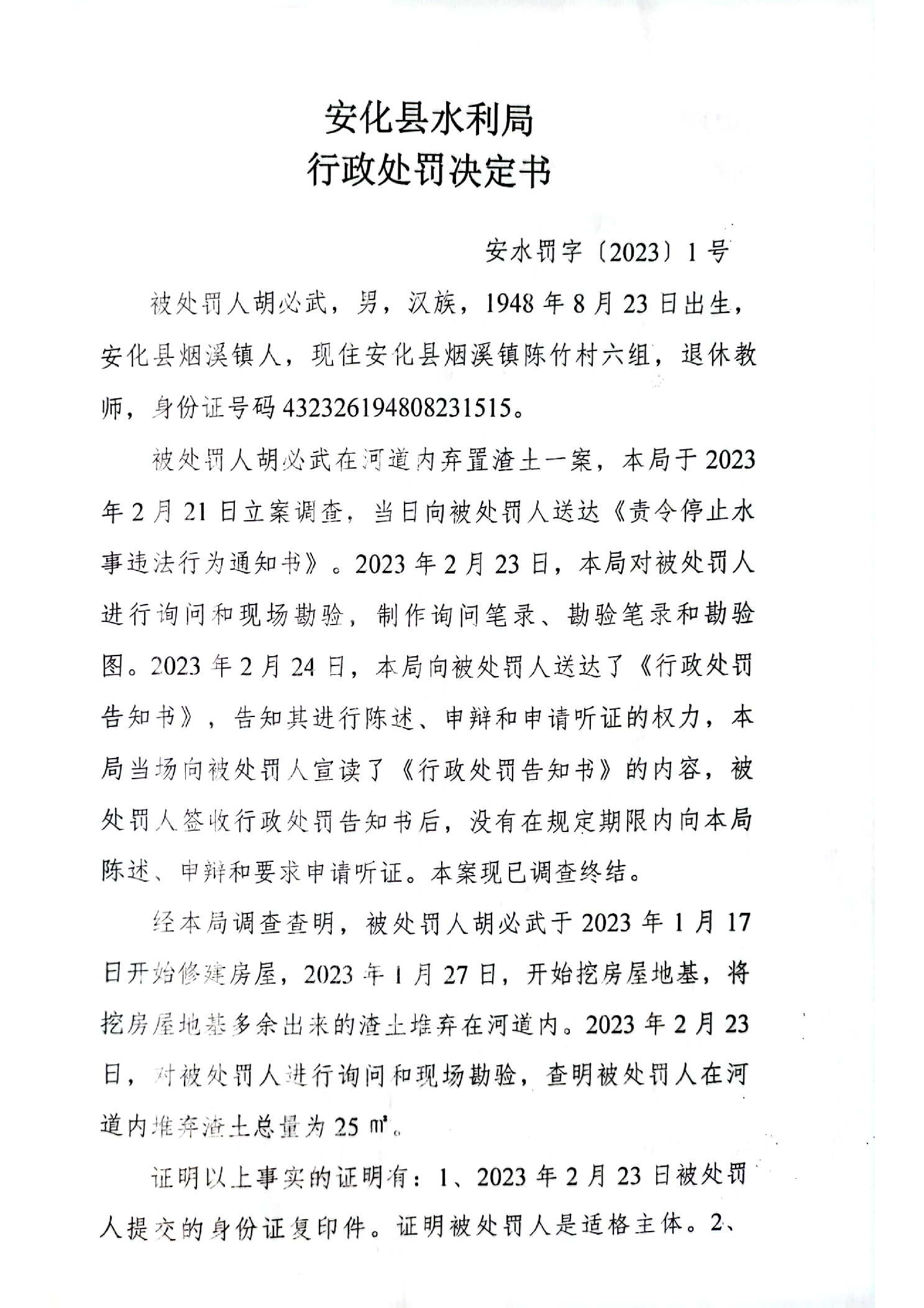 安水罚字(2023)1号安化县烟溪镇陈竹村六组河道内弃置渣土