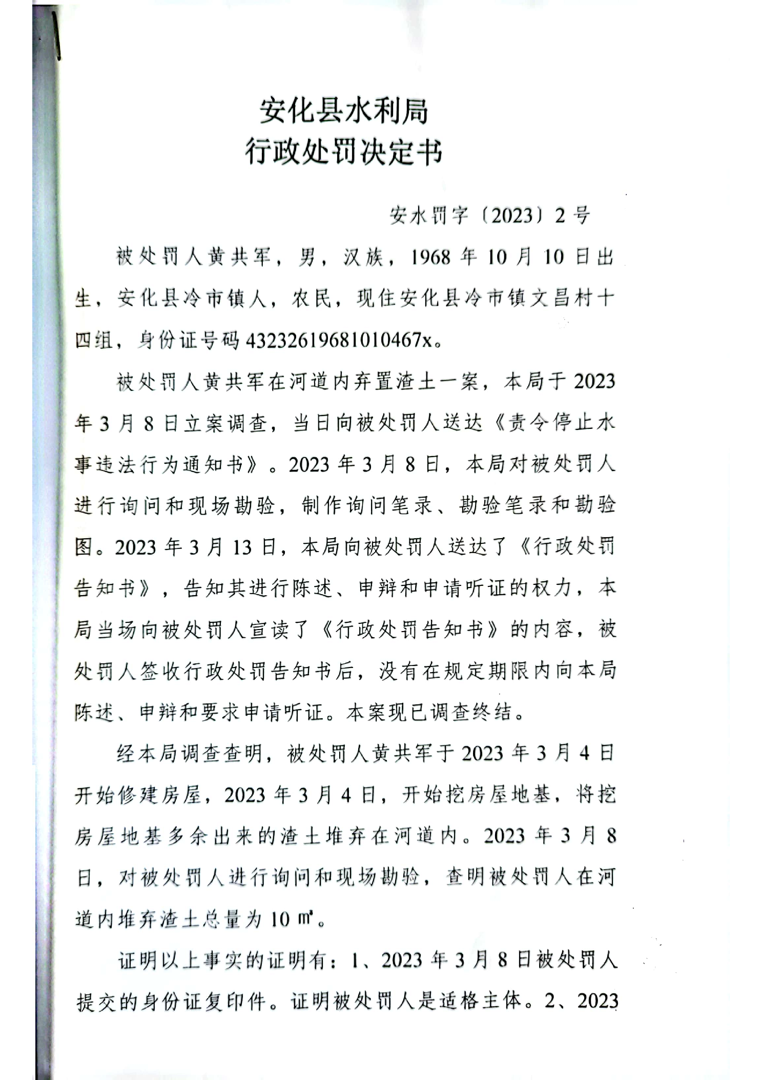 安水罚字(2023)2号安化县冷市镇文昌村思模溪河道内弃置渣土(1)
