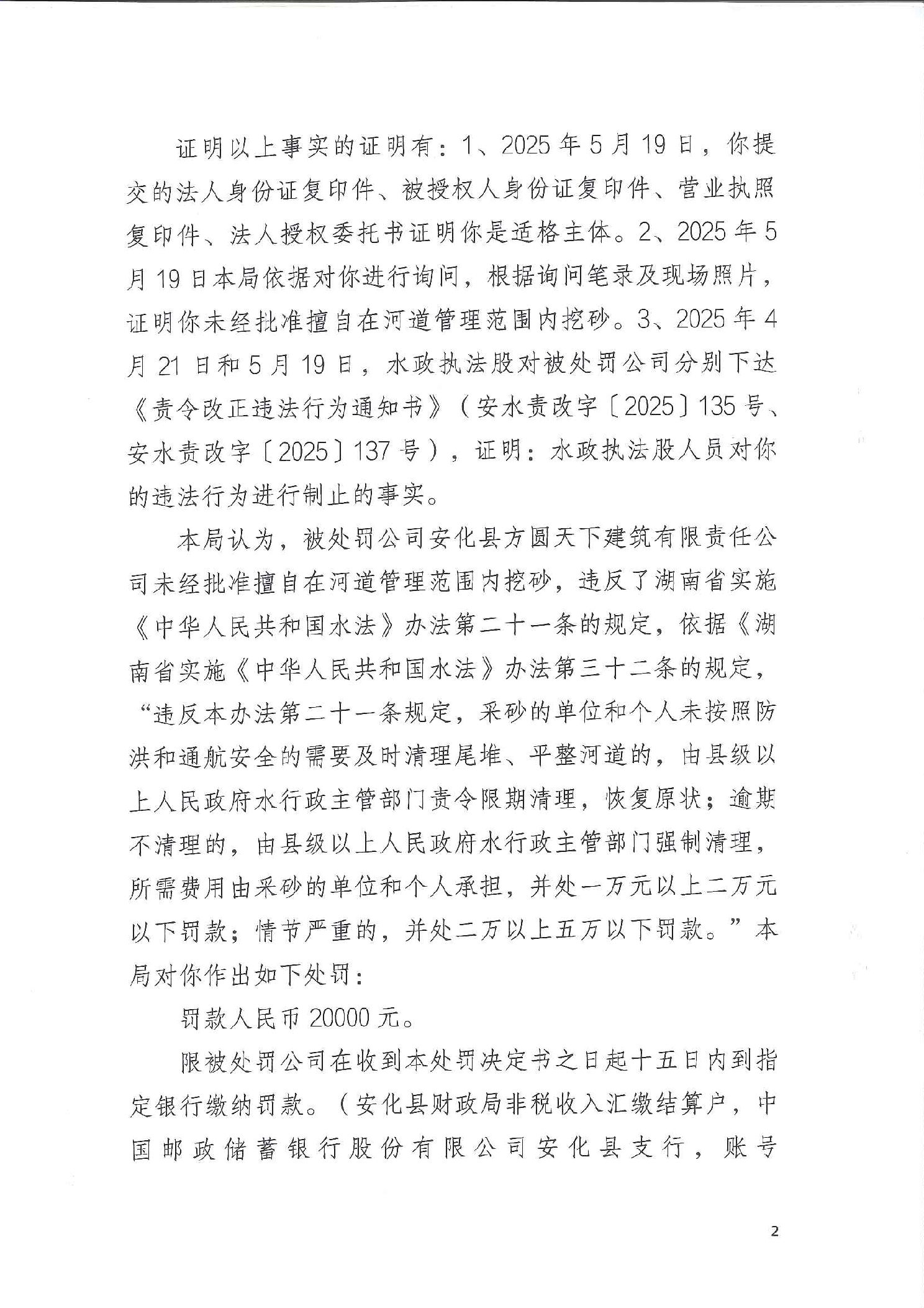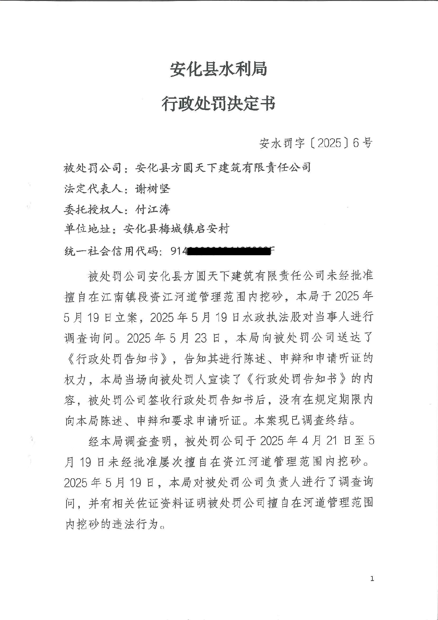 安化县水利局行政处罚决定书 安水罚字〔2025】6号