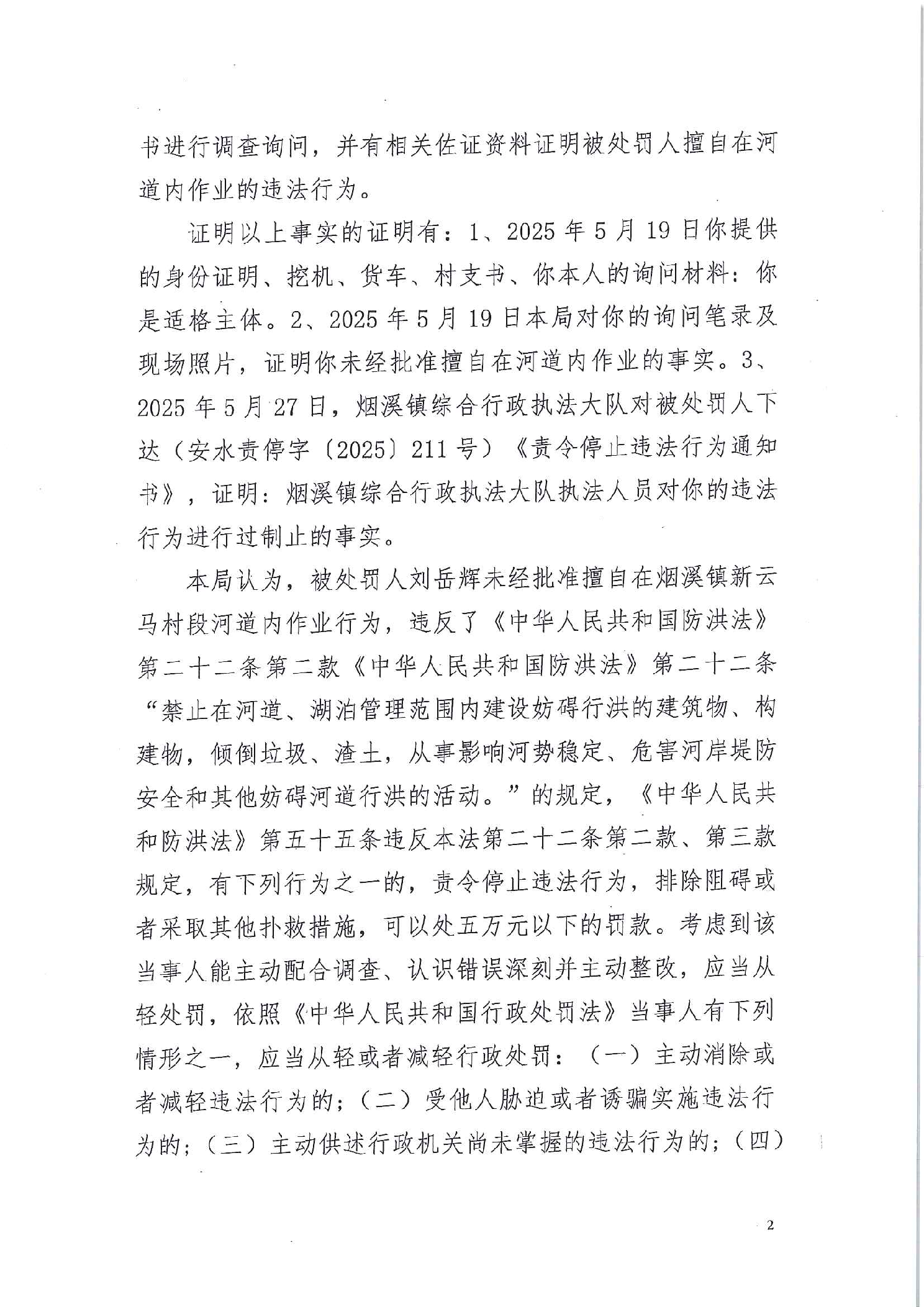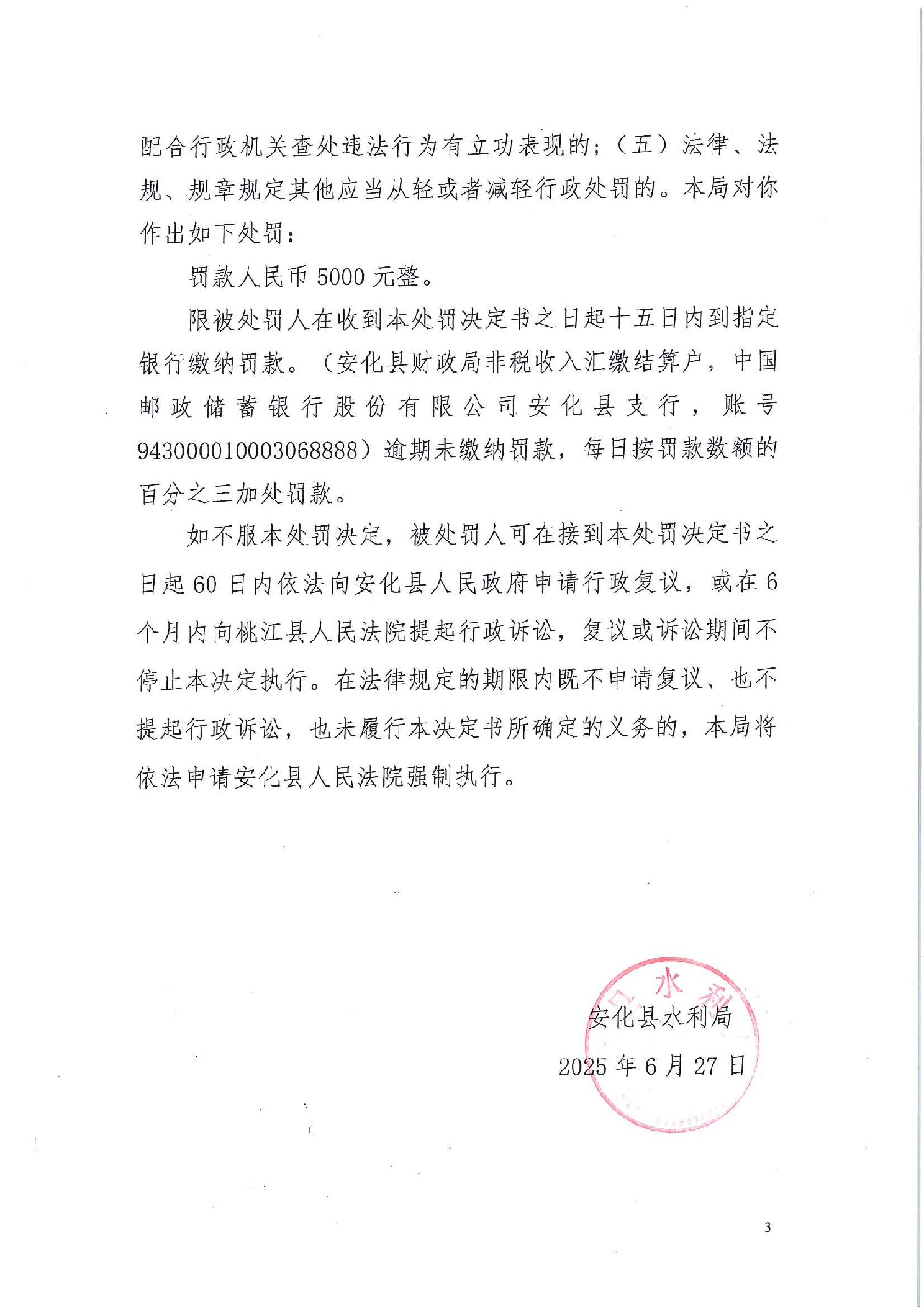 安化县水利局行政处罚决定书 安水罚字(2025)8号
