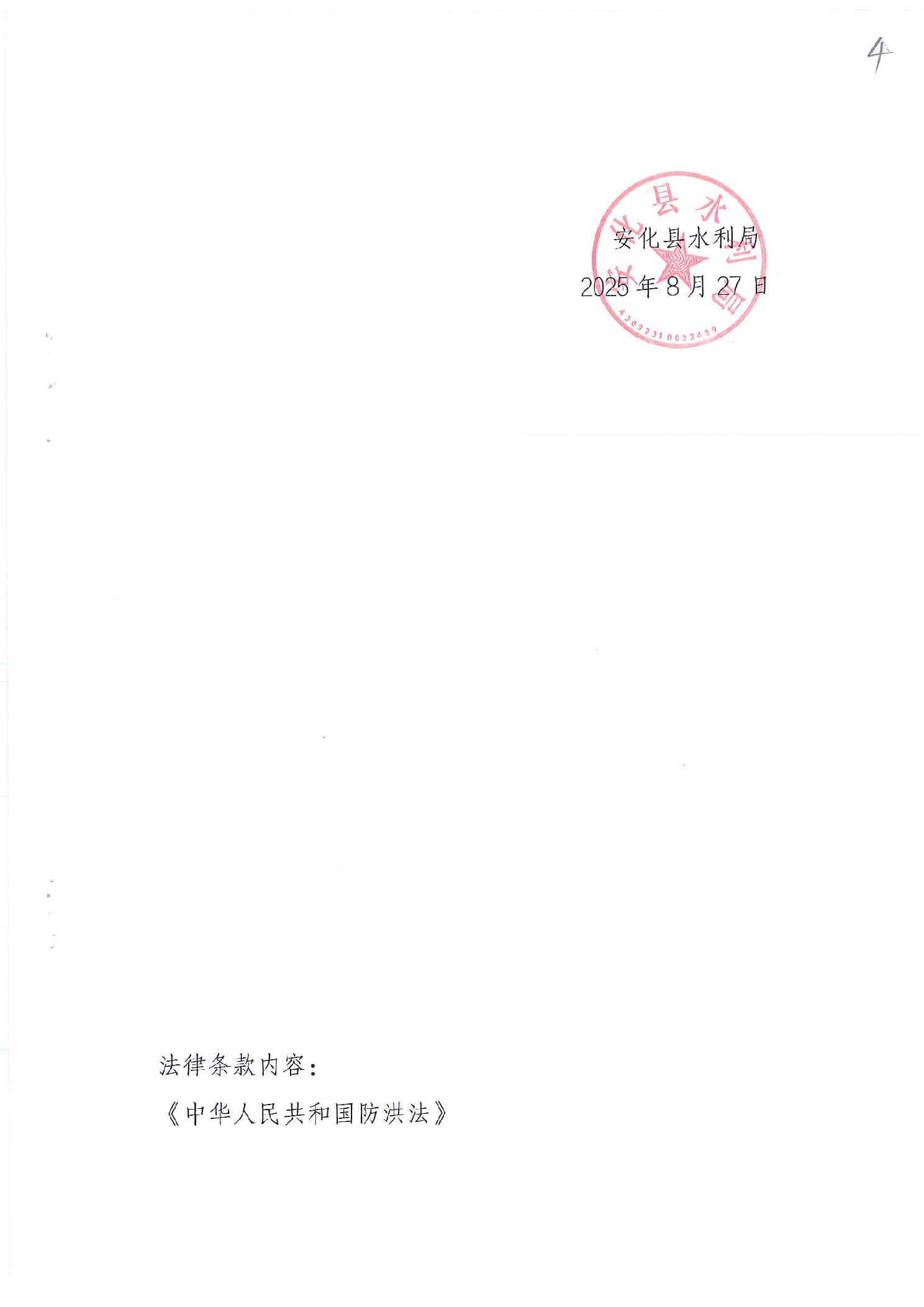 安化县水利局行政处罚决定书 安水罚决字(2025)10号