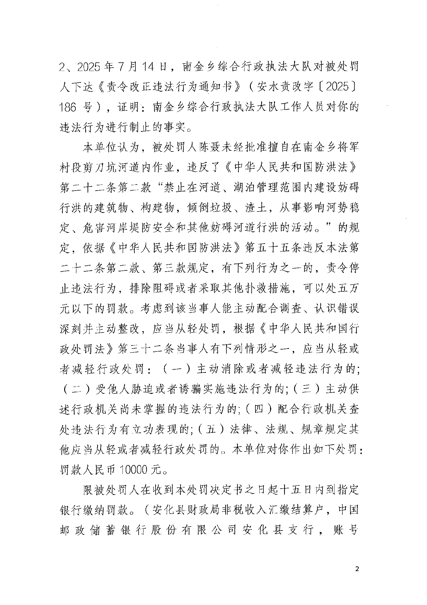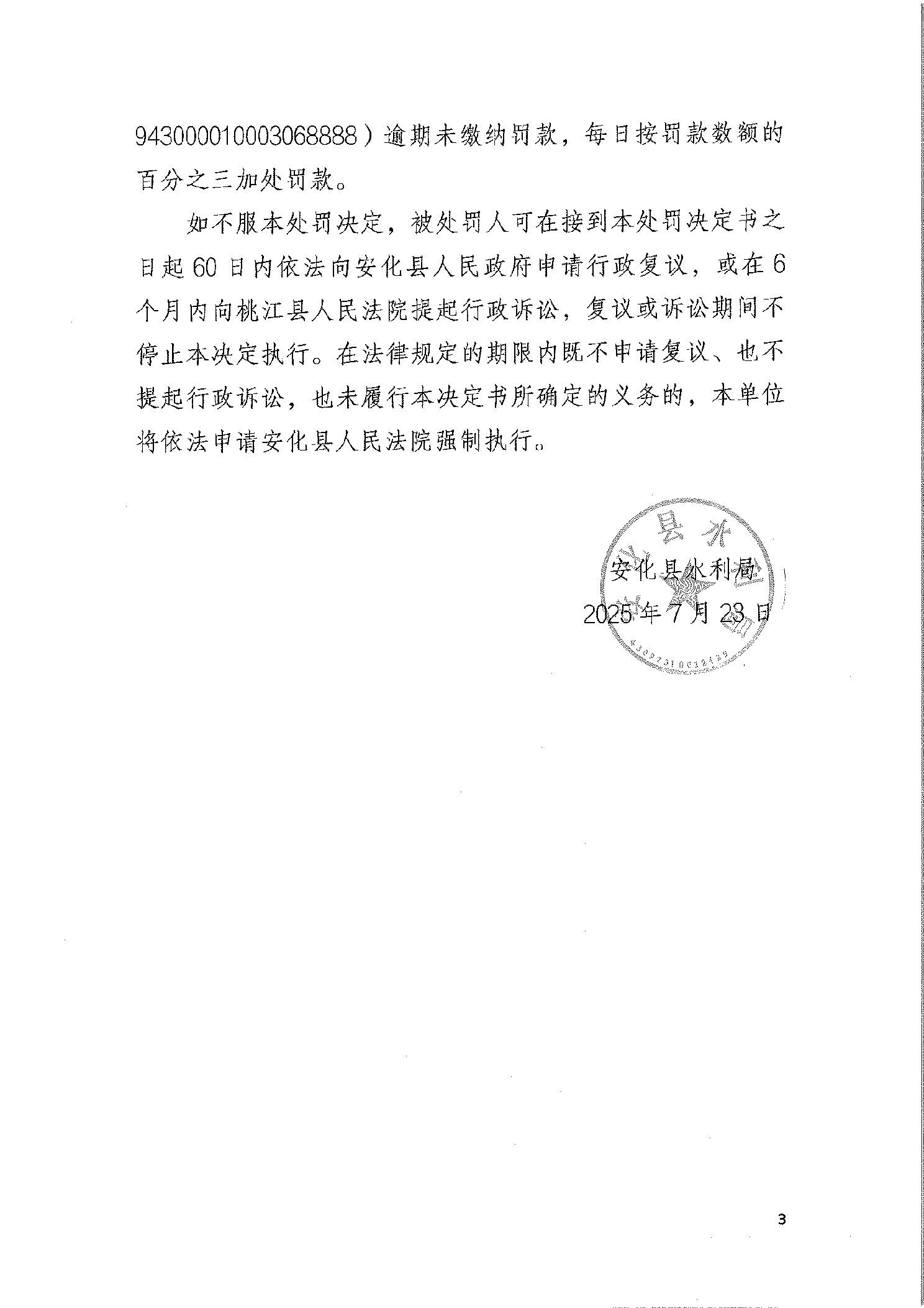 安化县水利局行政处罚决定书 安水罚决字(2025)12号