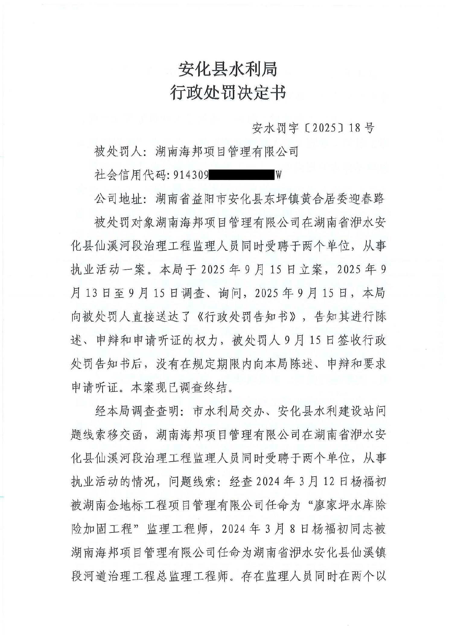 安化县水利局行政处罚决定书 安水罚决字(2025)18号