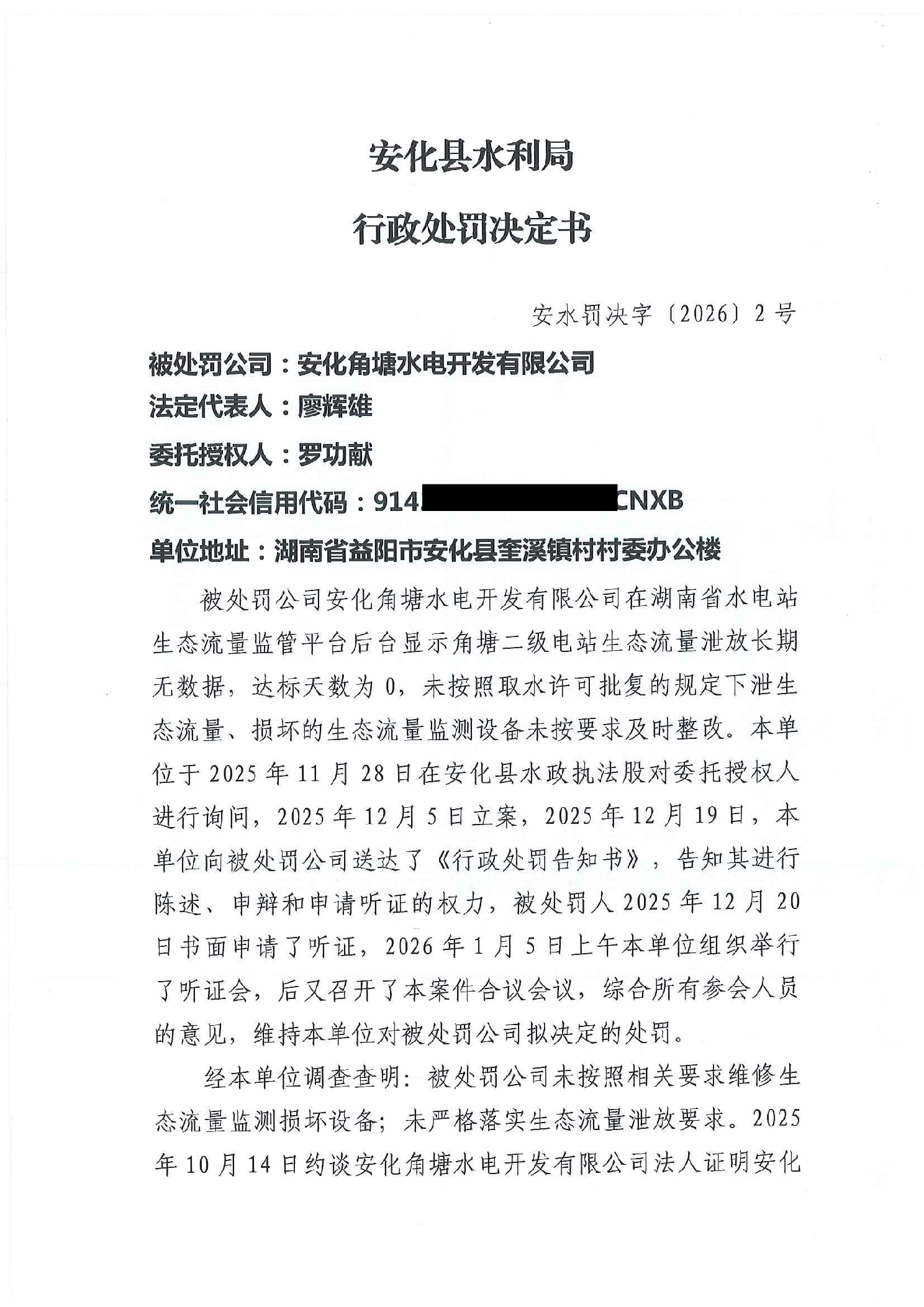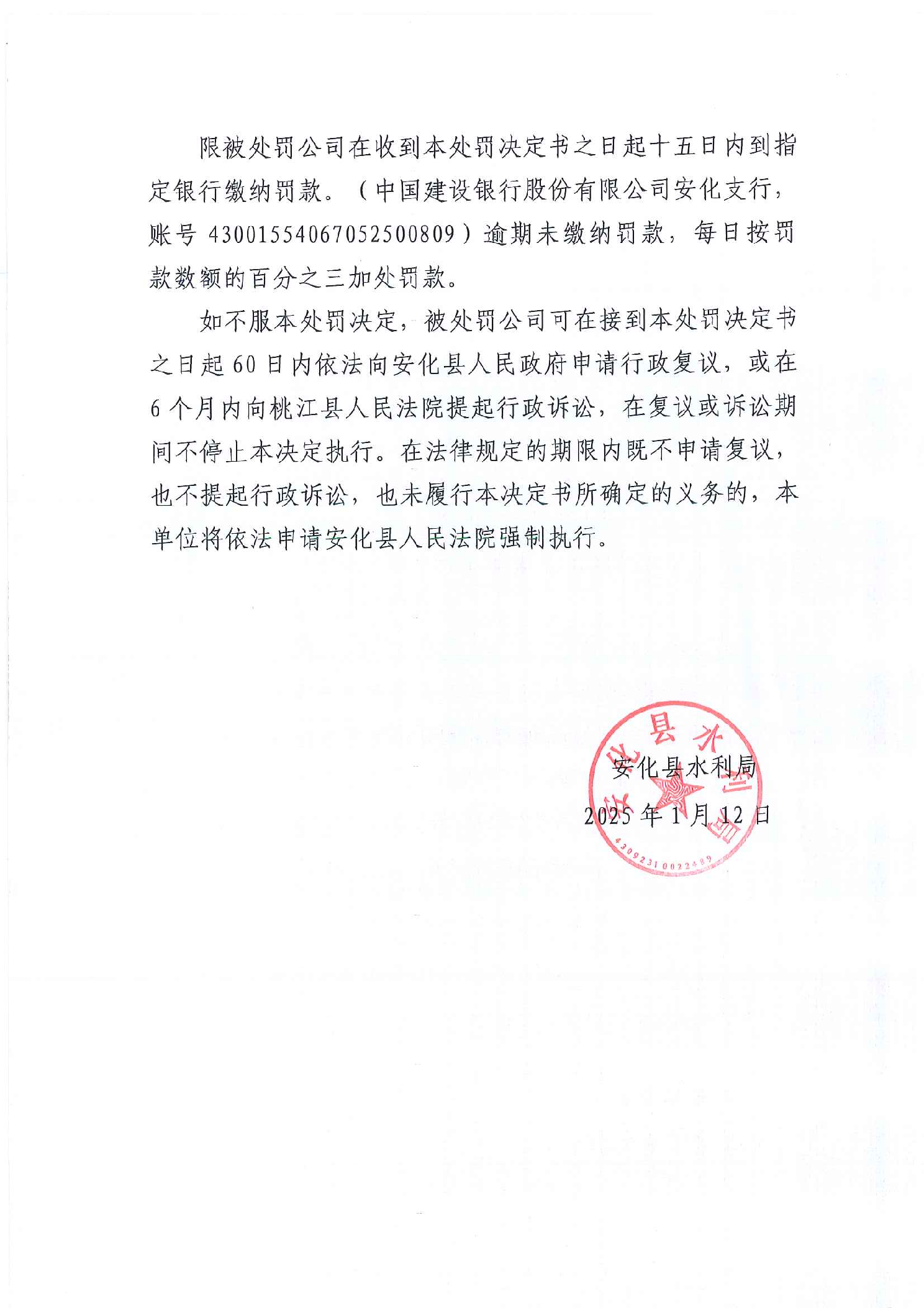 安化县水利局行政处罚决定书 安水罚决字(2026)2号