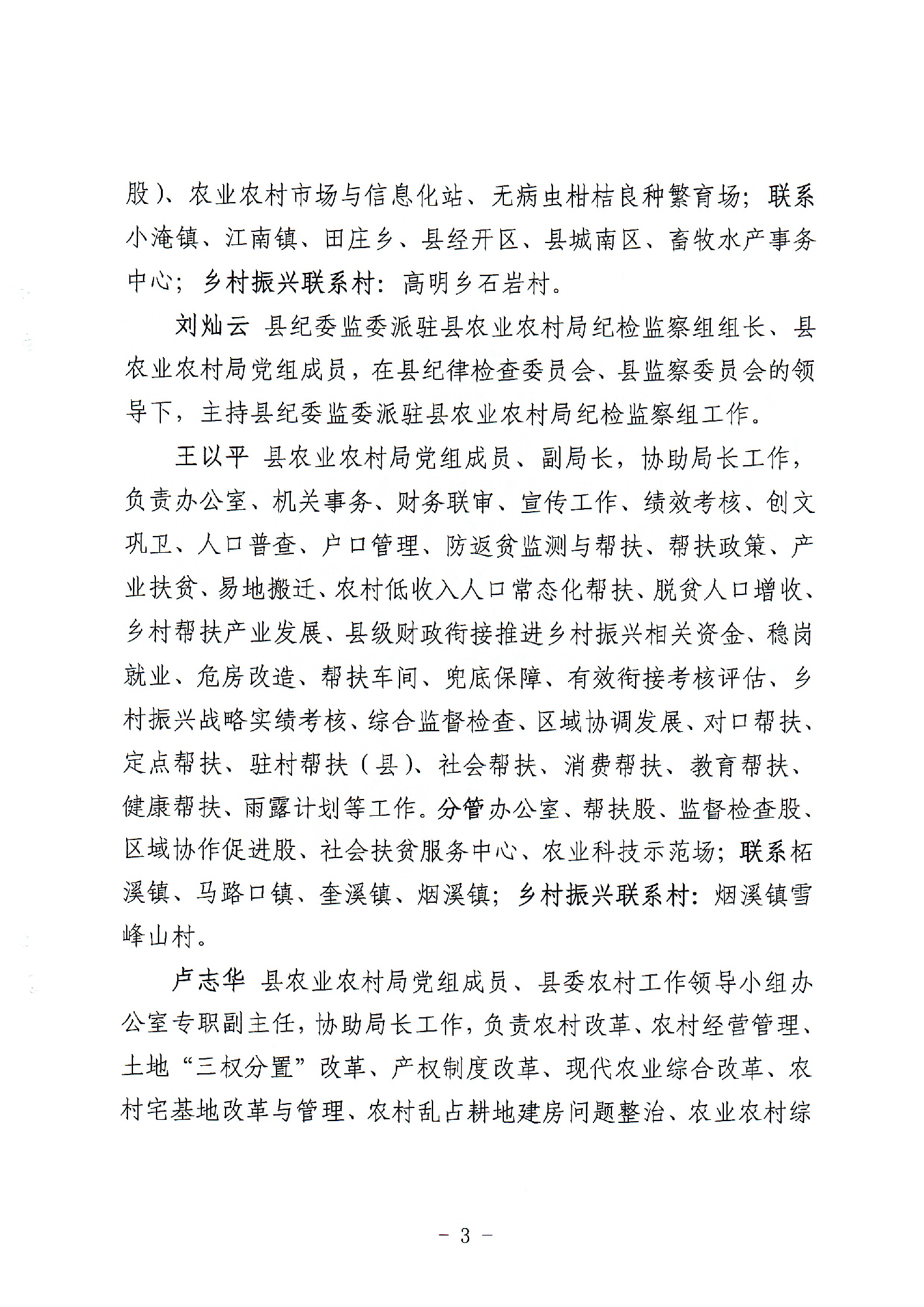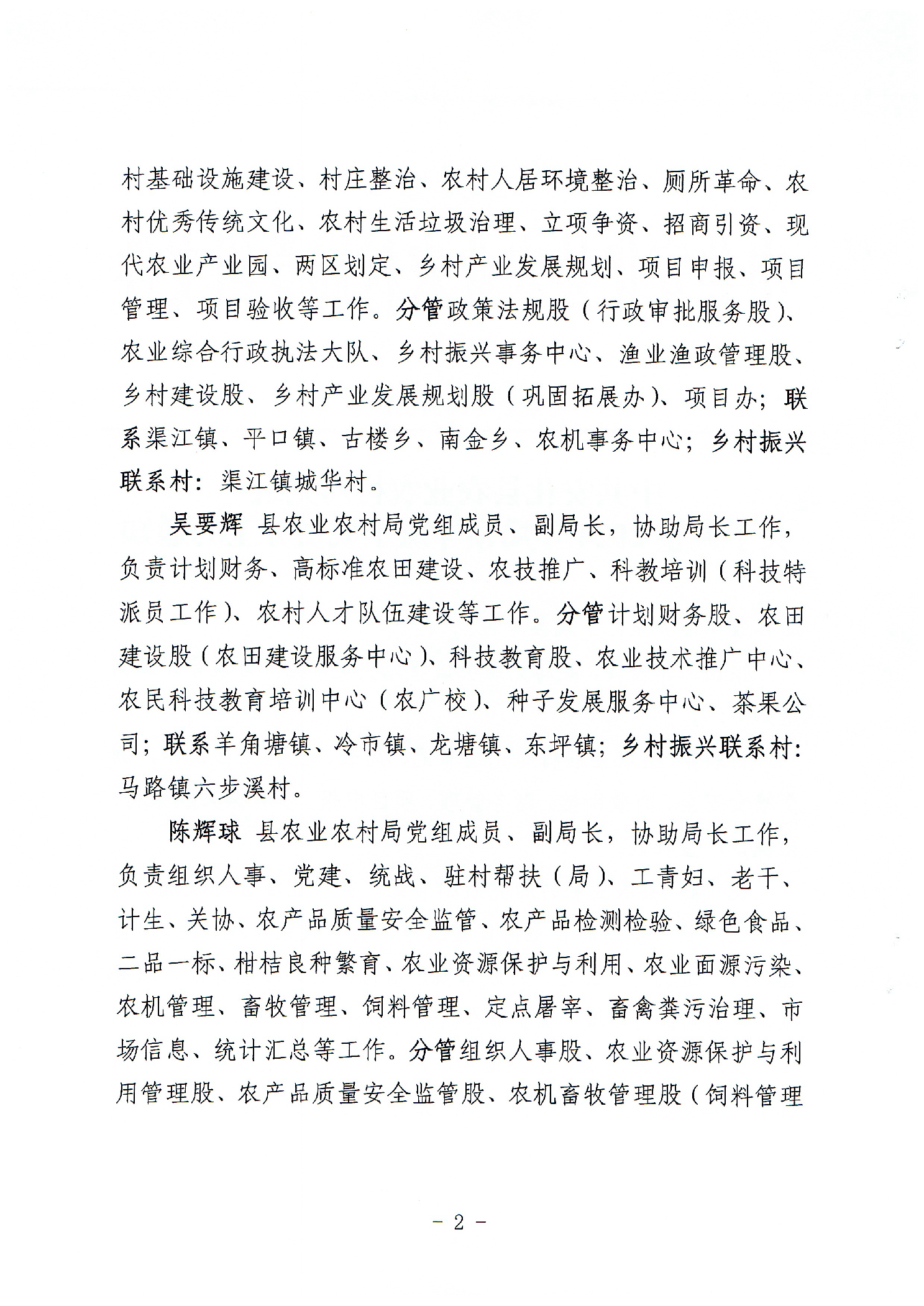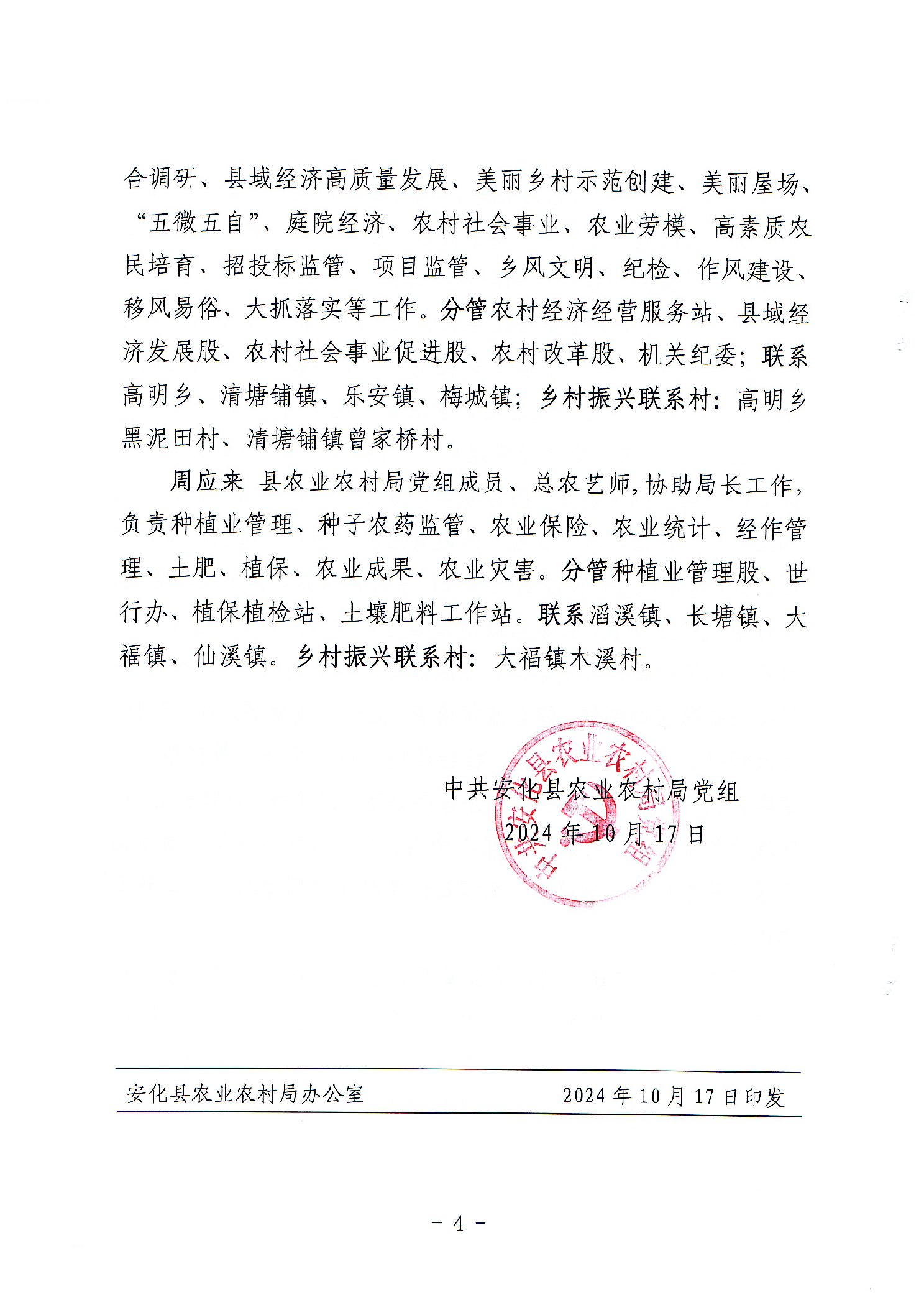 安化县农业农村局关于调整2024年局领导班子成员分工的通知 安农党〔2024〕17号