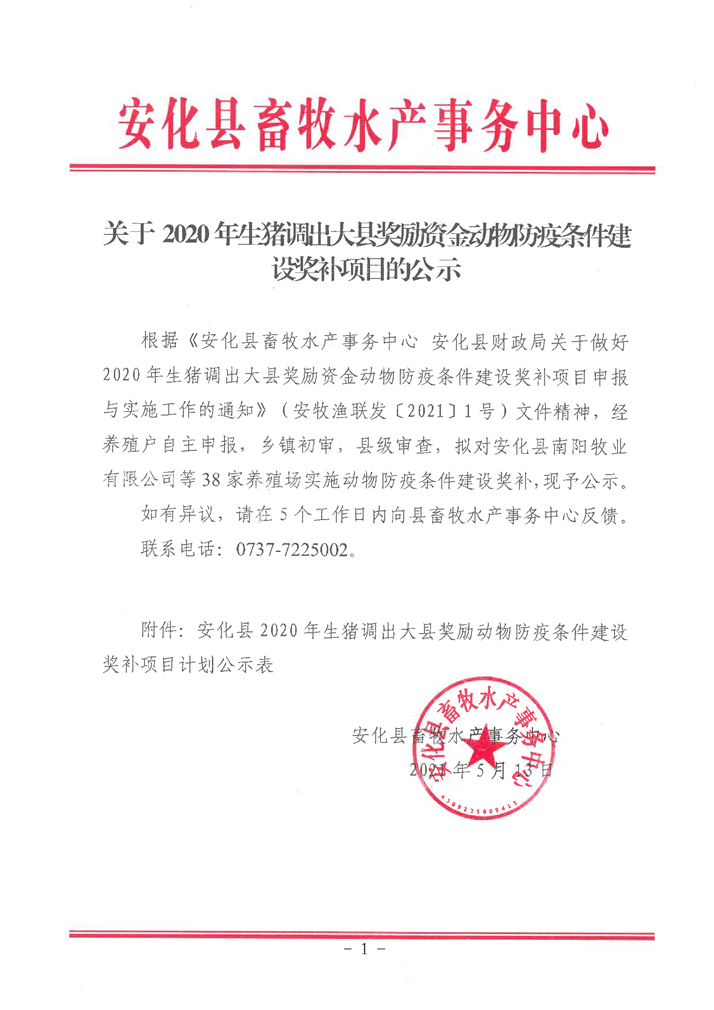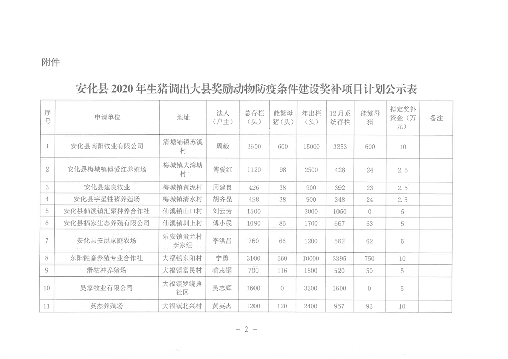 关于2020年生猪调出大县奖励资金动物防疫条件建设奖补项目的公示