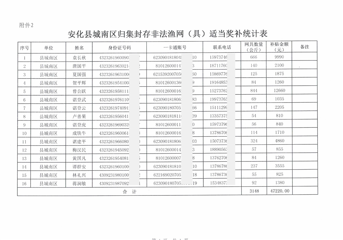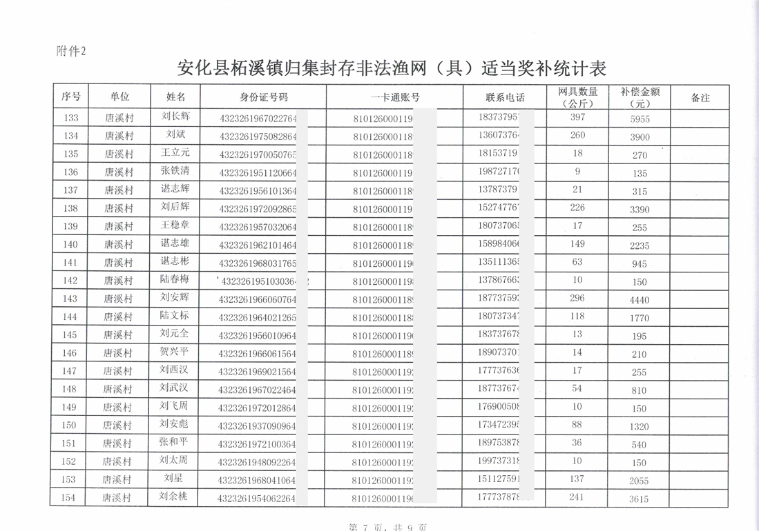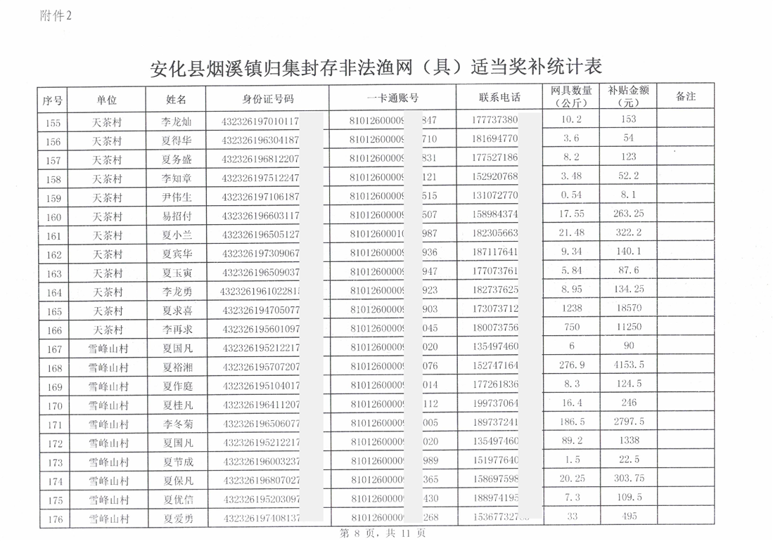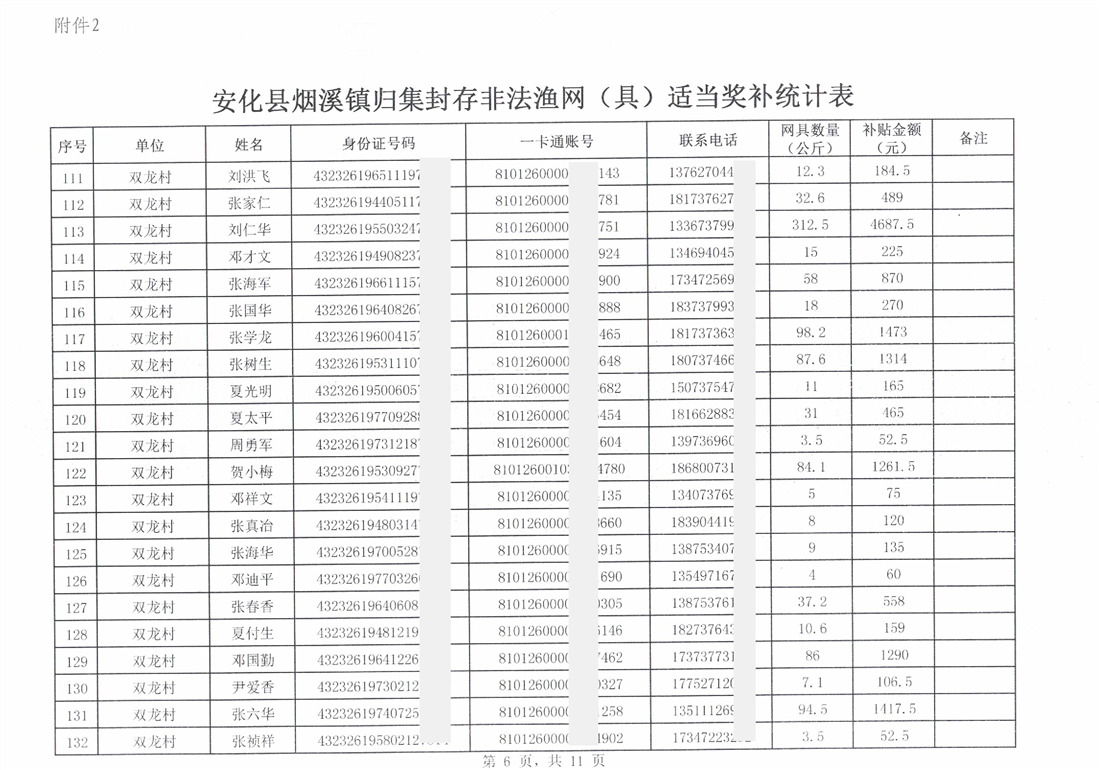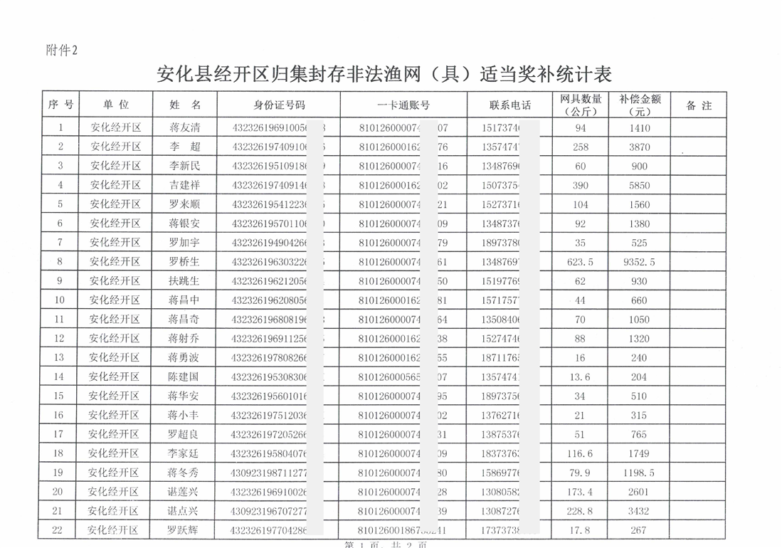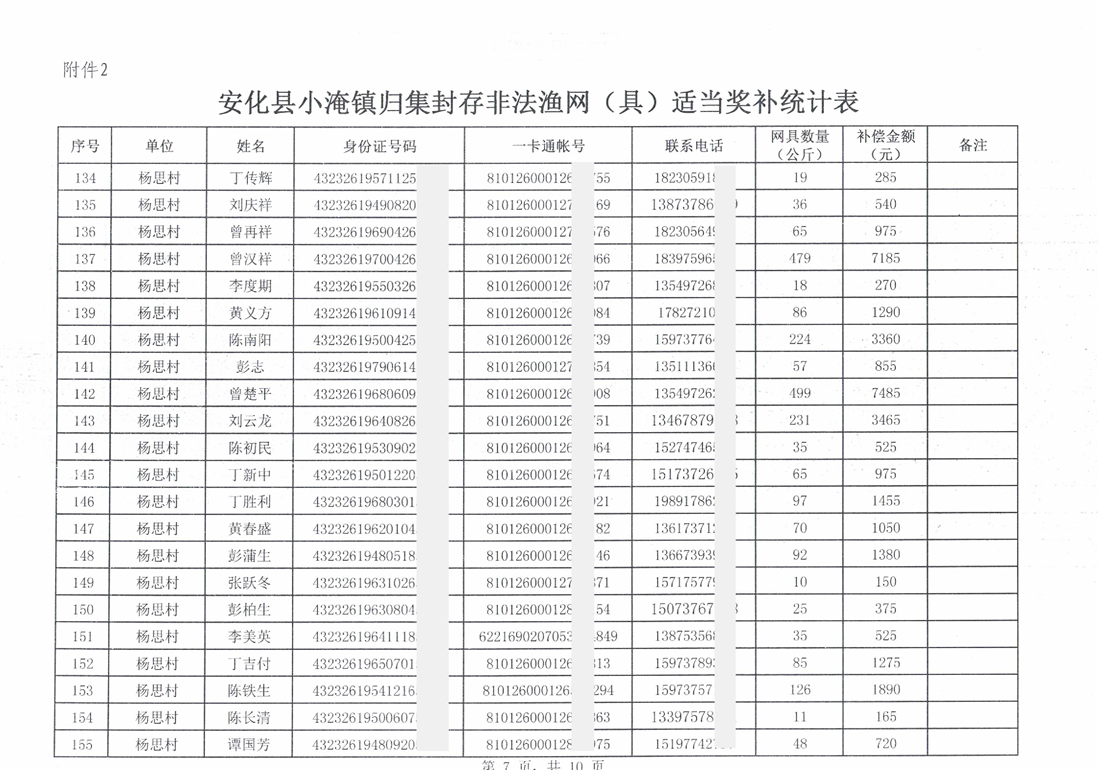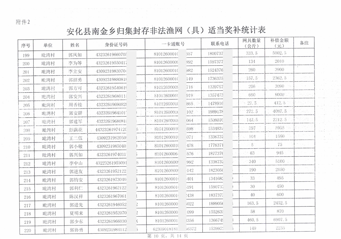 安化县禁捕退捕工作领导小组关于发放禁捕退捕封存渔网(具)收缴报废奖补资金的通知