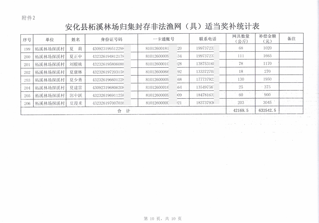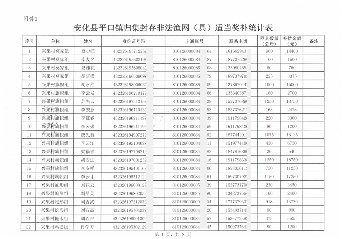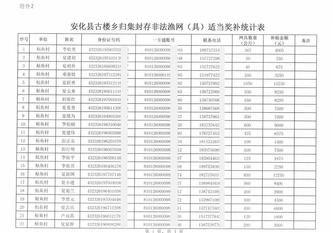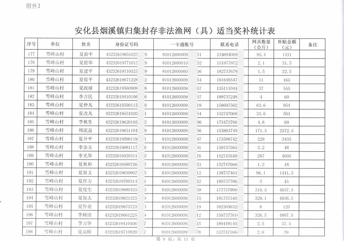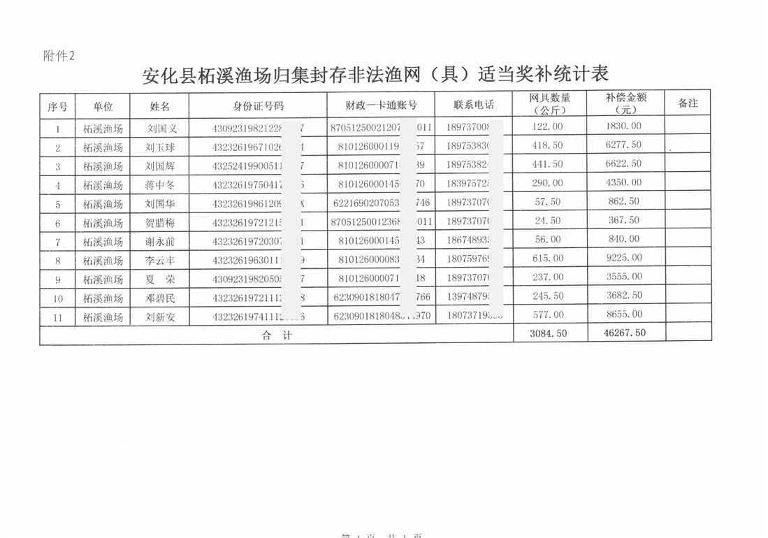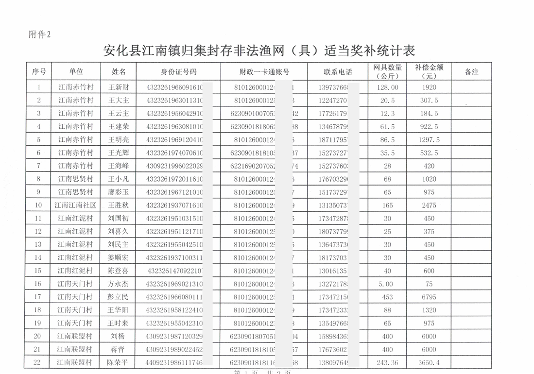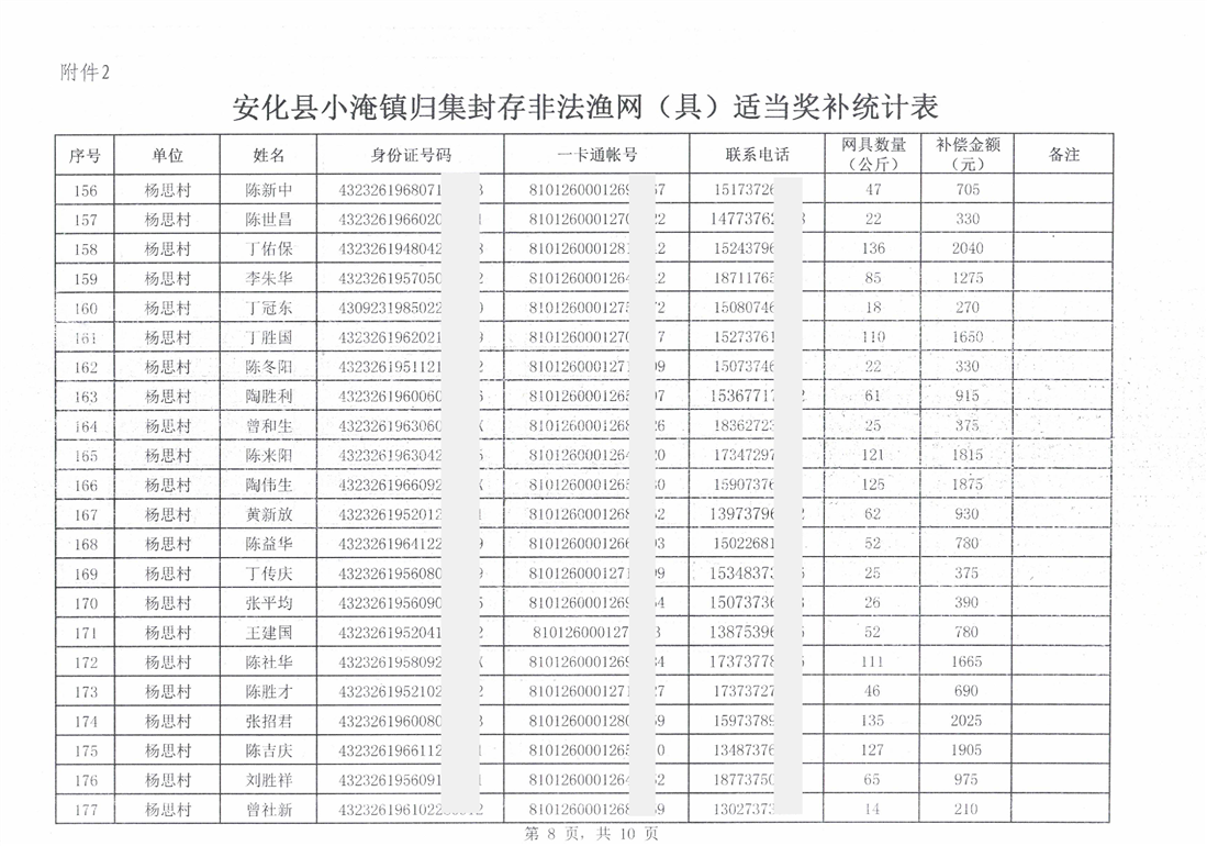 安化县禁捕退捕工作领导小组关于发放禁捕退捕封存渔网(具)收缴报废奖补资金的通知