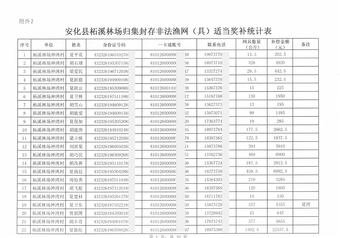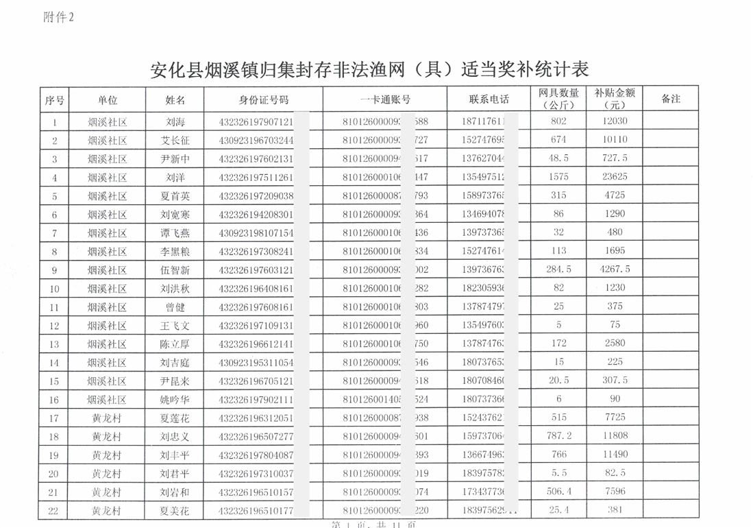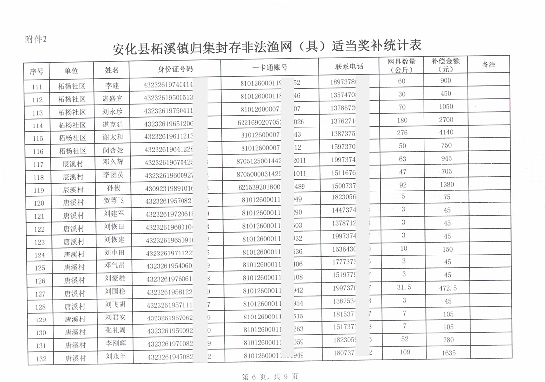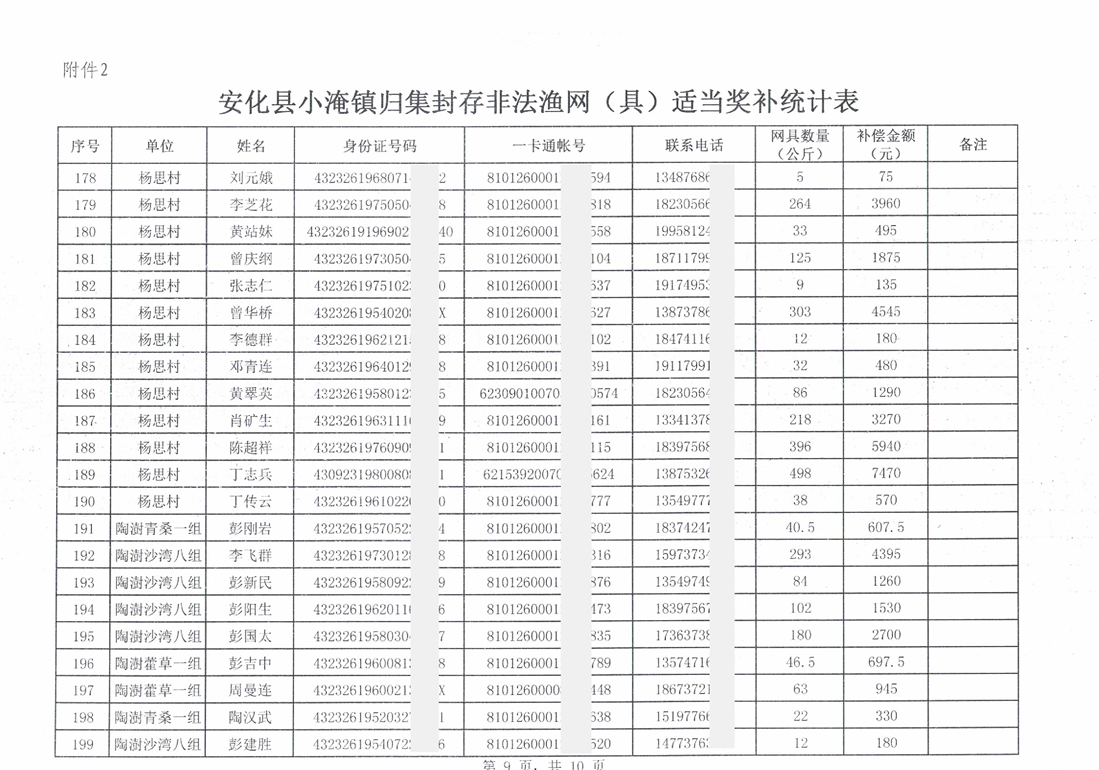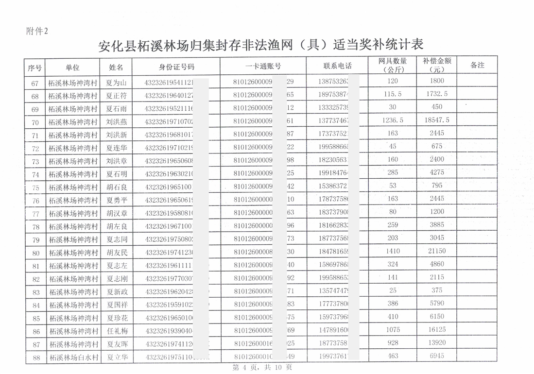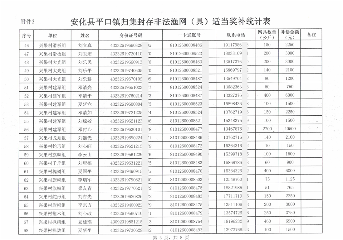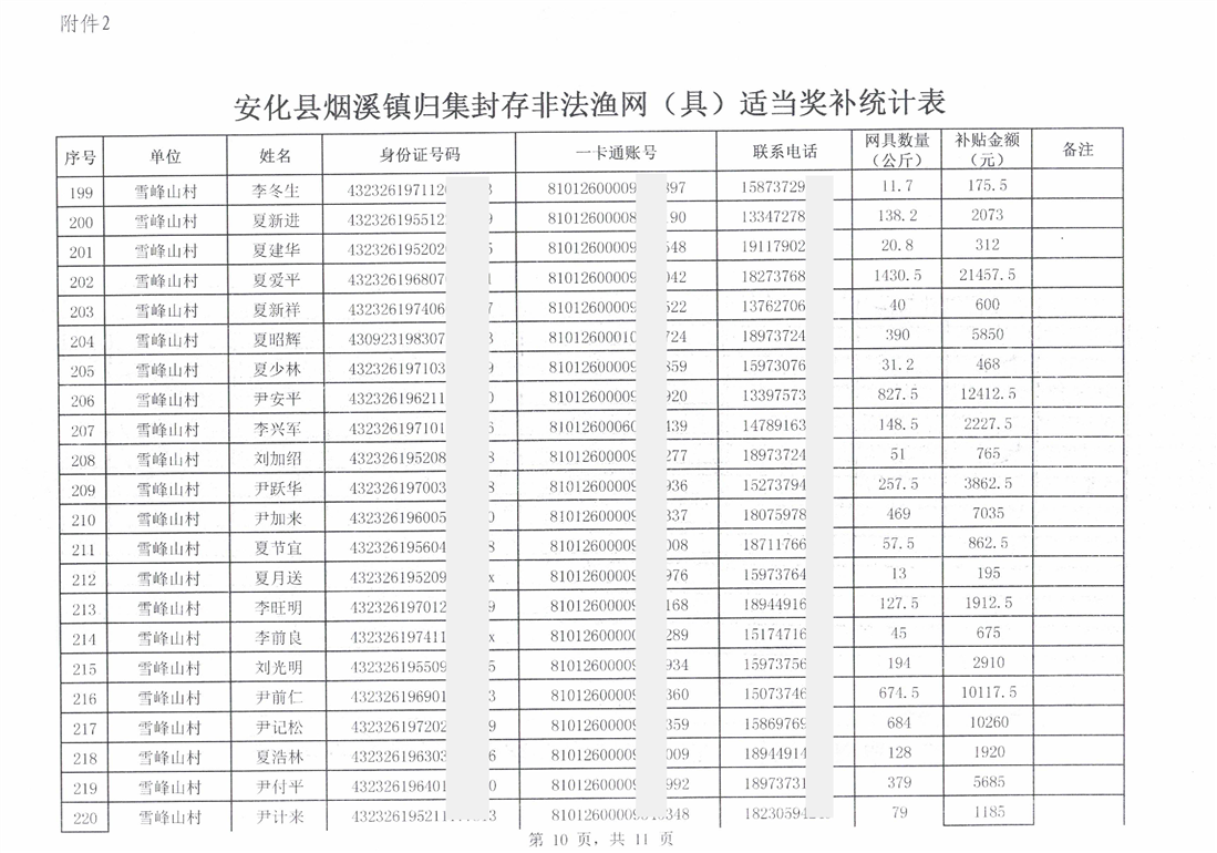 安化县禁捕退捕工作领导小组关于发放禁捕退捕封存渔网(具)收缴报废奖补资金的通知