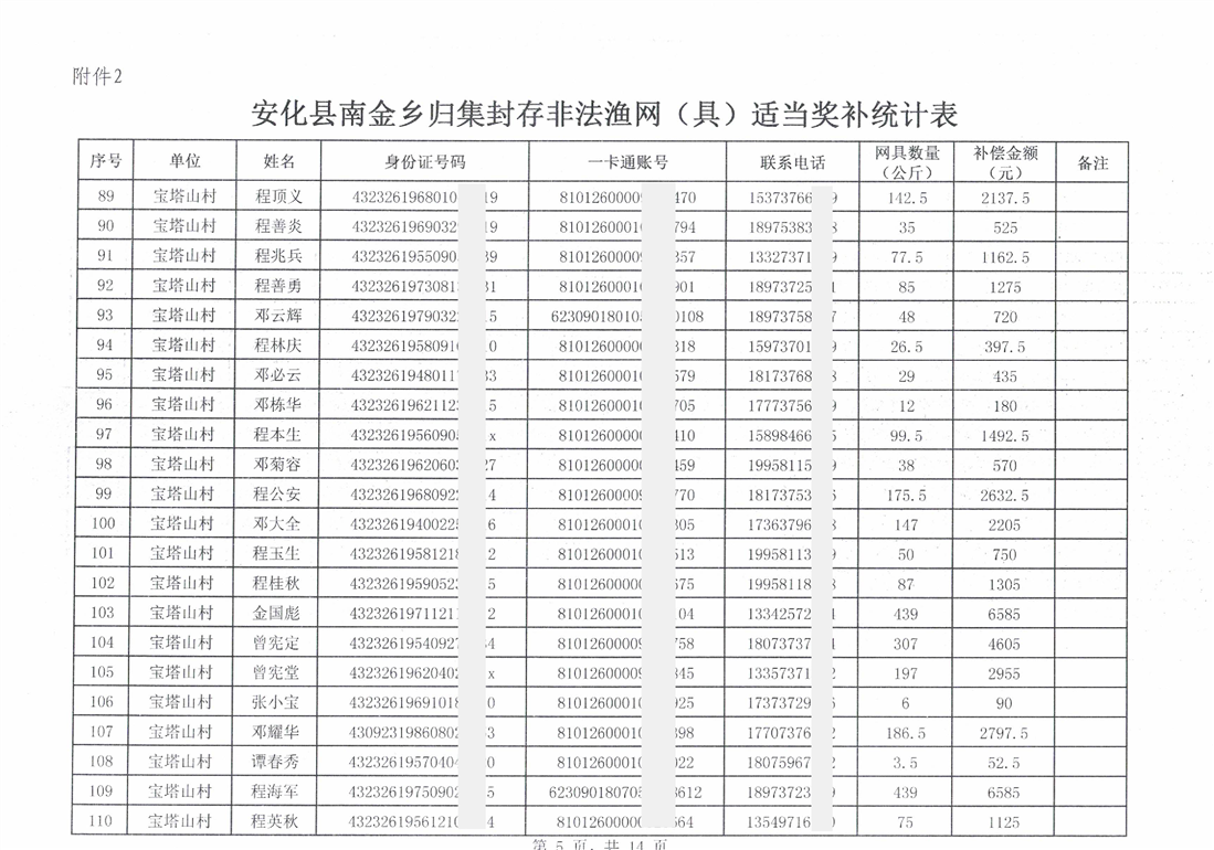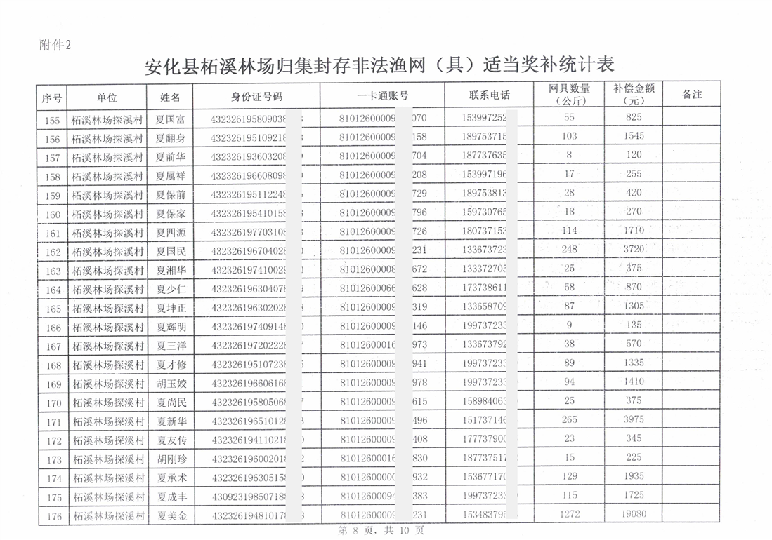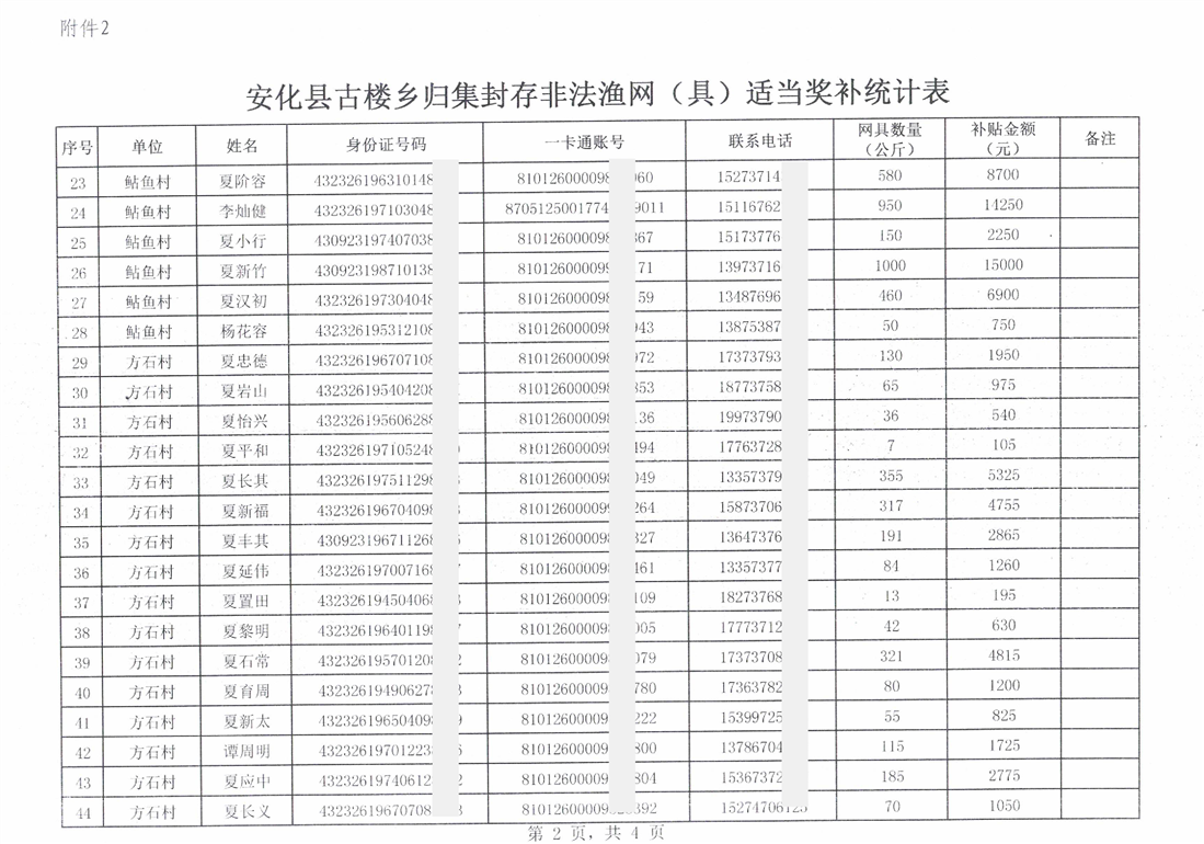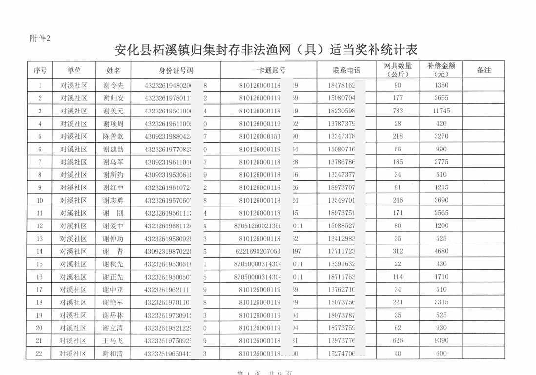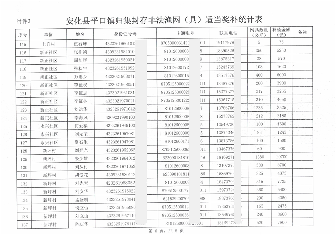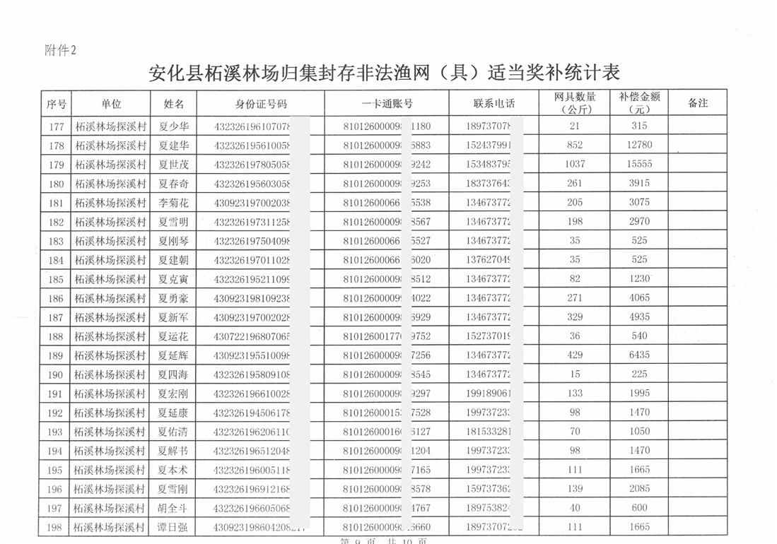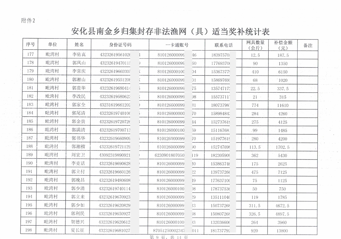 安化县禁捕退捕工作领导小组关于发放禁捕退捕封存渔网(具)收缴报废奖补资金的通知
