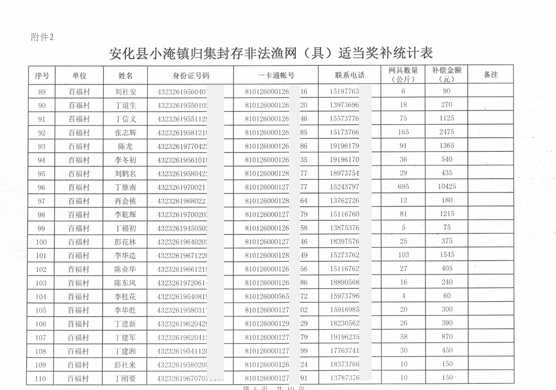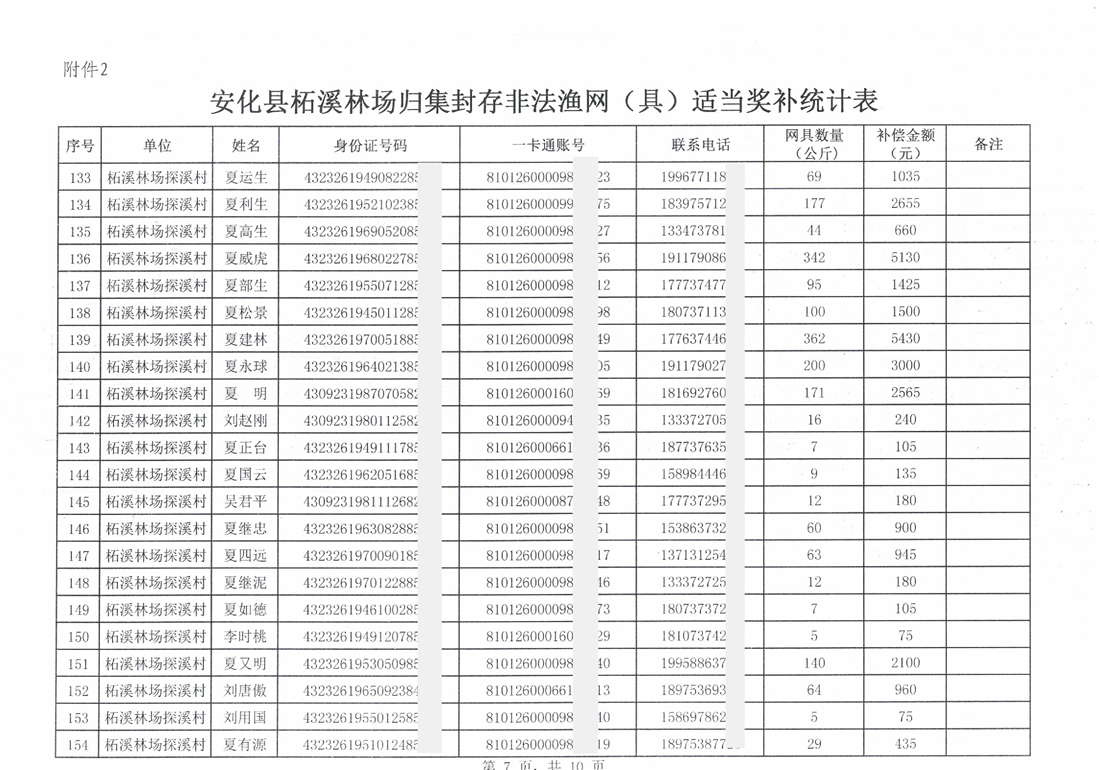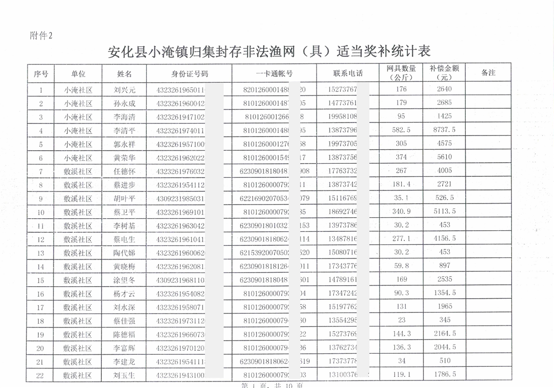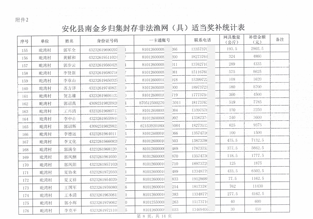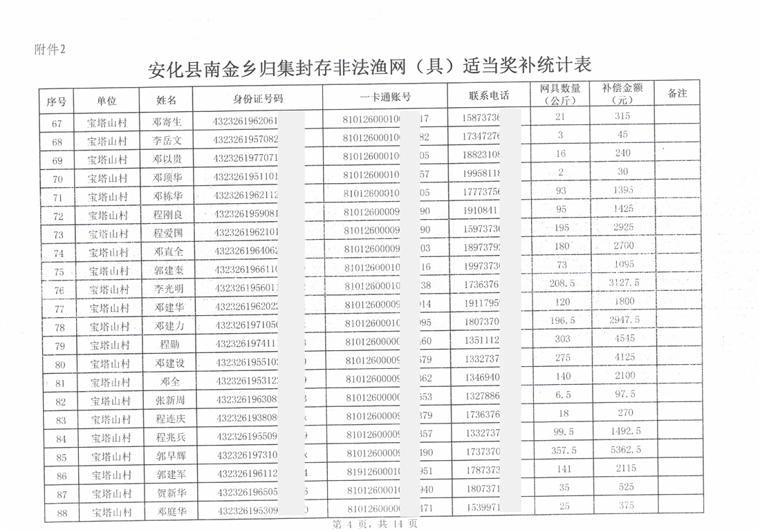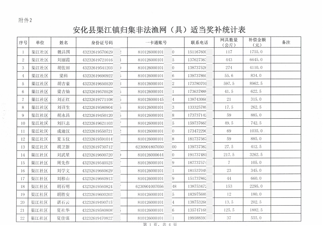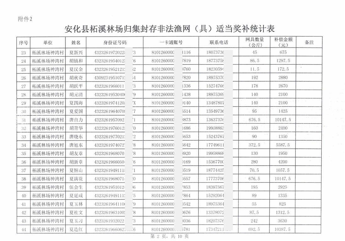 安化县禁捕退捕工作领导小组关于发放禁捕退捕封存渔网(具)收缴报废奖补资金的通知