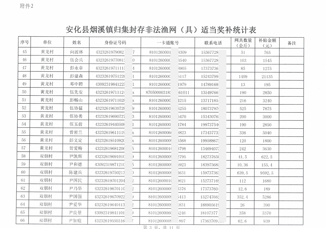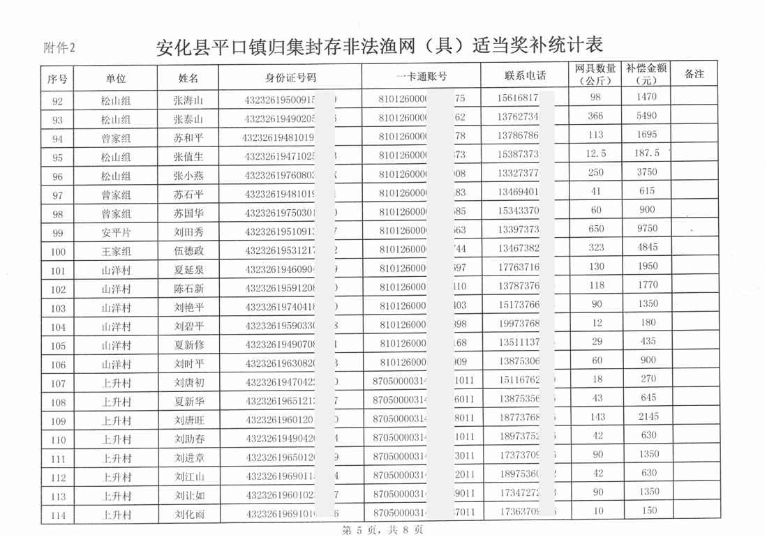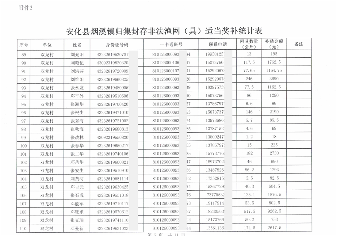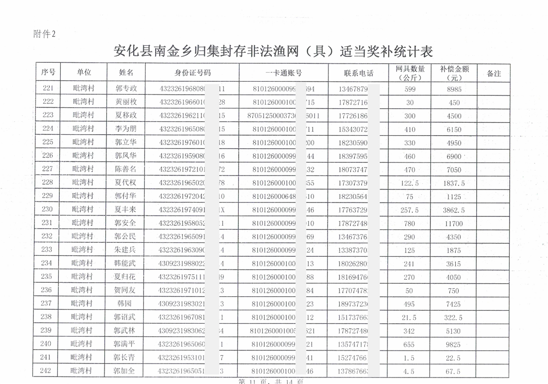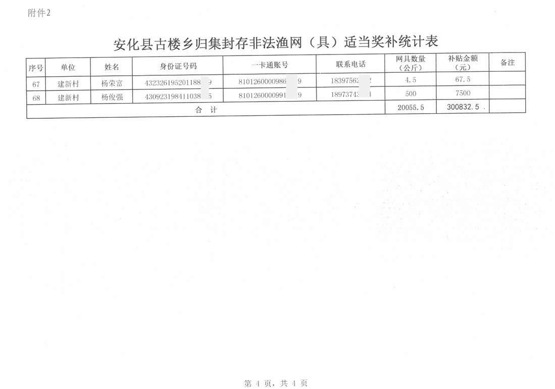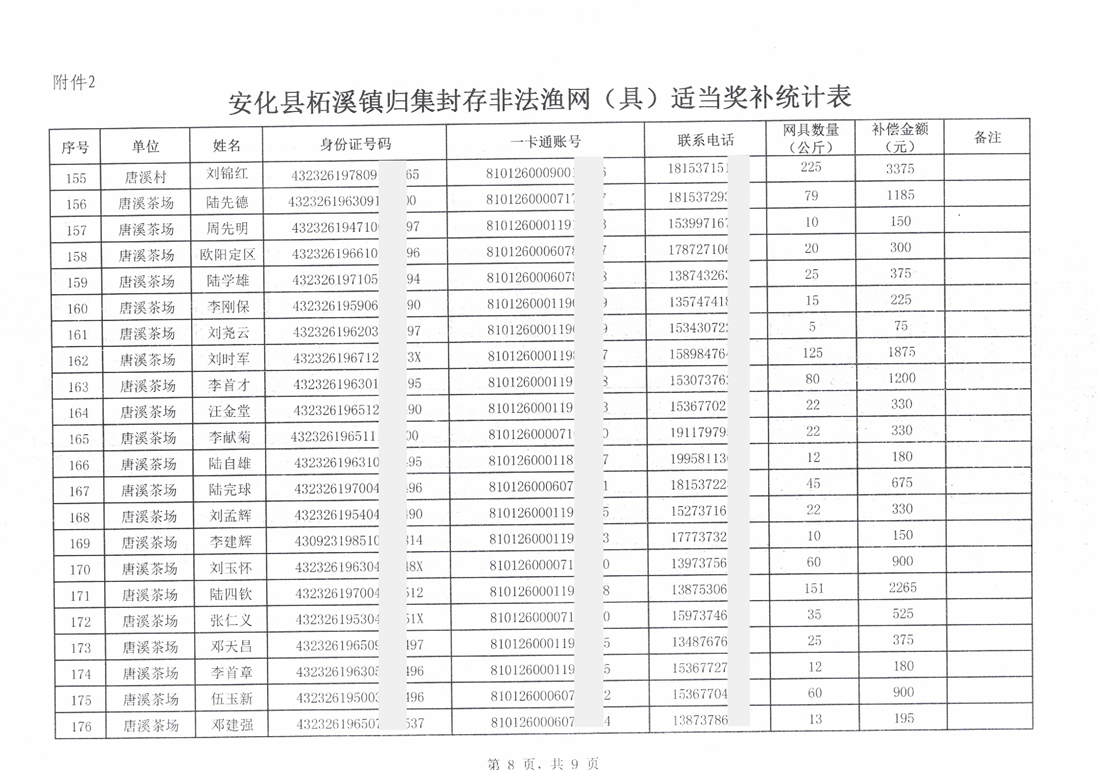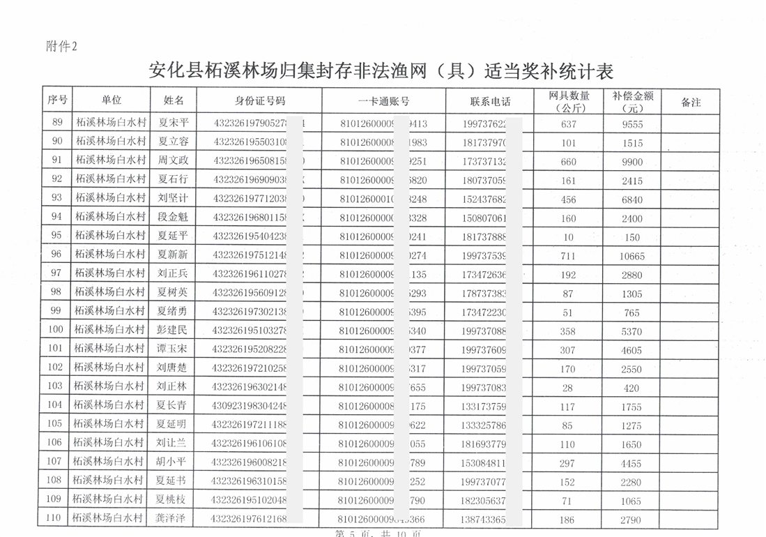 安化县禁捕退捕工作领导小组关于发放禁捕退捕封存渔网(具)收缴报废奖补资金的通知