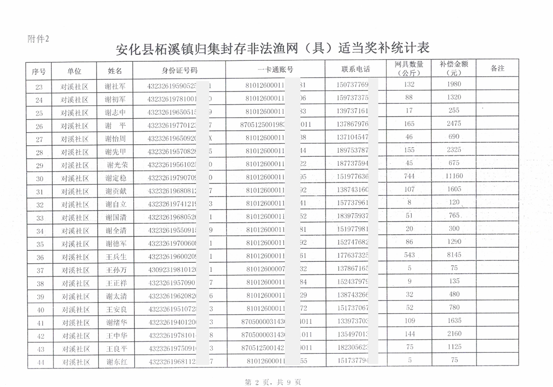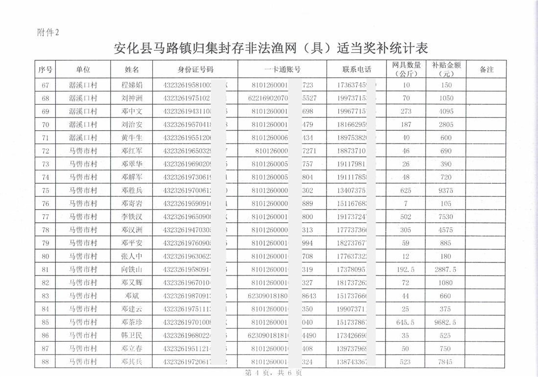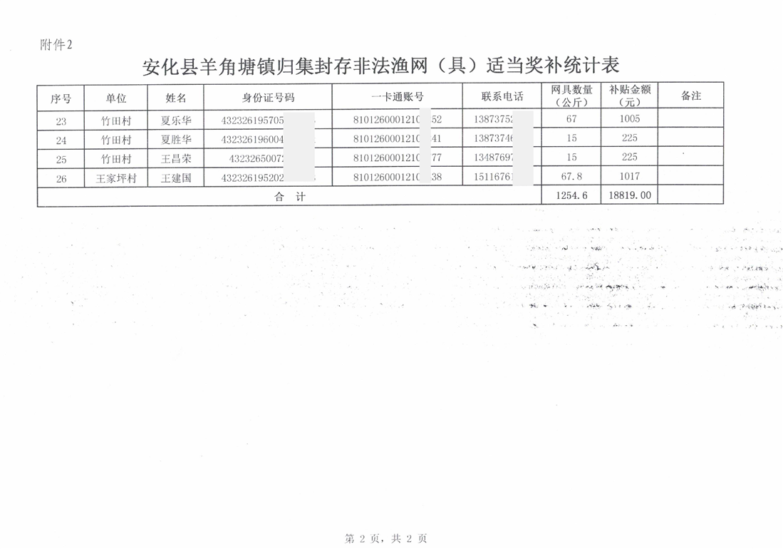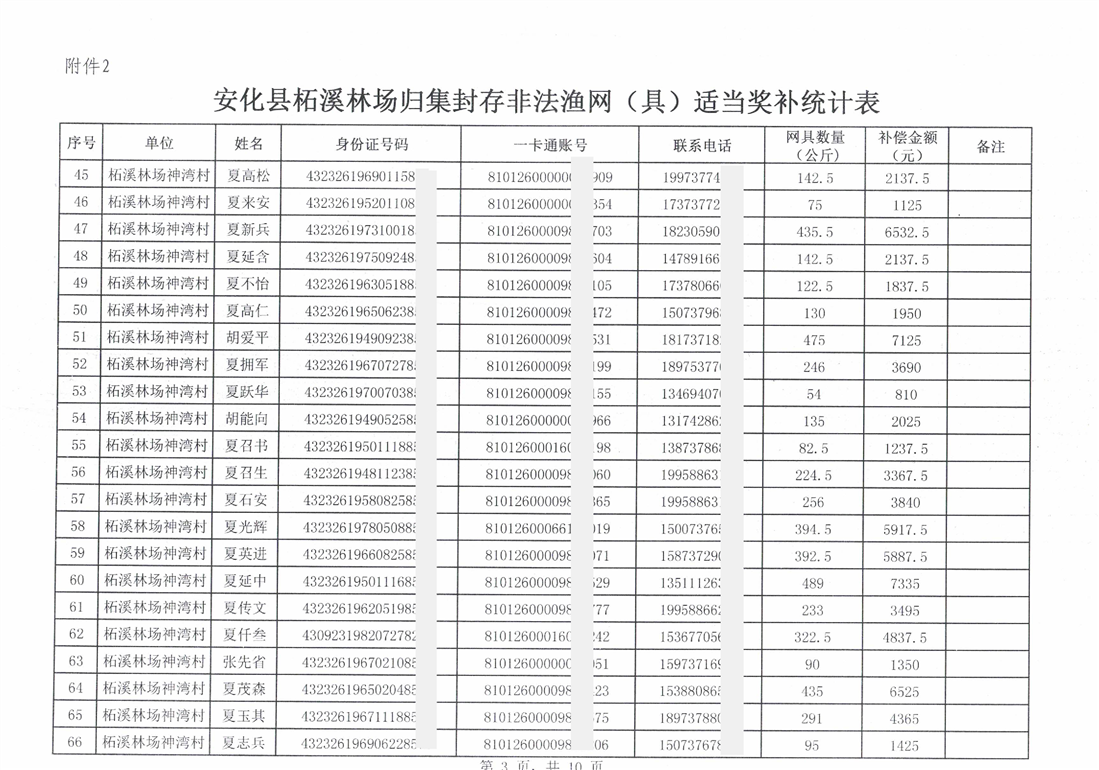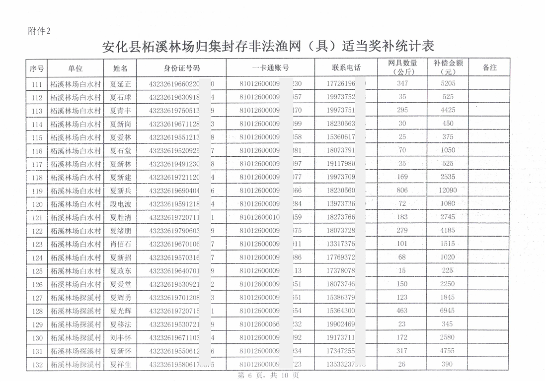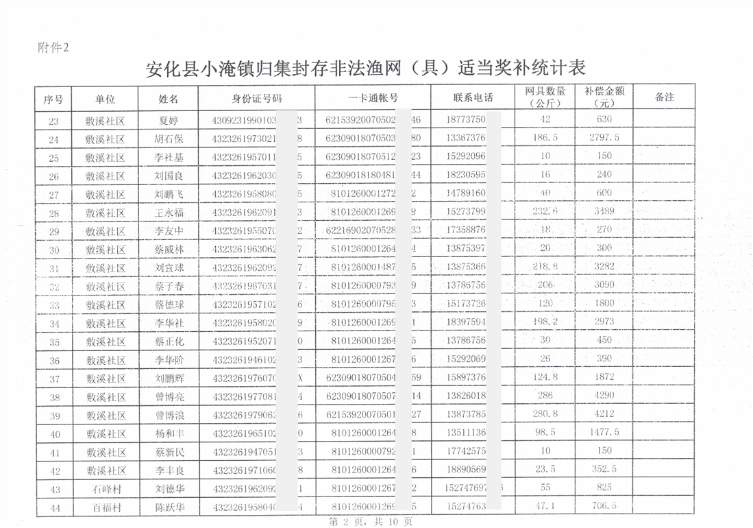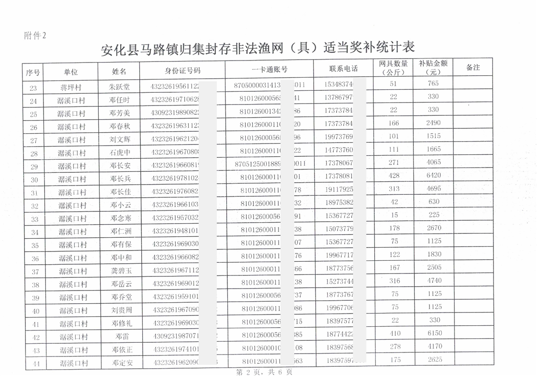 安化县禁捕退捕工作领导小组关于发放禁捕退捕封存渔网(具)收缴报废奖补资金的通知