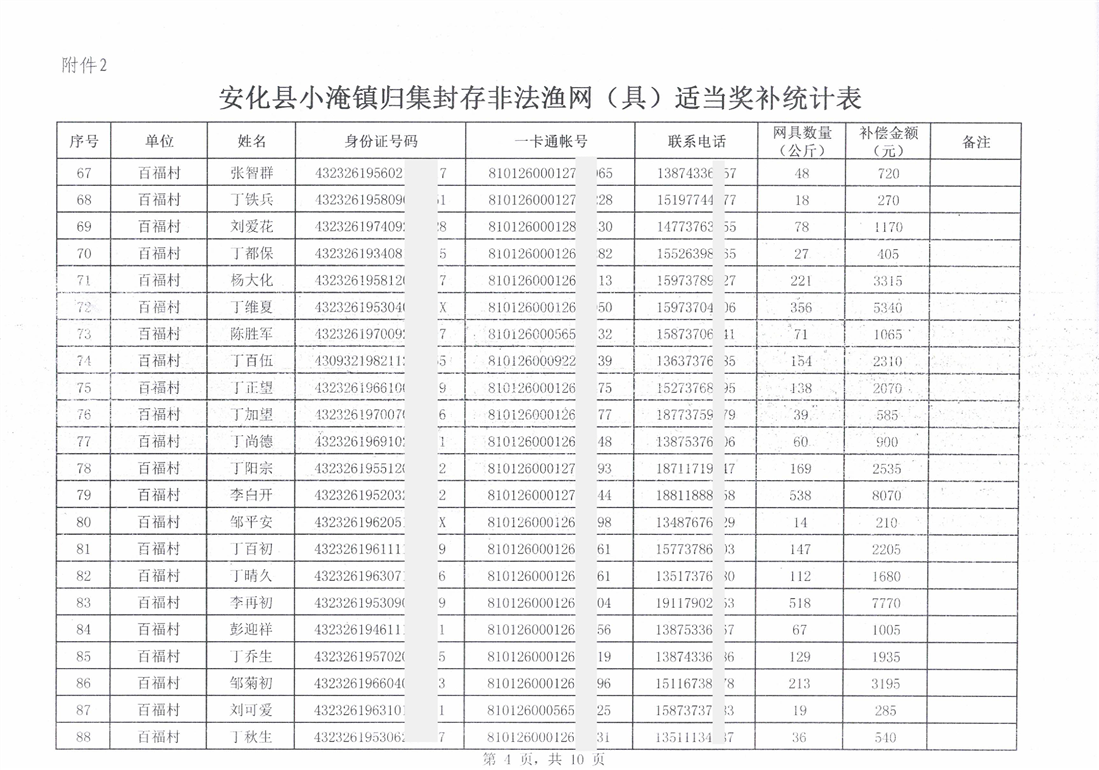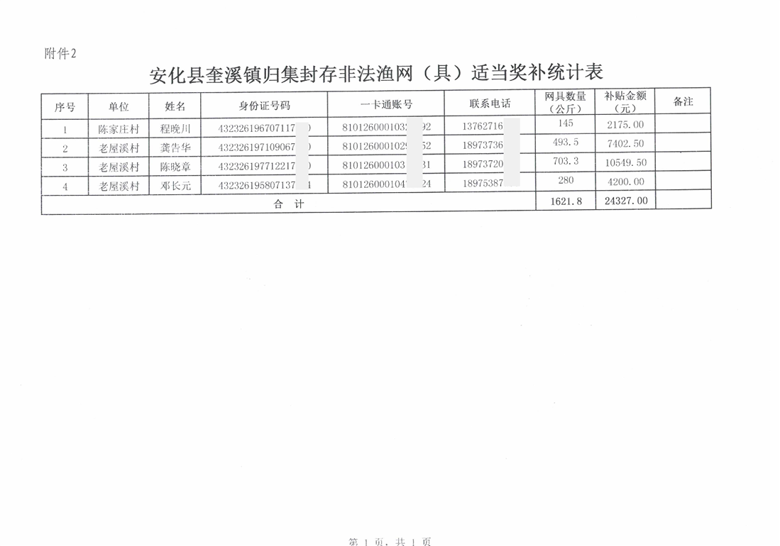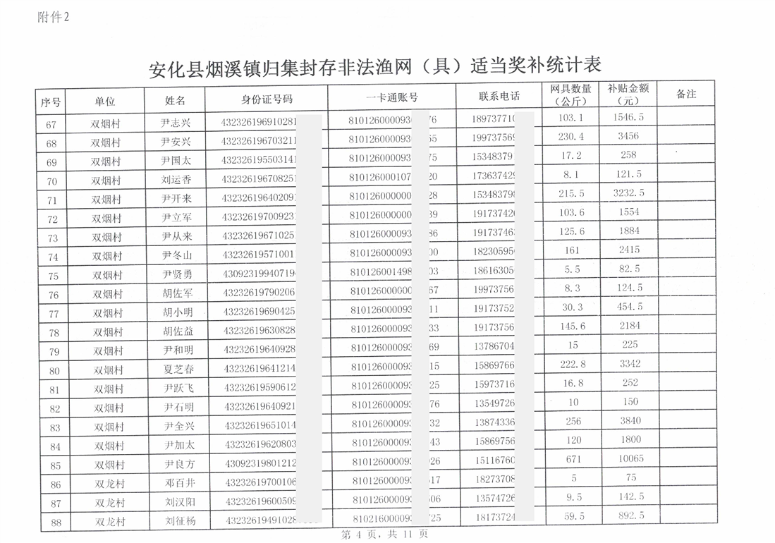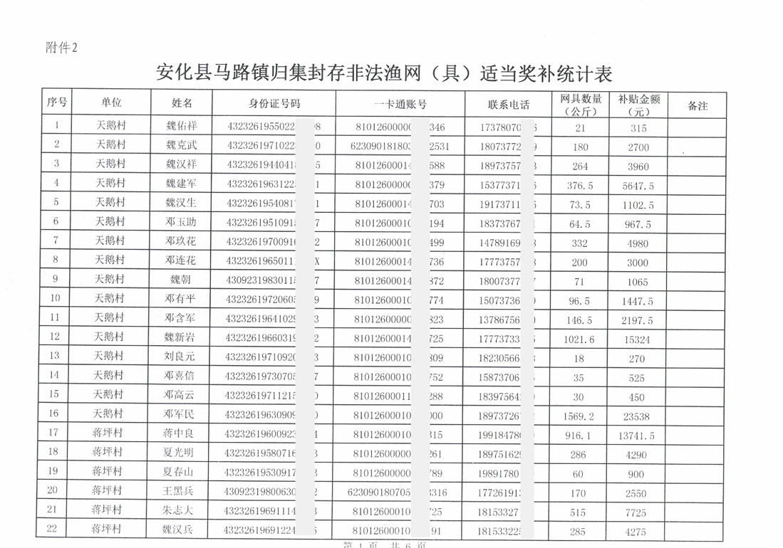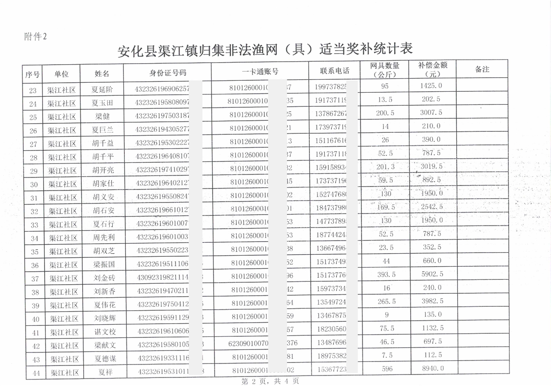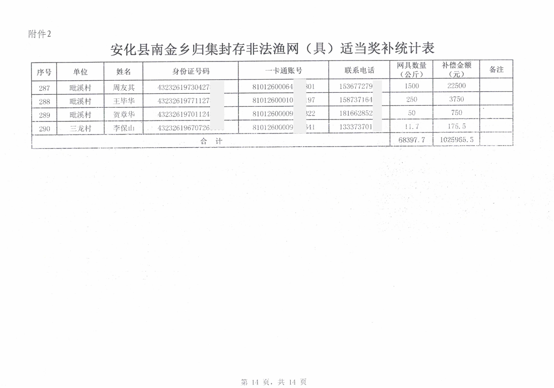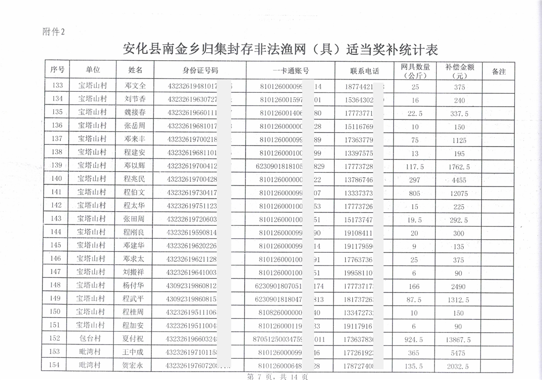 安化县禁捕退捕工作领导小组关于发放禁捕退捕封存渔网(具)收缴报废奖补资金的通知