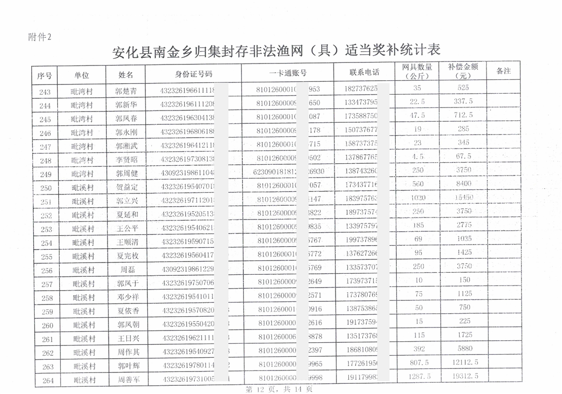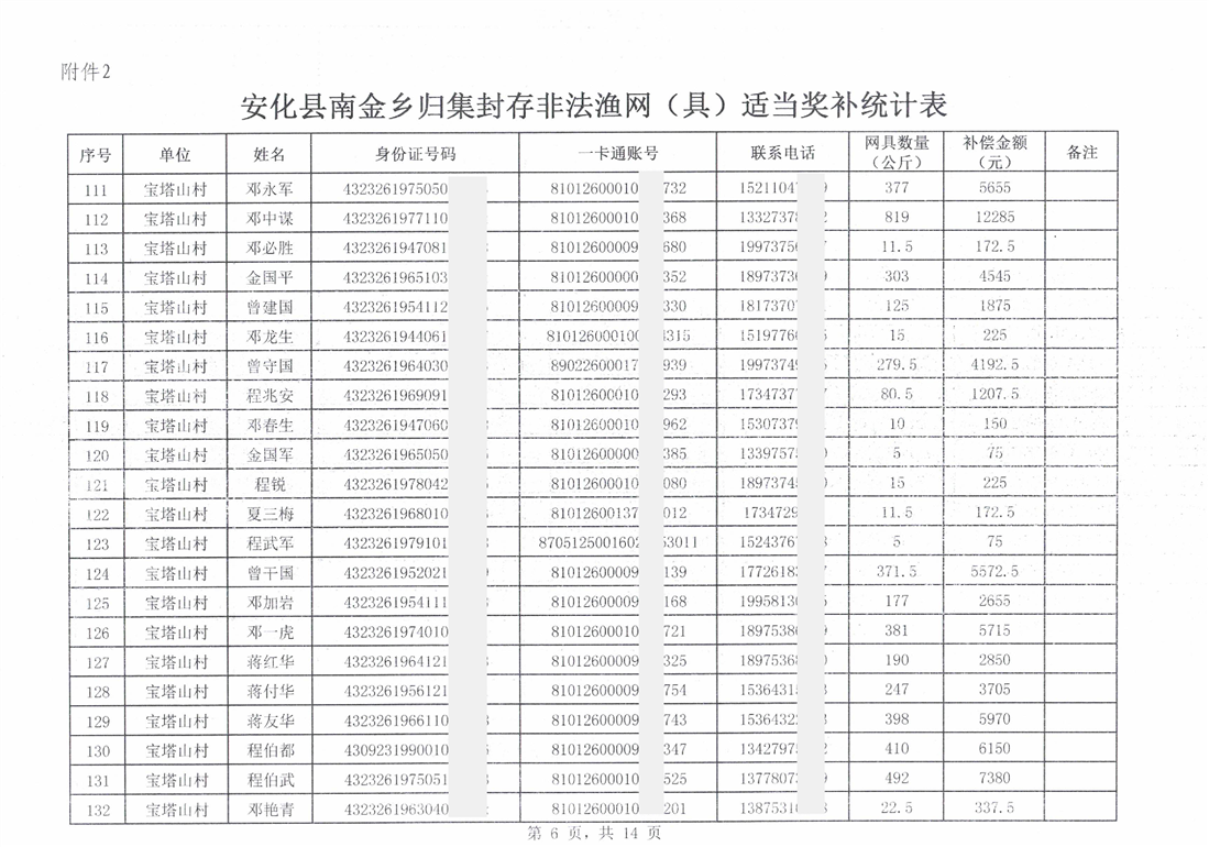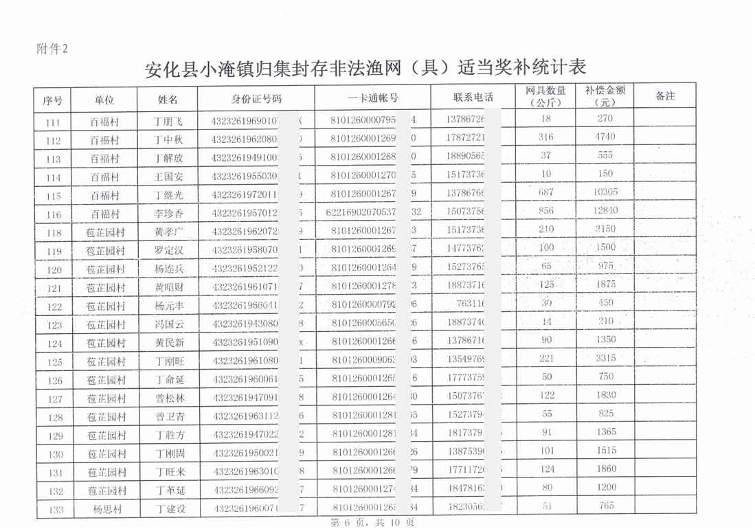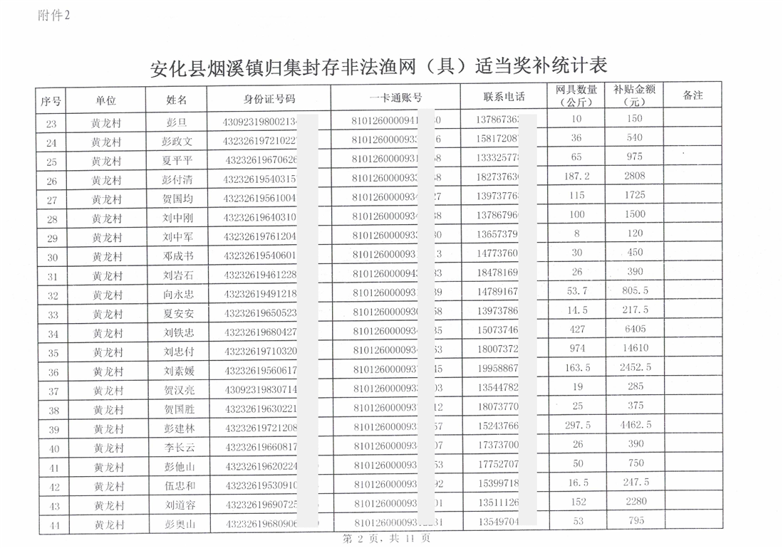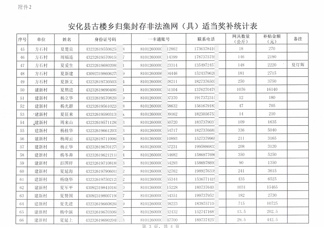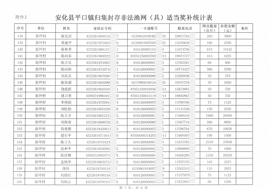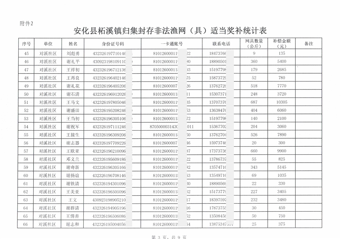 安化县禁捕退捕工作领导小组关于发放禁捕退捕封存渔网(具)收缴报废奖补资金的通知