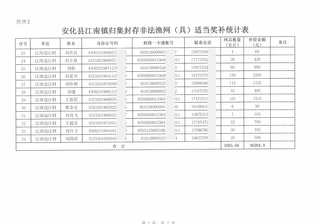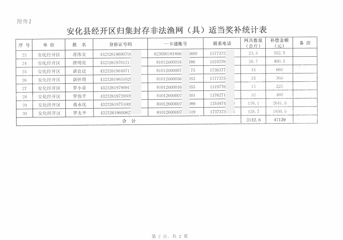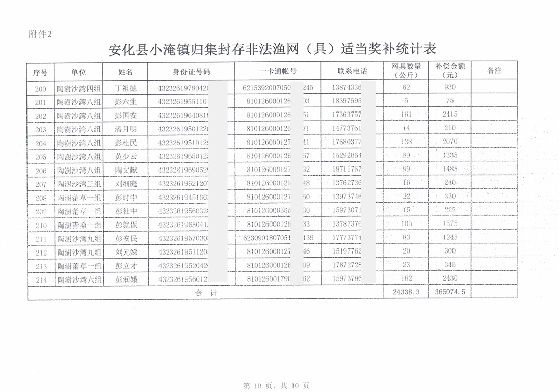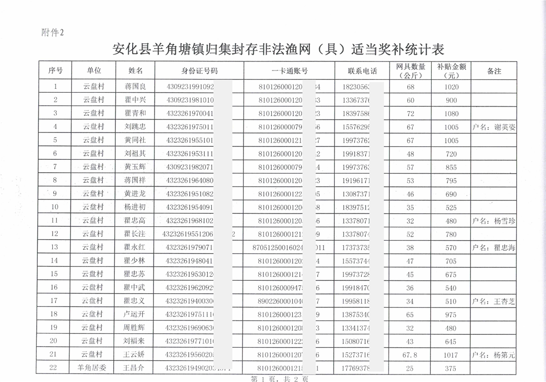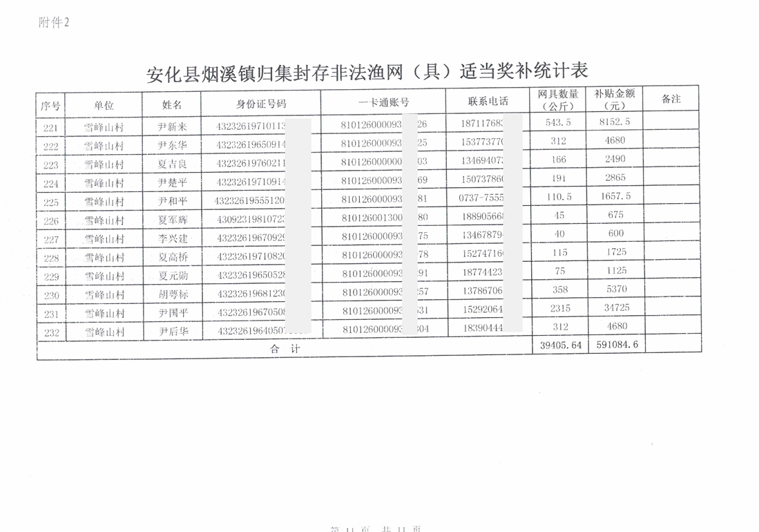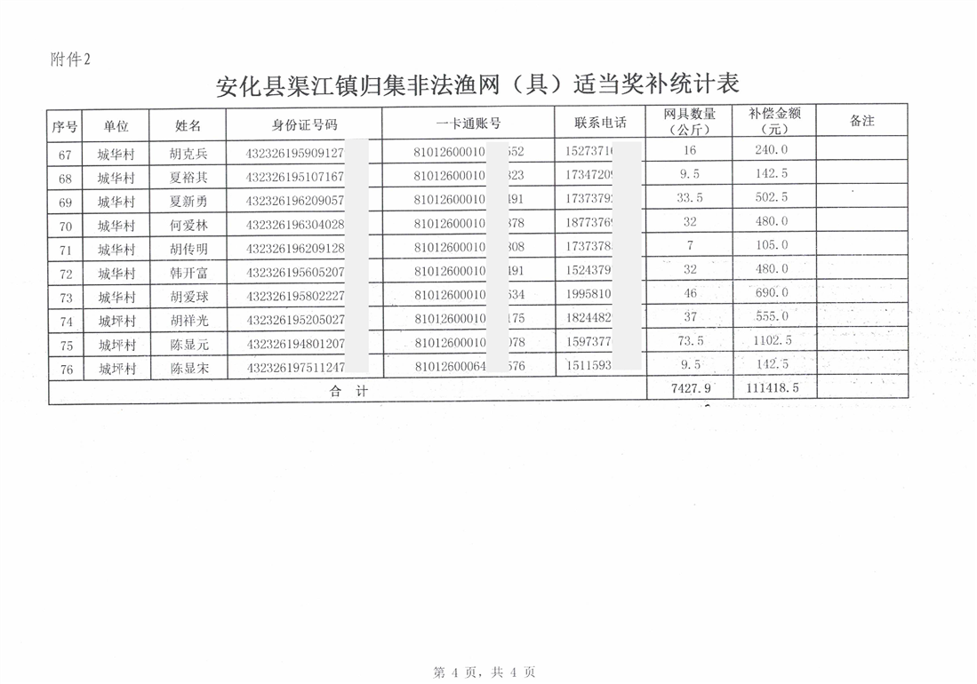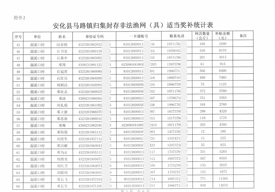 安化县禁捕退捕工作领导小组关于发放禁捕退捕封存渔网(具)收缴报废奖补资金的通知