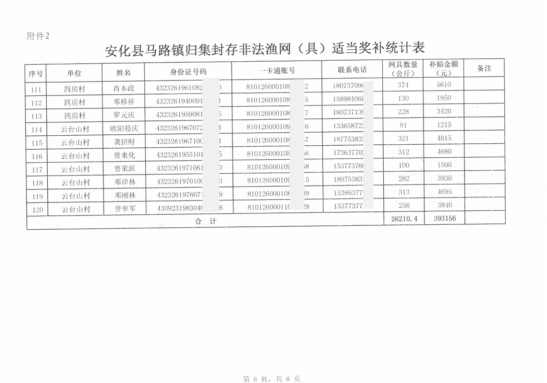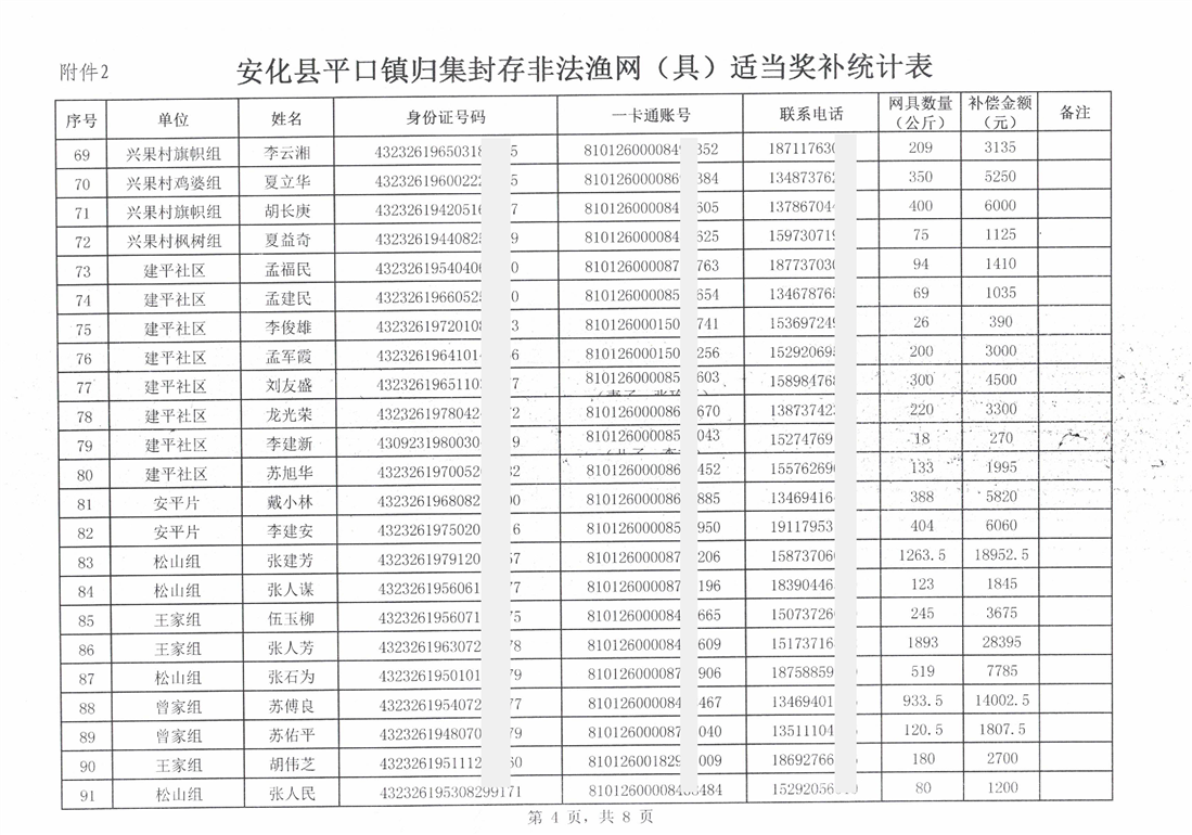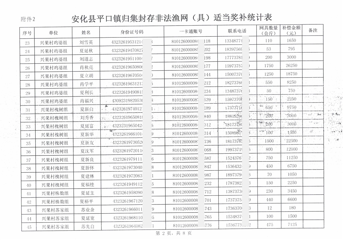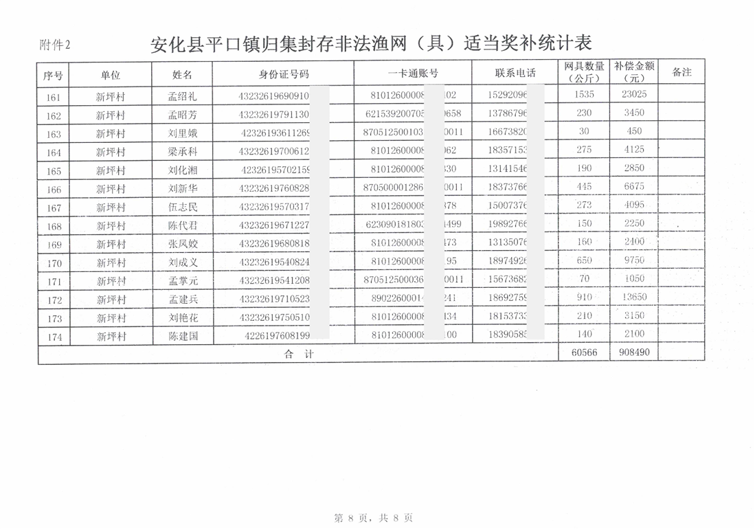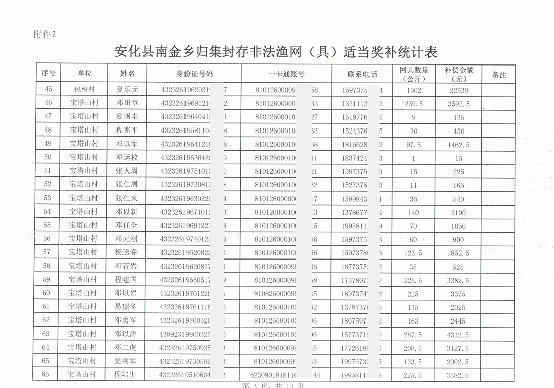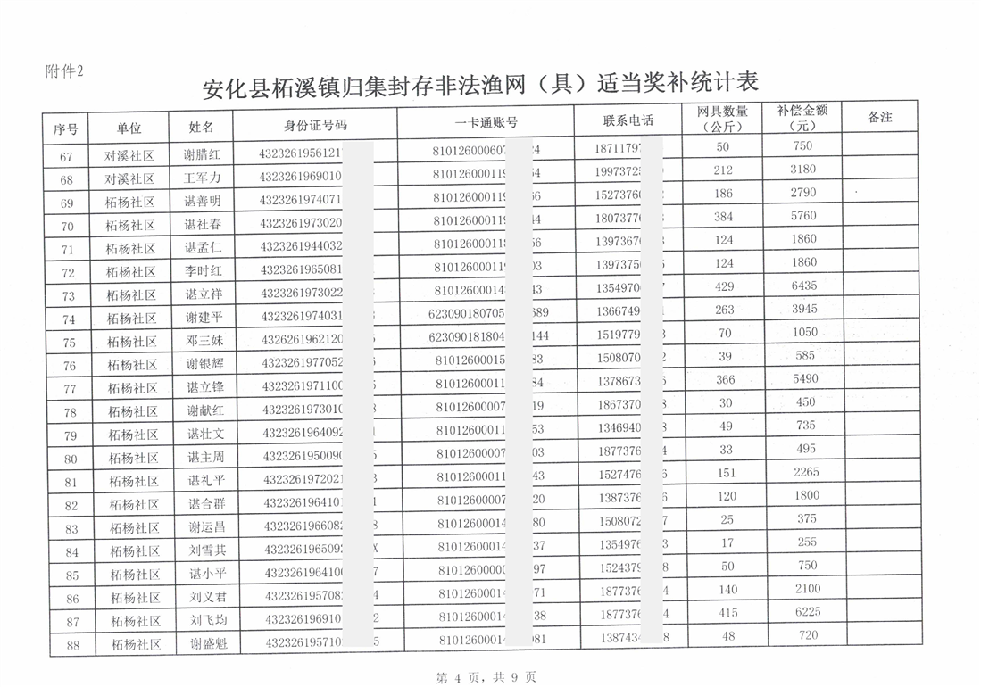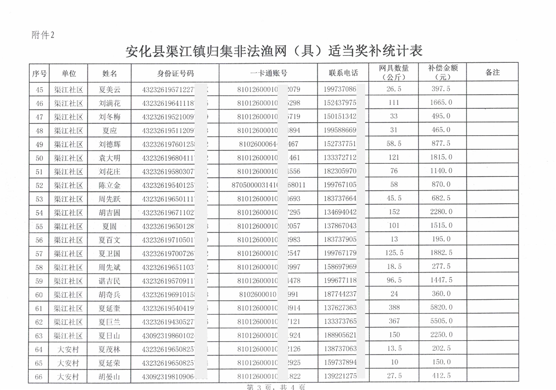 安化县禁捕退捕工作领导小组关于发放禁捕退捕封存渔网(具)收缴报废奖补资金的通知