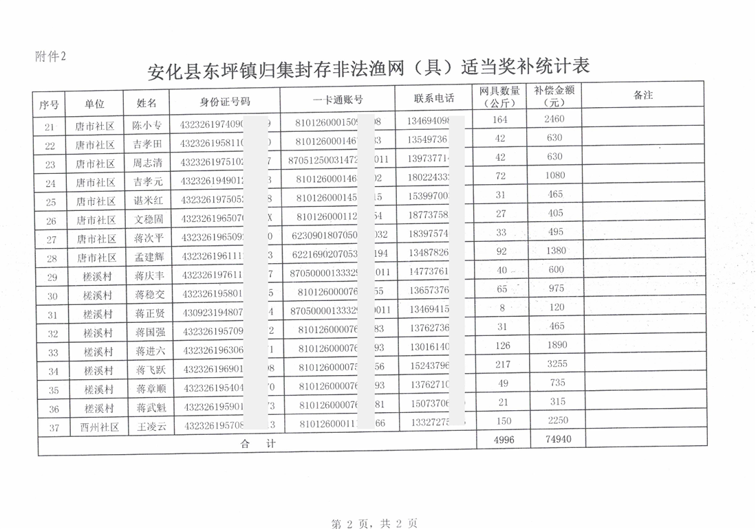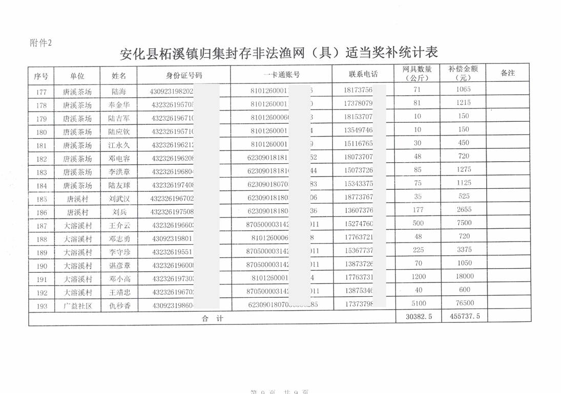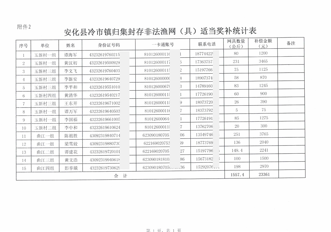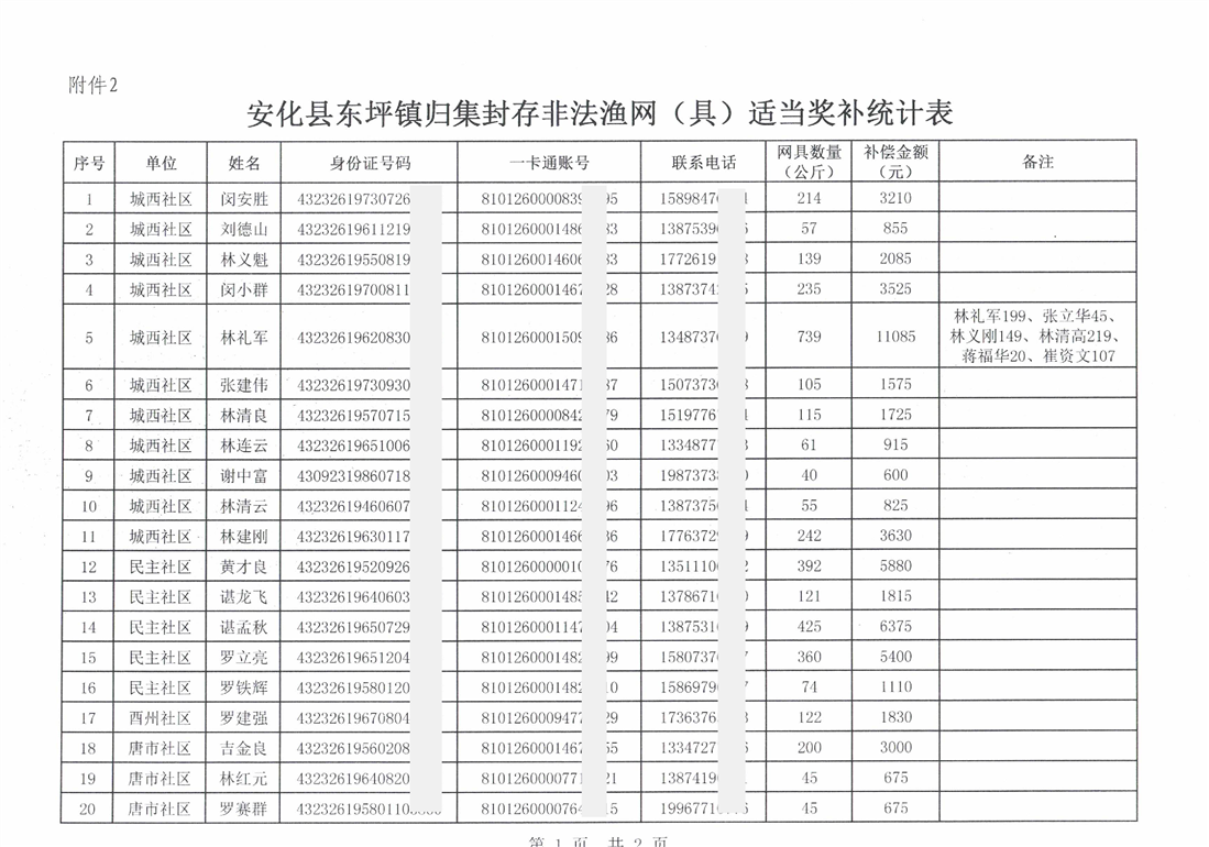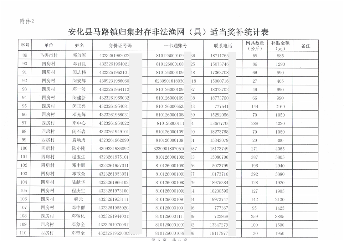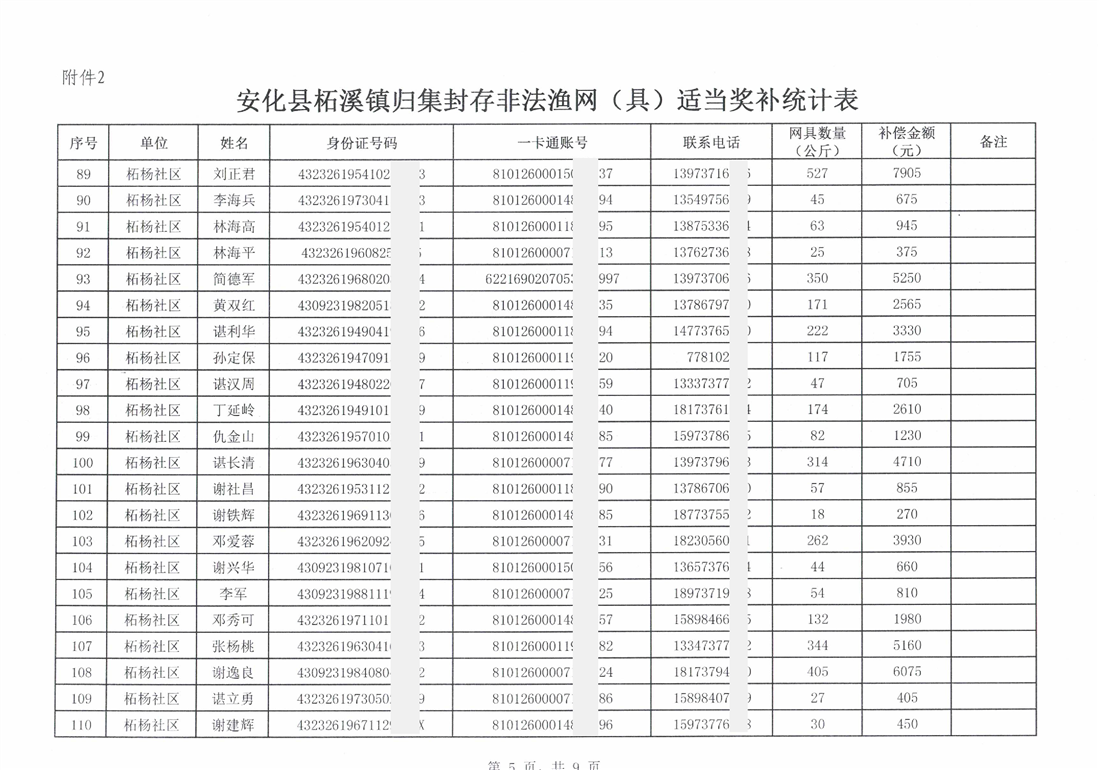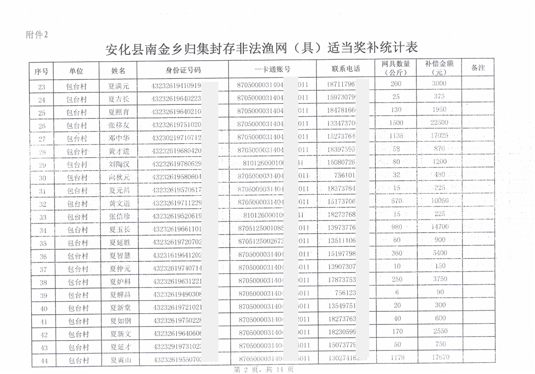 安化县禁捕退捕工作领导小组关于发放禁捕退捕封存渔网(具)收缴报废奖补资金的通知