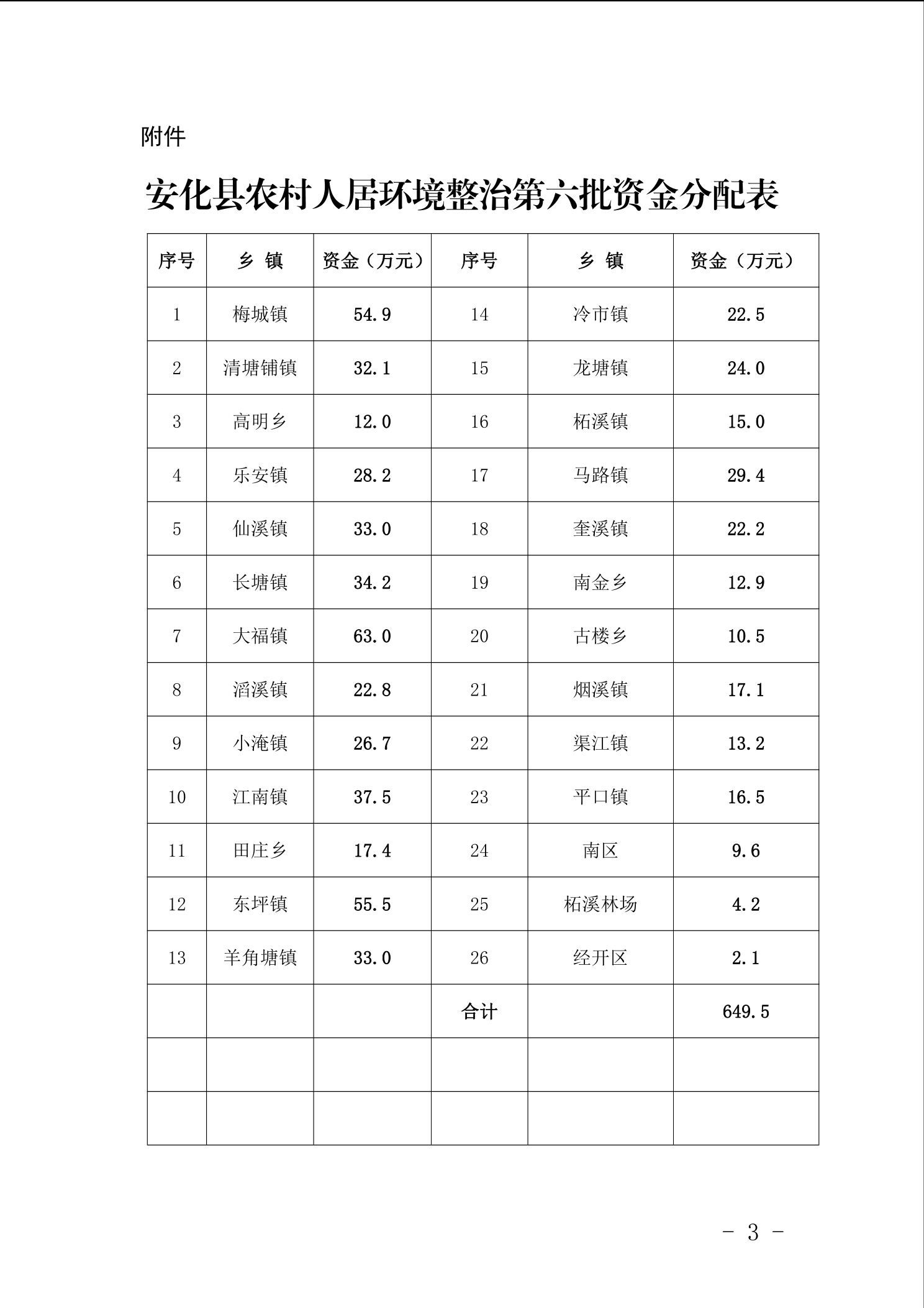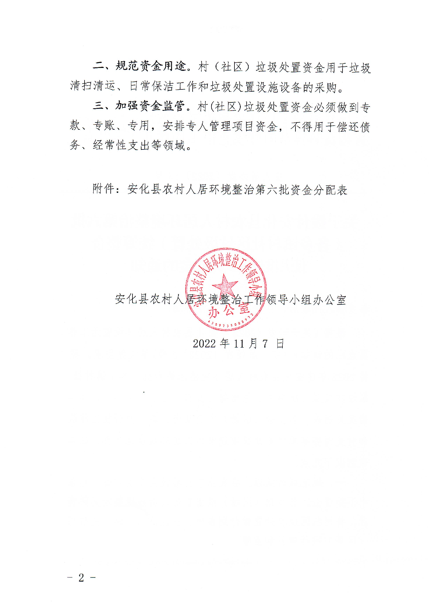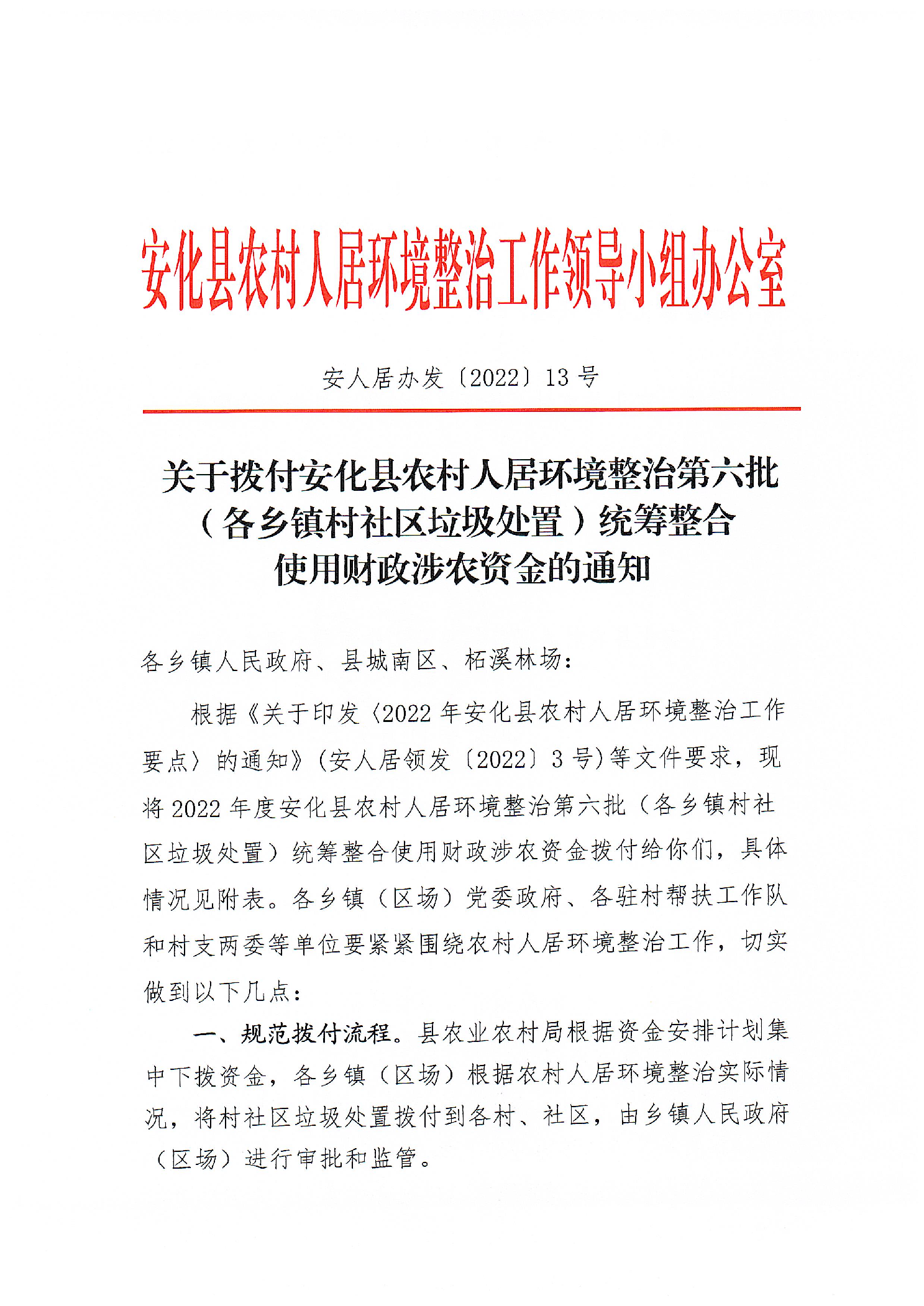 关于拨付2022年度安化县农村人居环境整治第六批(各乡镇村社区垃圾处置)统筹整合使用财政涉农资金的通知