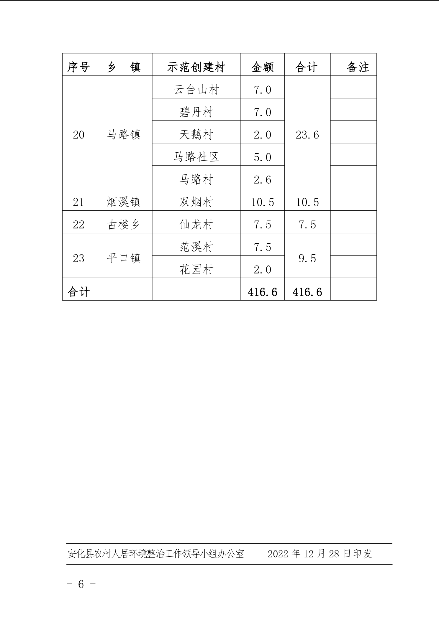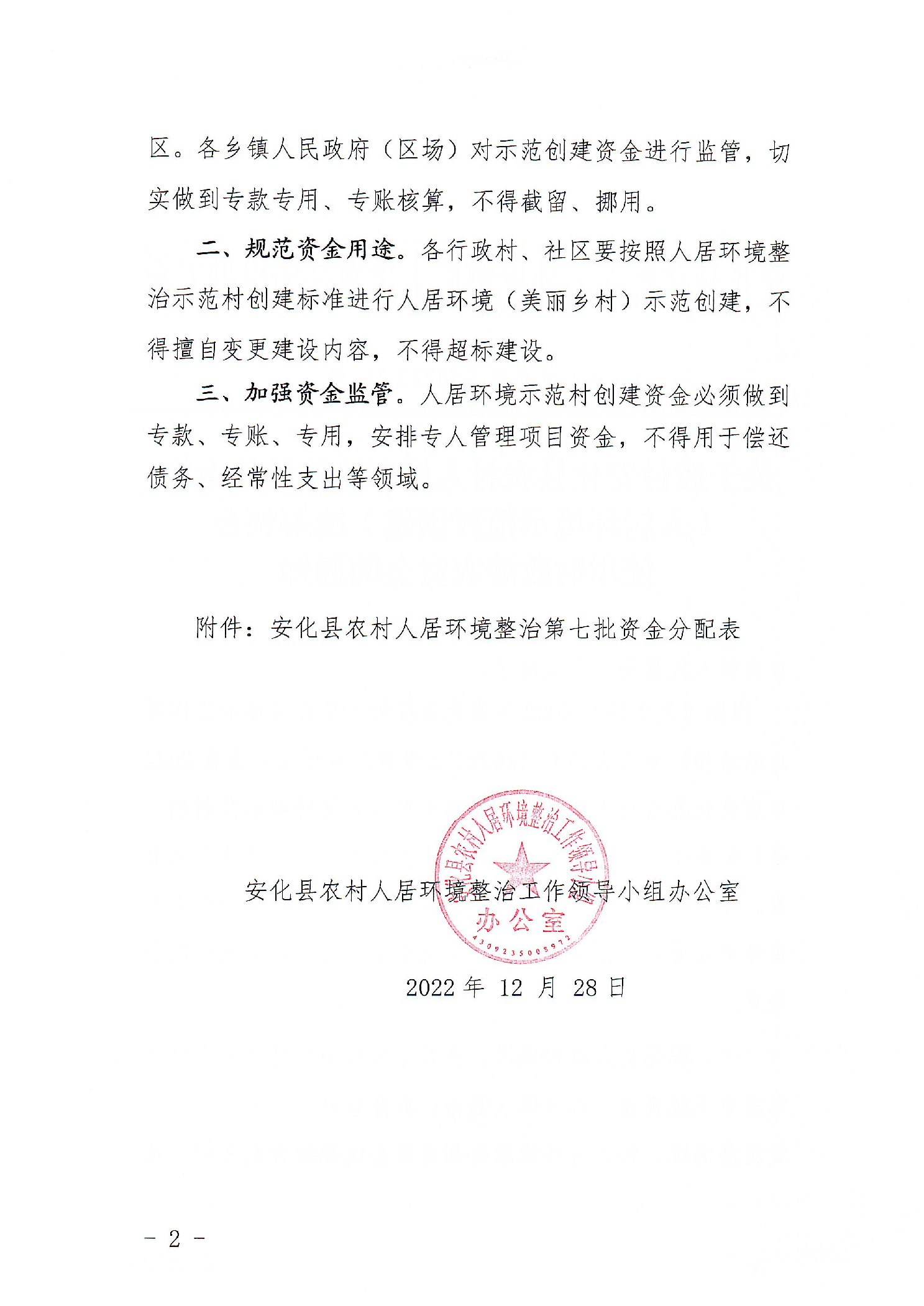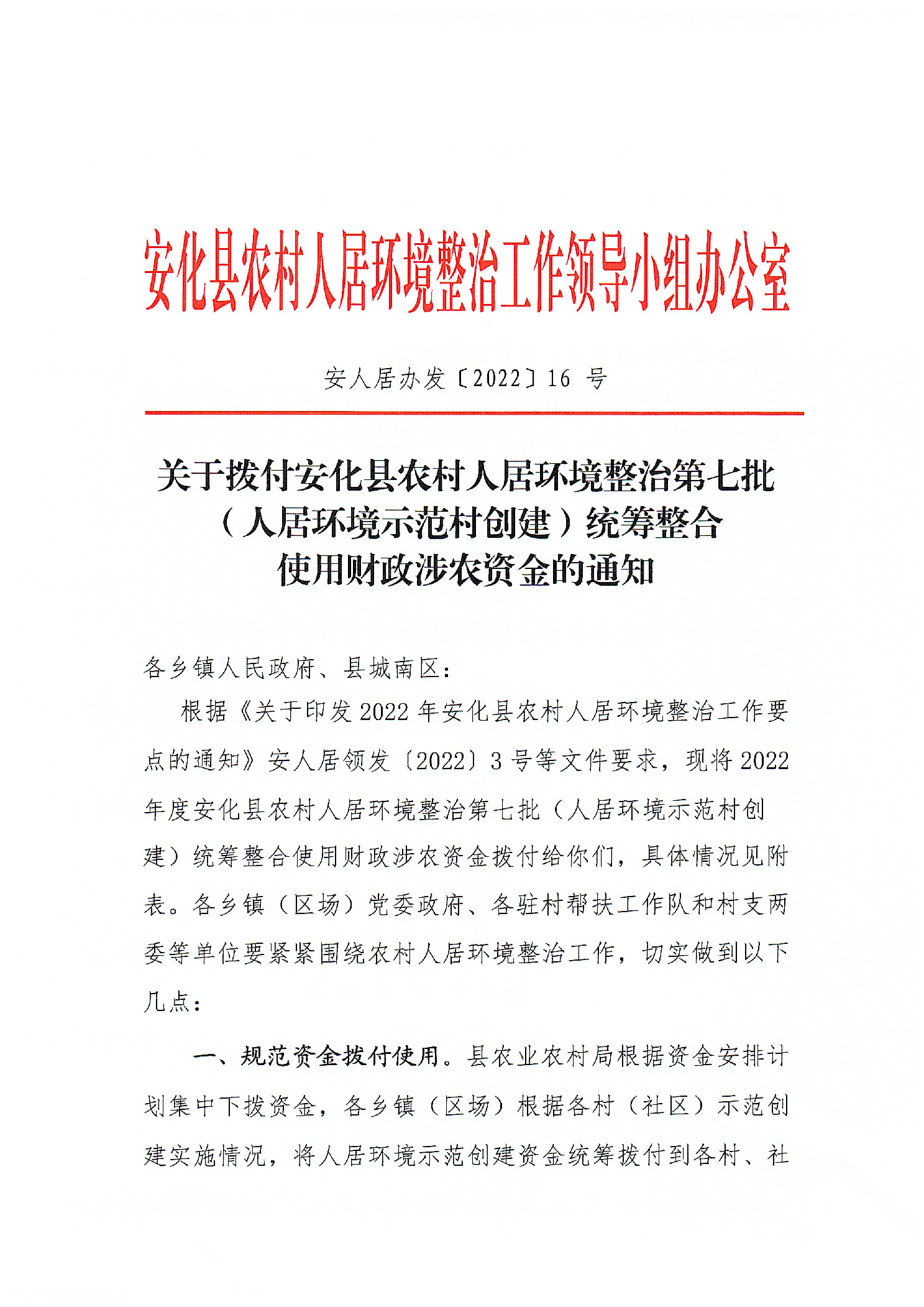 关于拨付2022年度安化县农村人居环境整治第七批(人居环境示范村创建)统筹整合使用财政涉农资金的通知