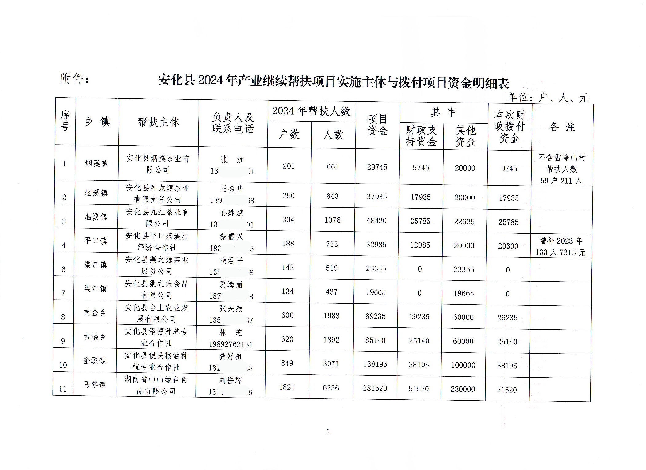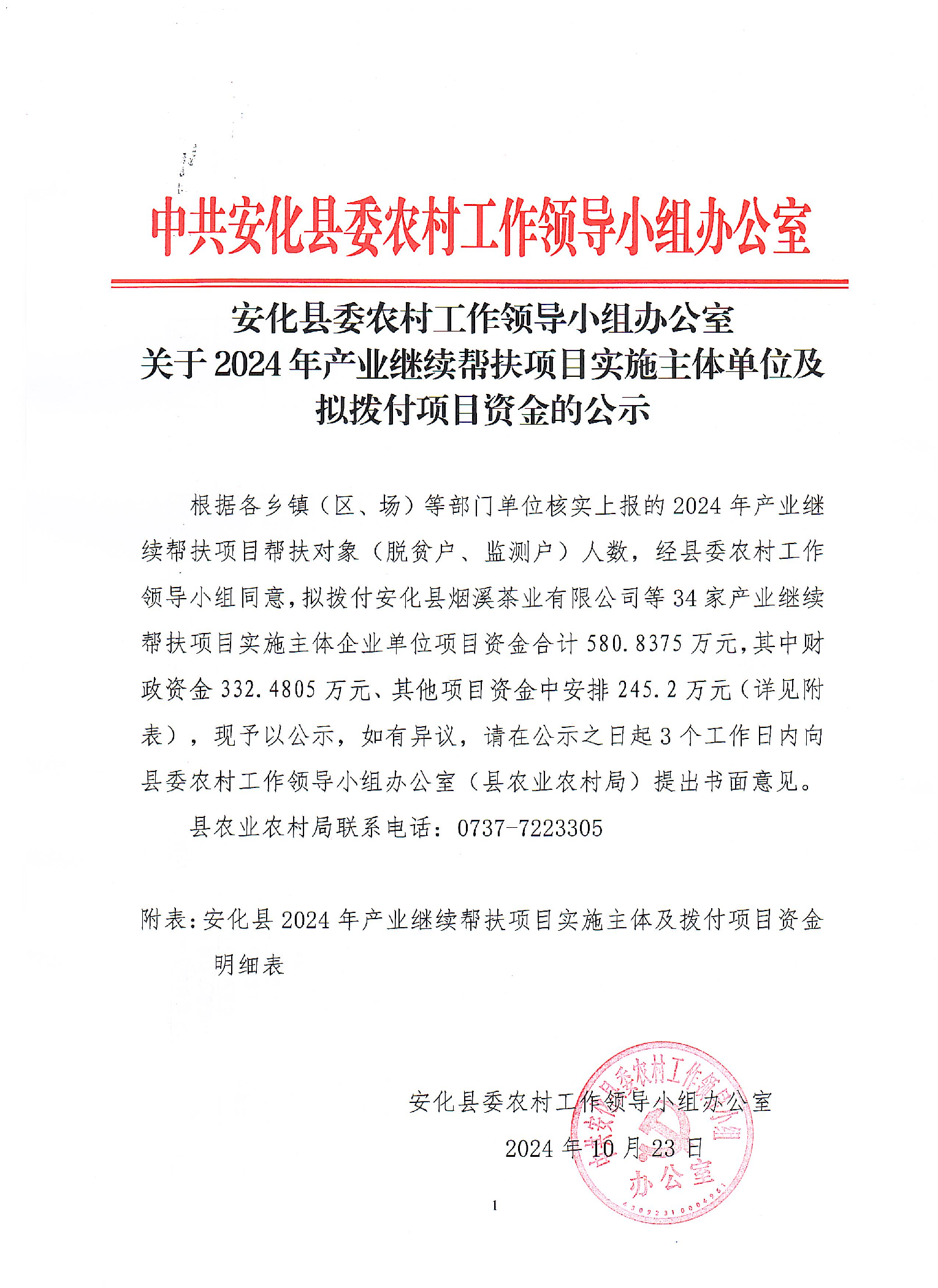 安化县委农村工作领导小组办公室关于2024年产业继续帮扶项目实施主体单位及拟拨付项目资金的公示