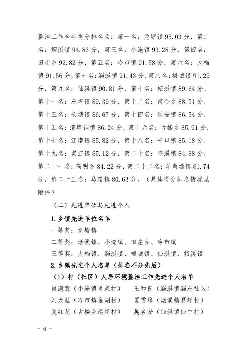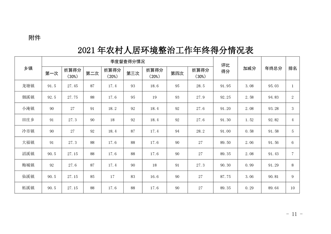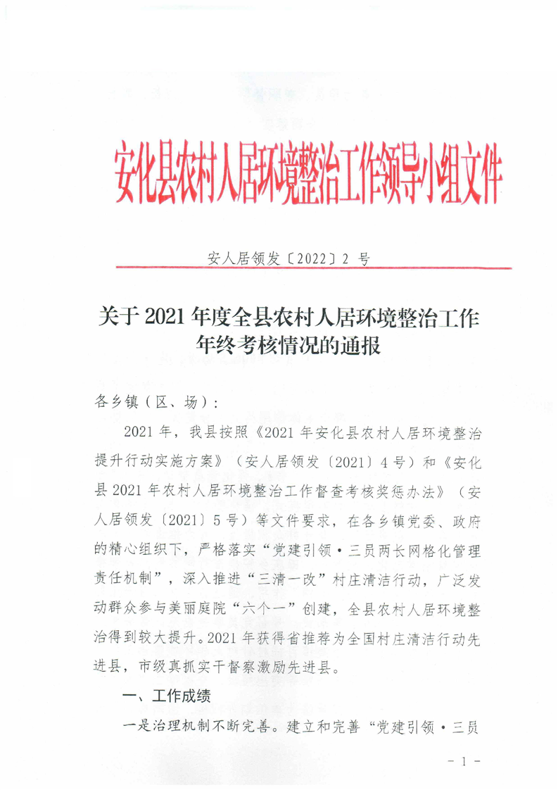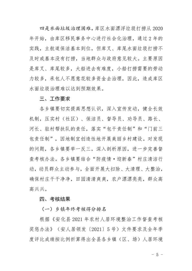关于2021年度全县农村人居环境整治工作年终考核情况的通报