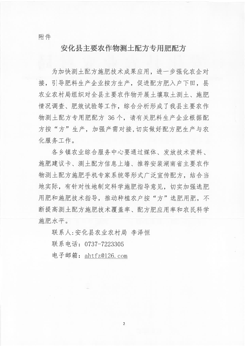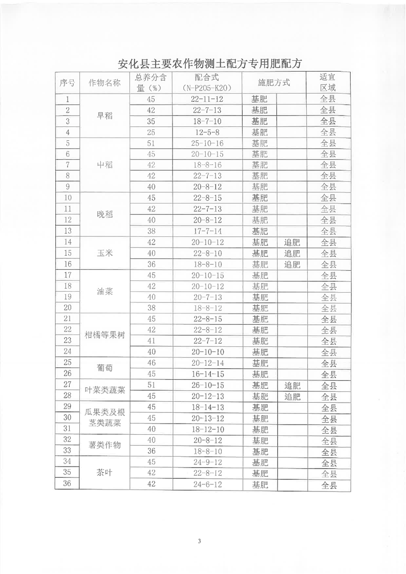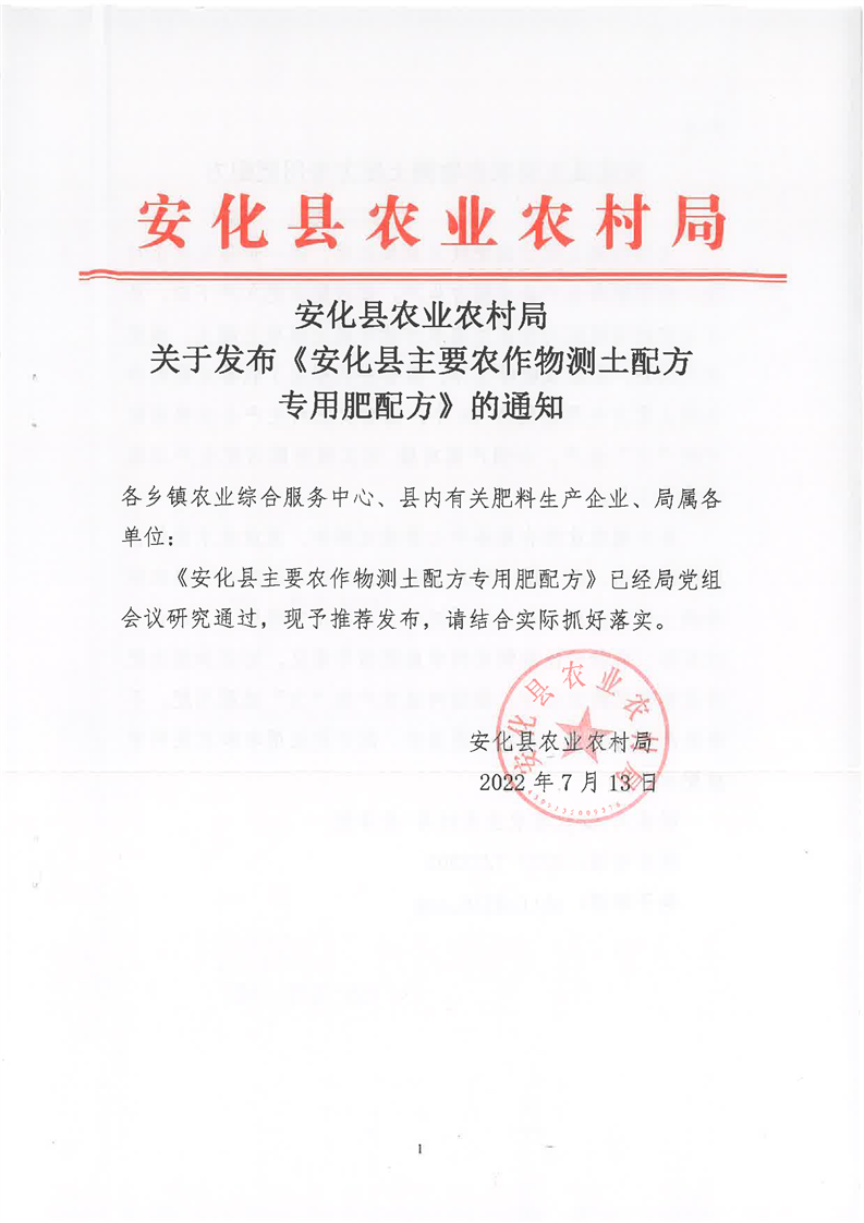 安化县农业农村局关于发布《安化县主要农作物测土配方专用肥配方》的通知