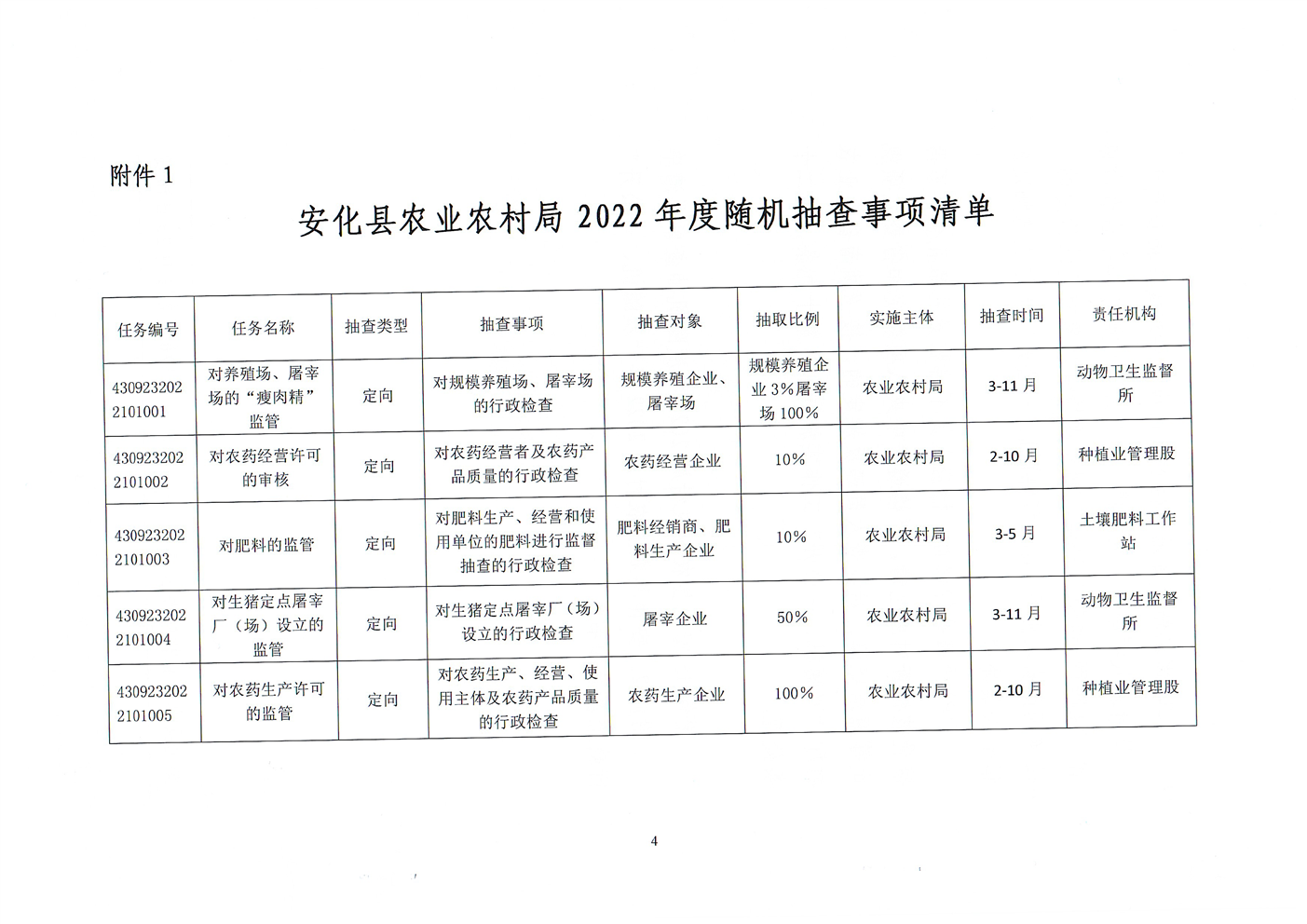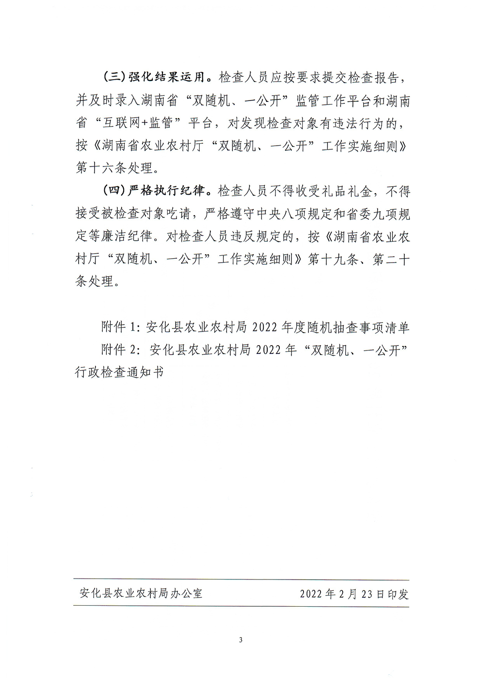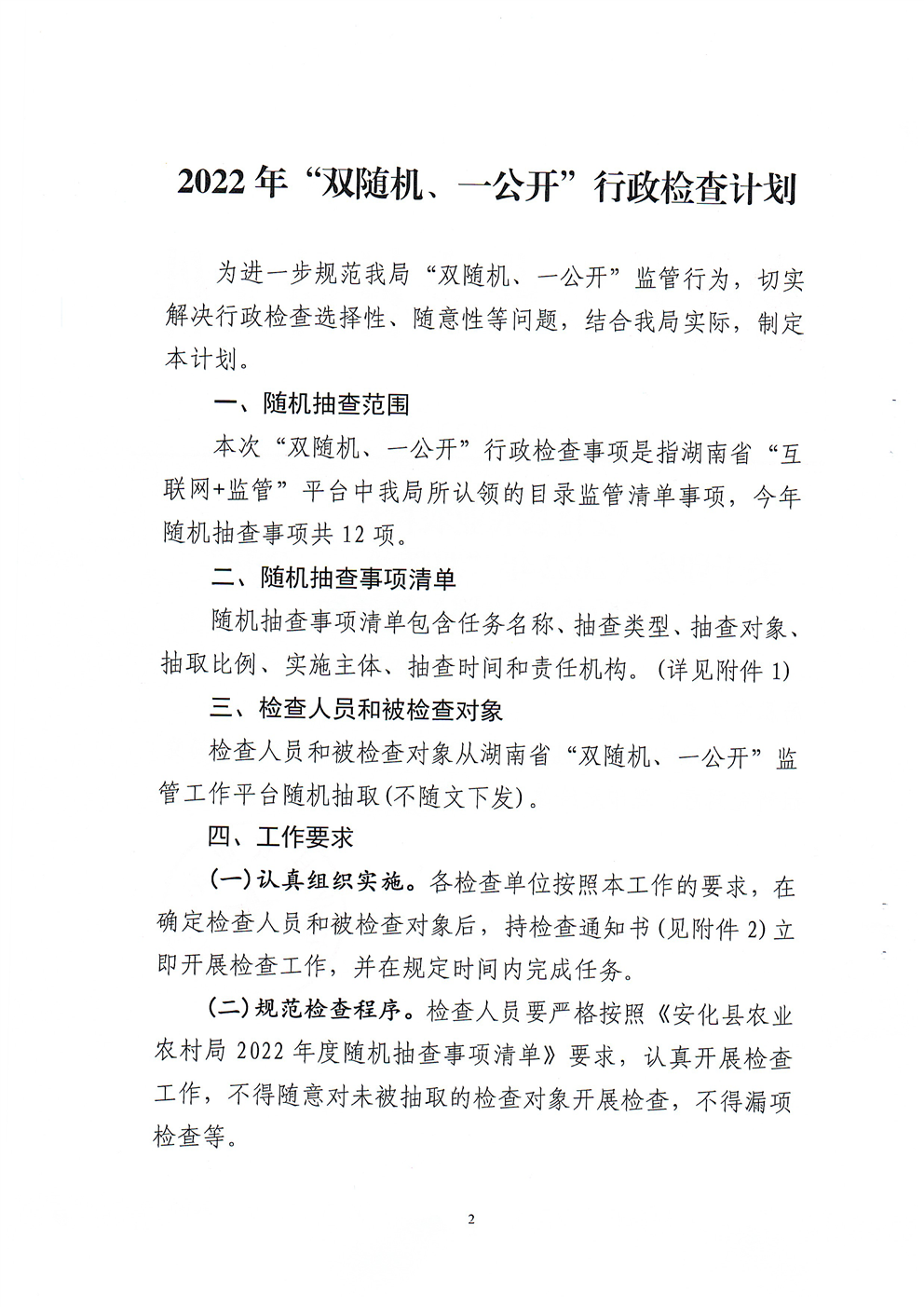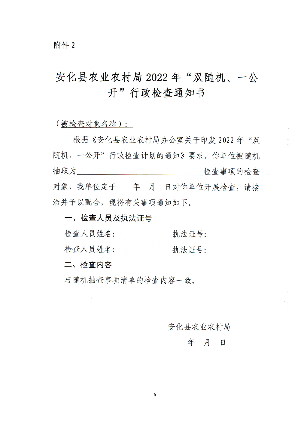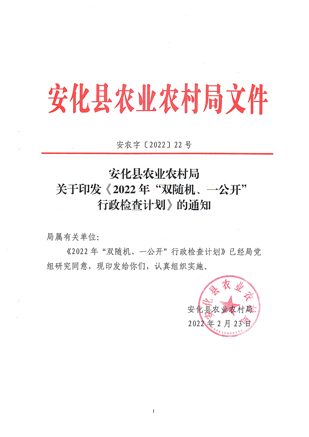 安化县农业农村局关于印发2022年“双随机、一公开”行政检查计划的通知 (安农字【2022】22号】)