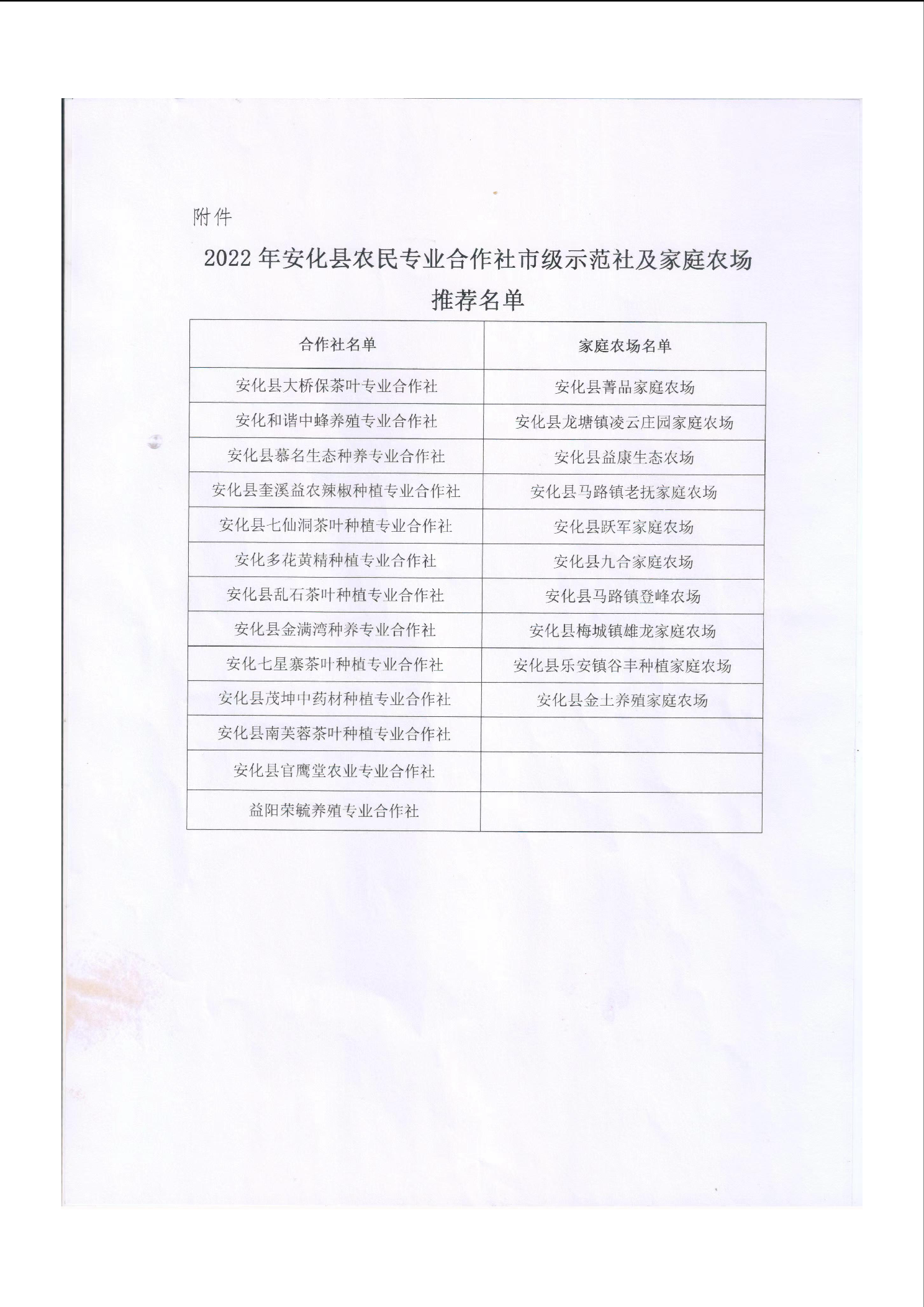 关于推荐2022年农民合作社市级示范社和市级示范家庭农场的公示