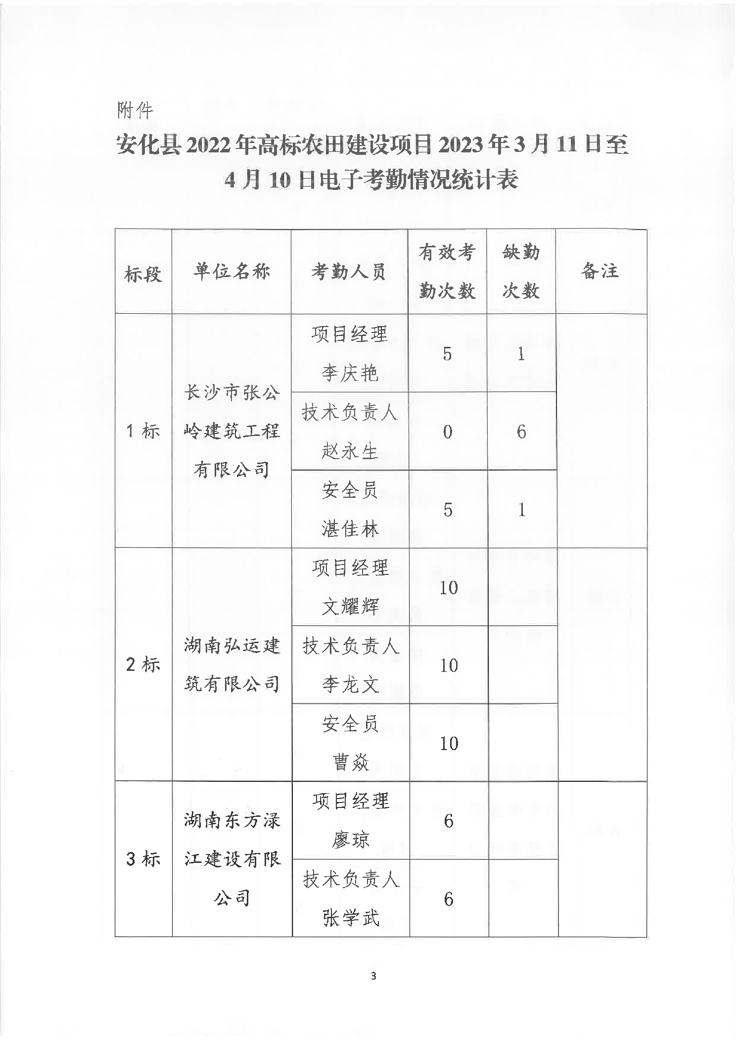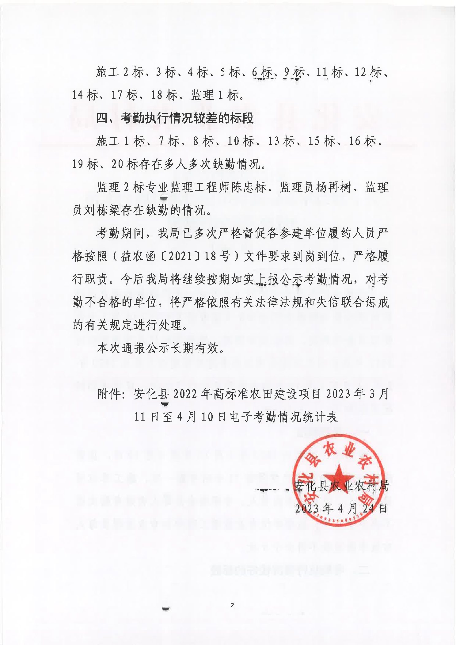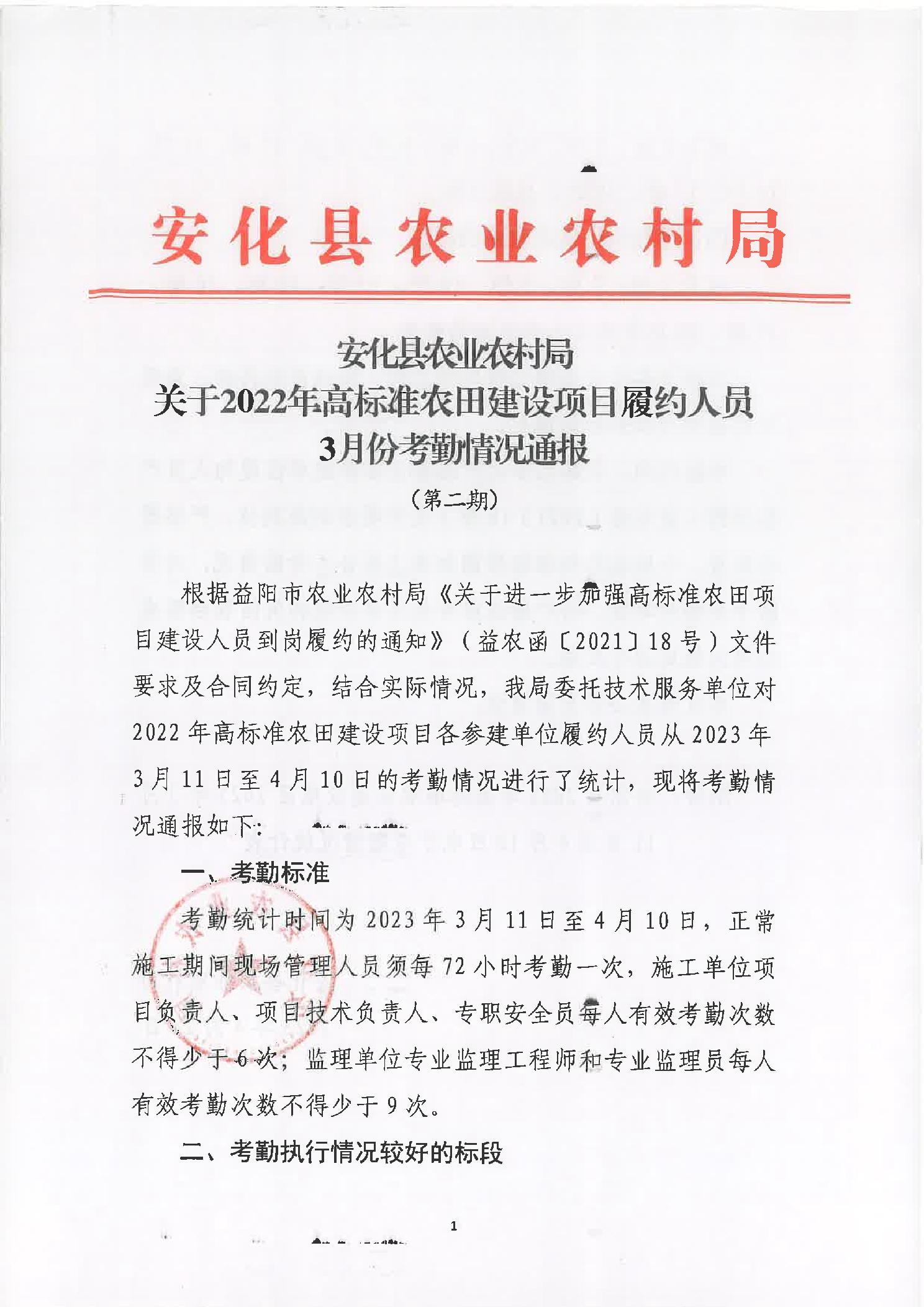 安化县农业农村局关于2022年高标准农田建设项目履约人员3月份考勤情况通报(第二期)