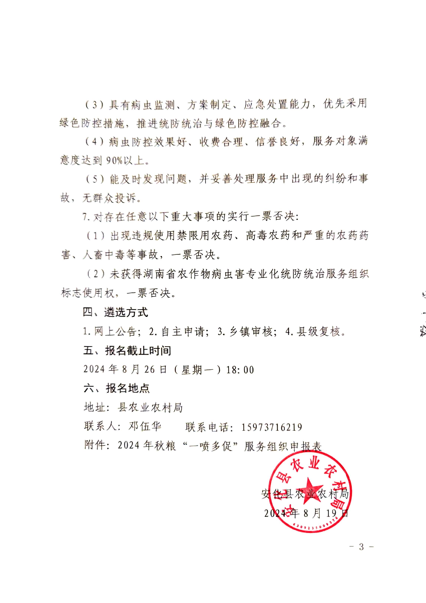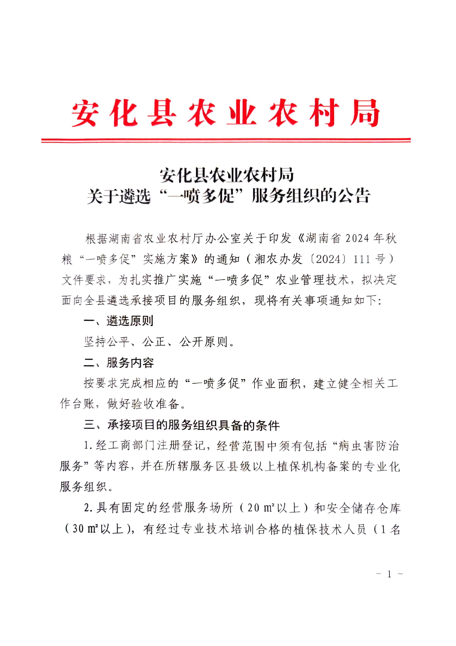 安化县农业农村局关于遴选“一喷多促”服务组织的公告