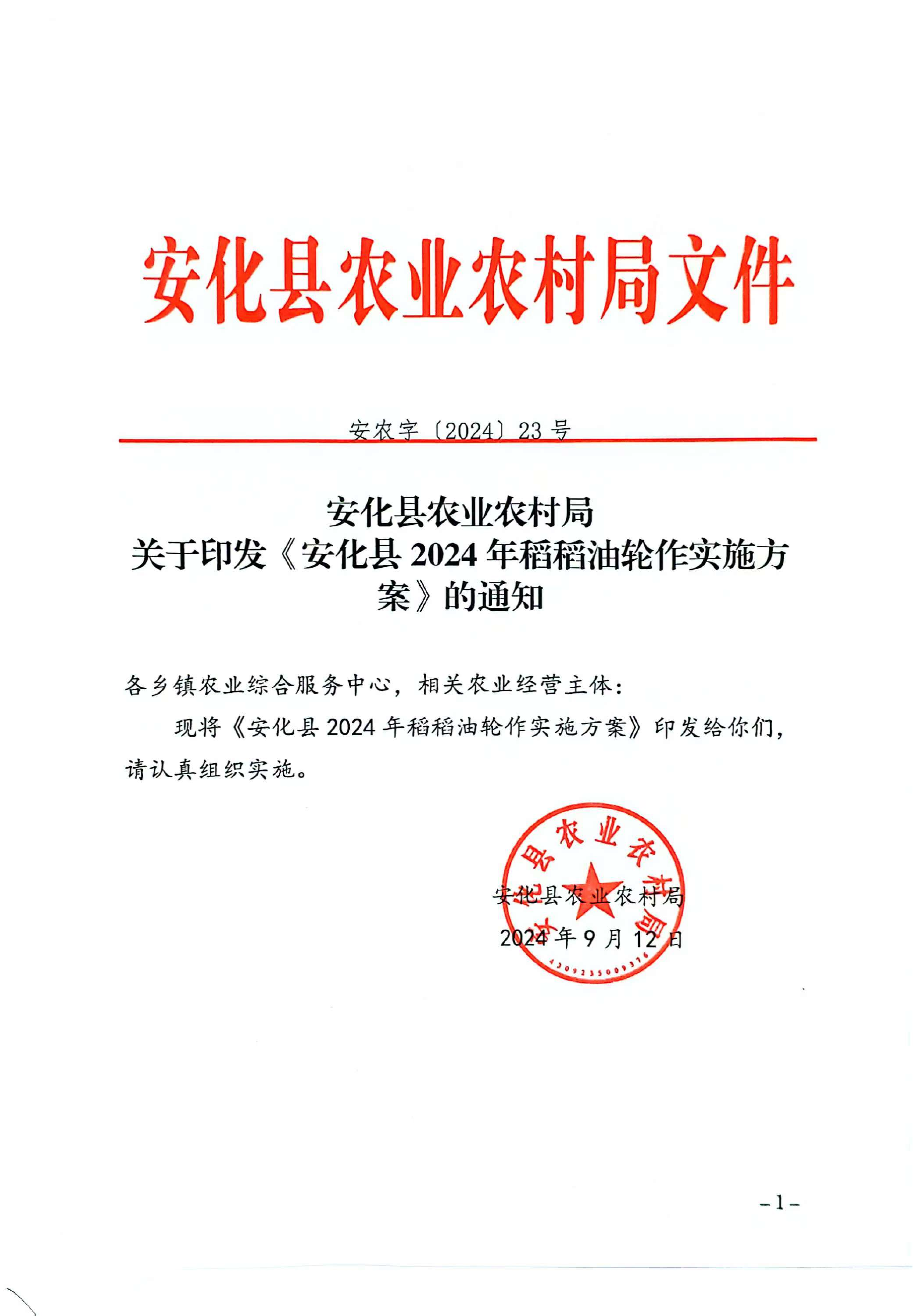 安化县农业农村局关于印发《安化县2024年稻稻油轮作实施方案》的通知 安农字〔2024〕23号