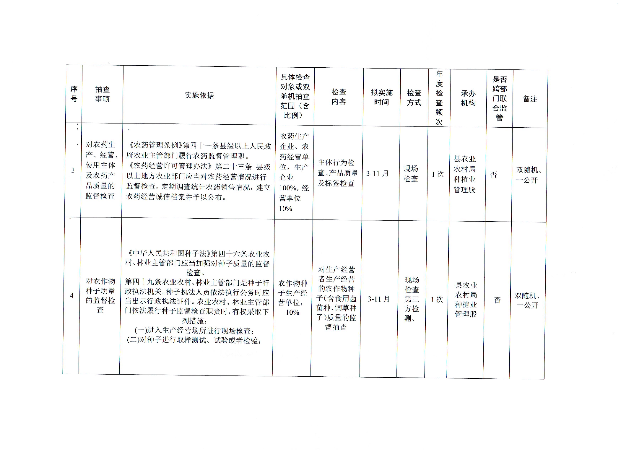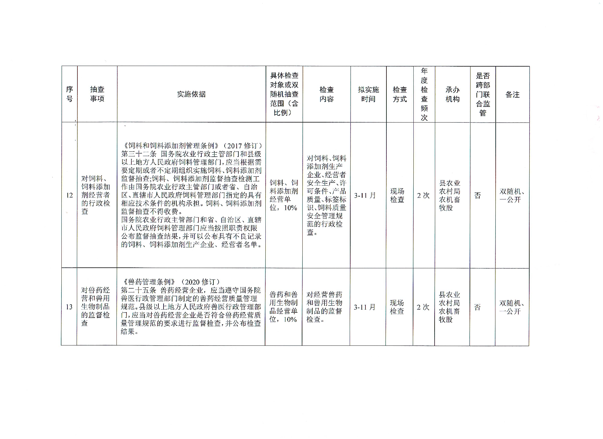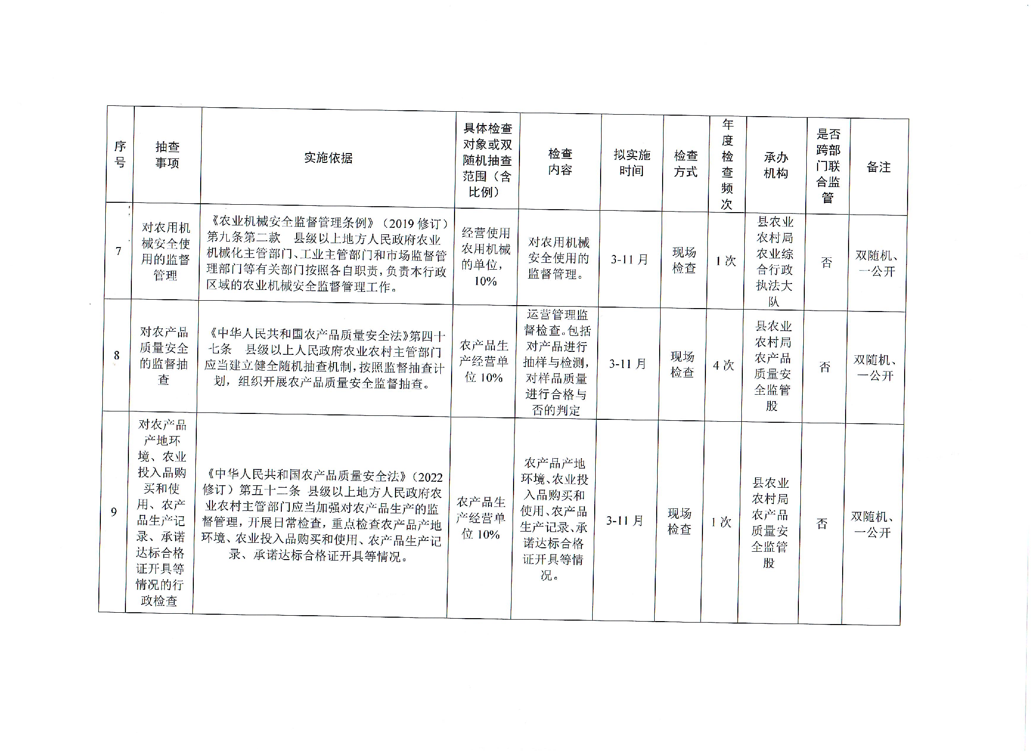 安化县农业农村局2025年涉企行政检查计划
