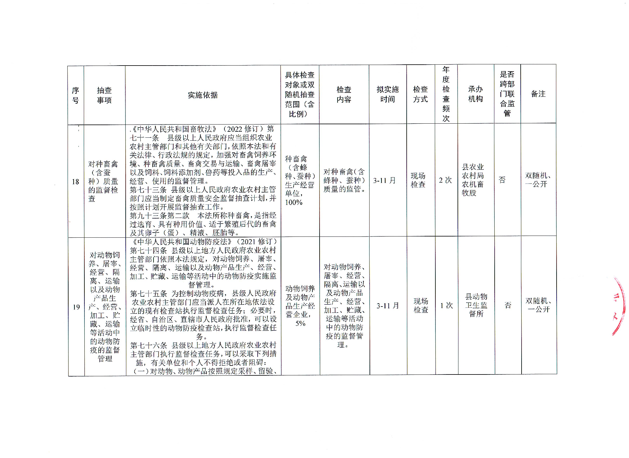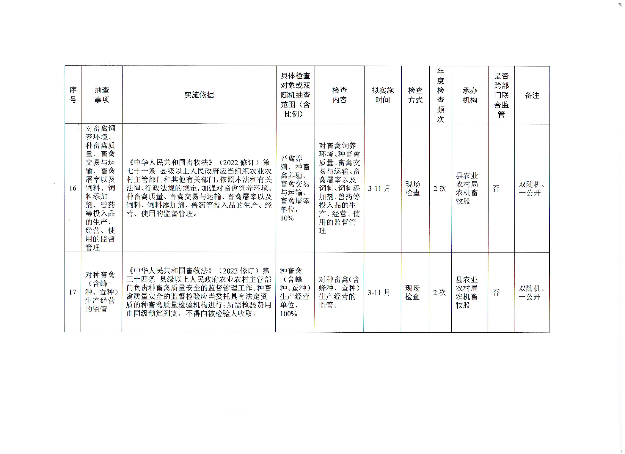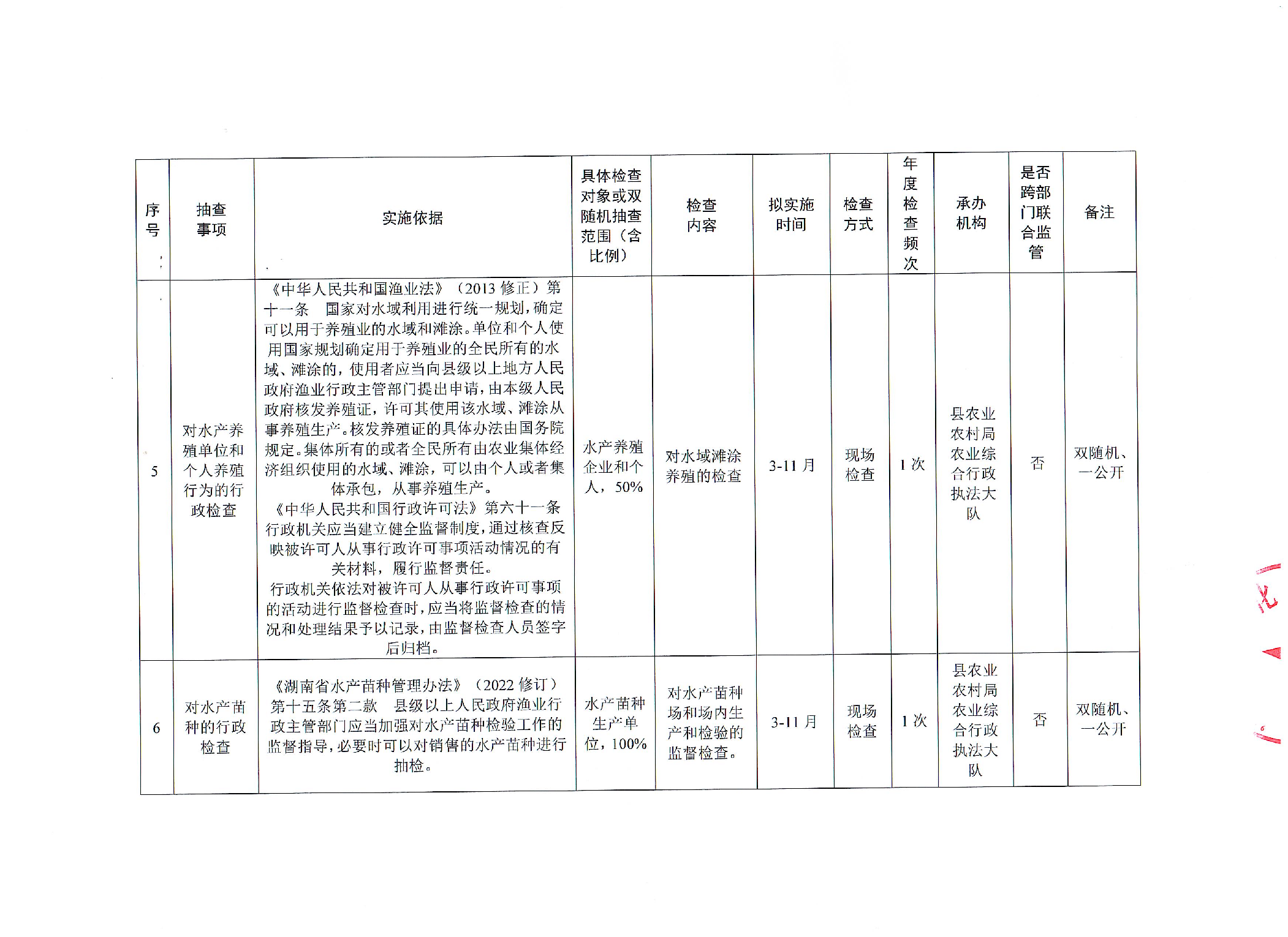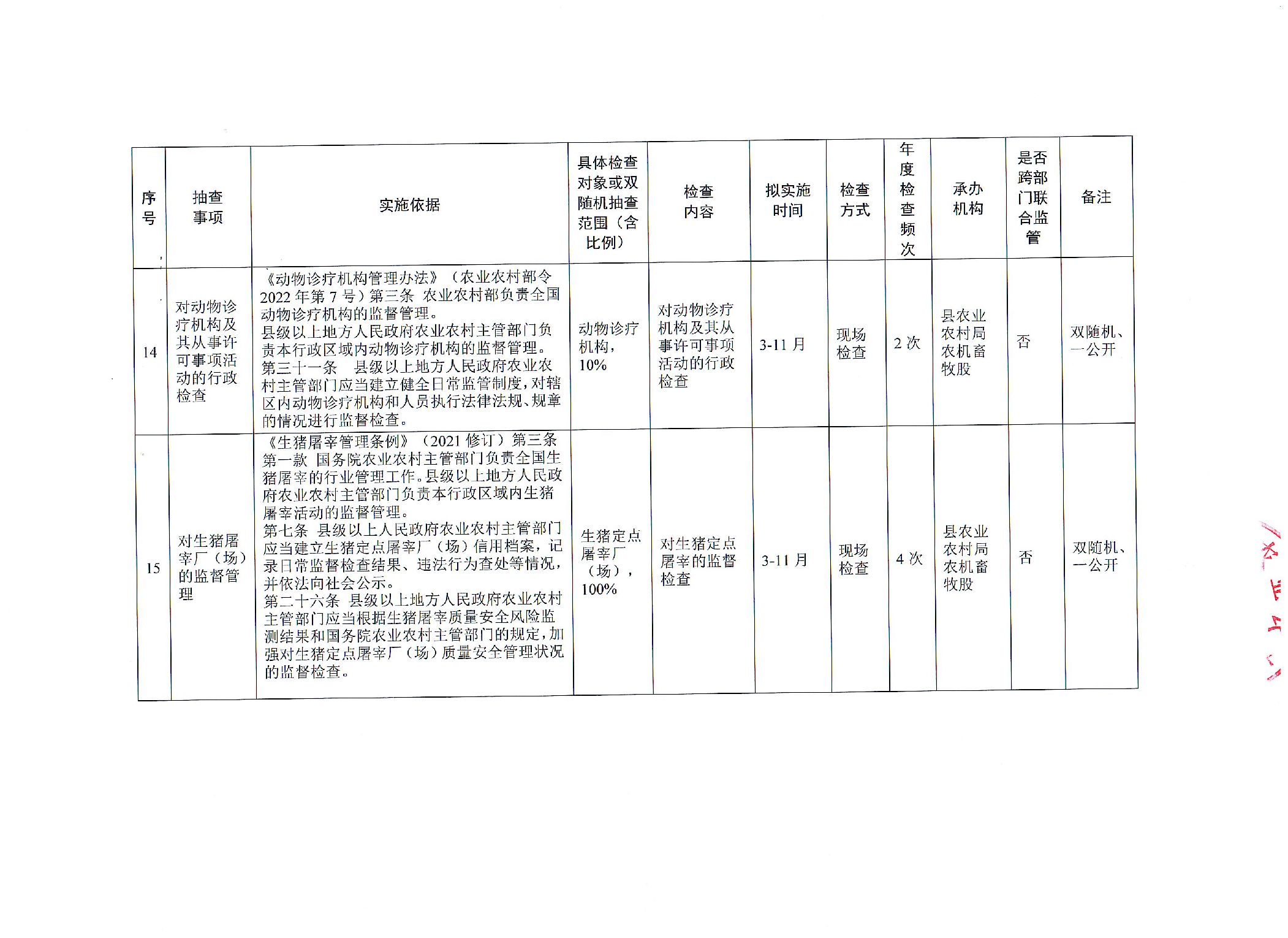安化县农业农村局2025年涉企行政检查计划