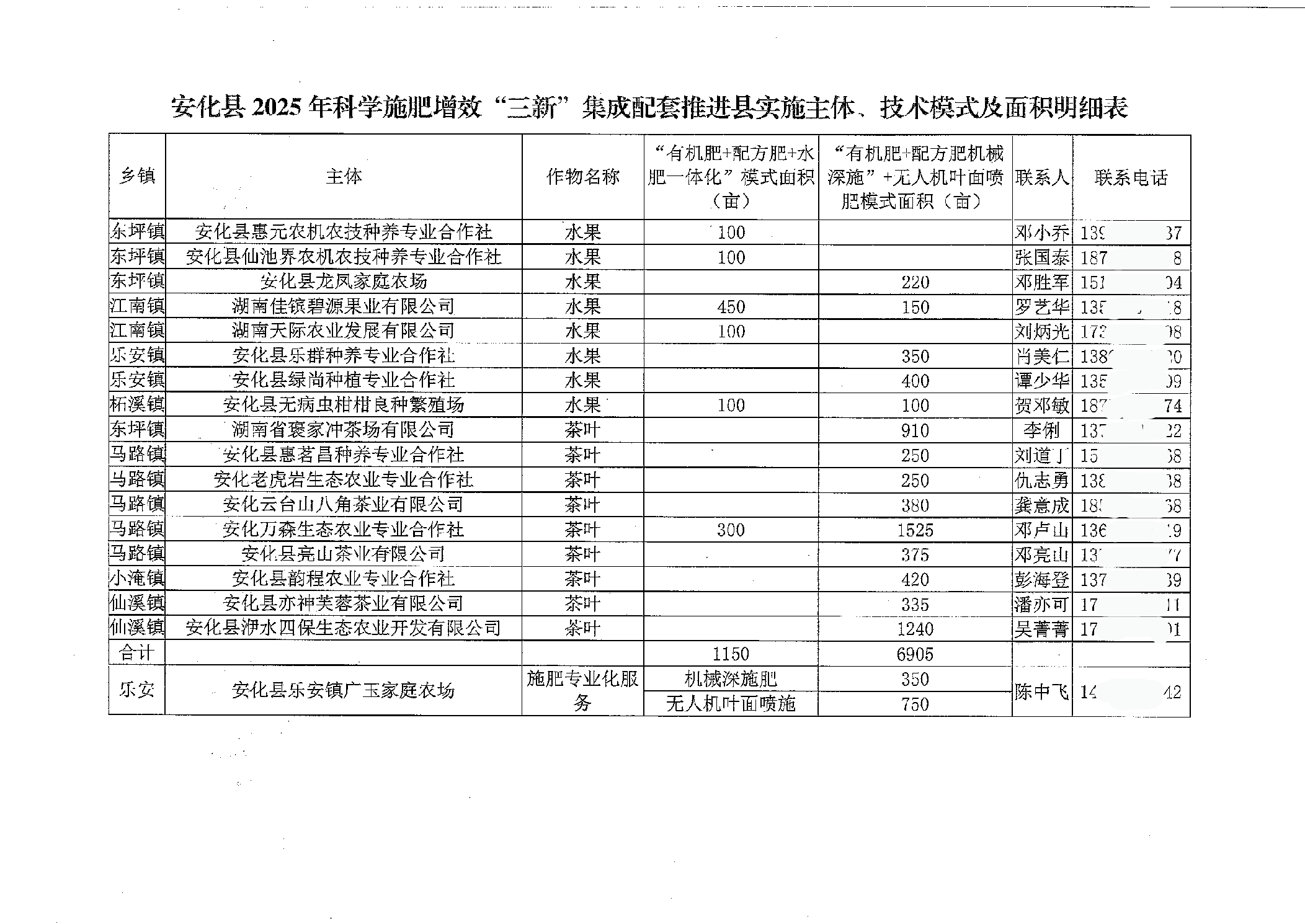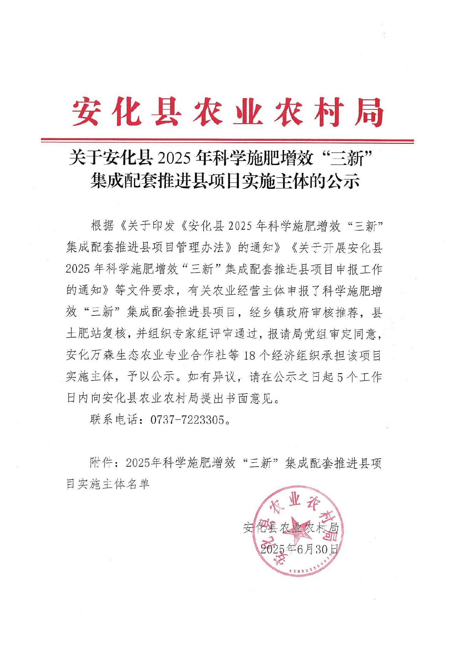 关于安化县2025年科学增肥增效“三新”集成配套推进县项目实施主体的公示