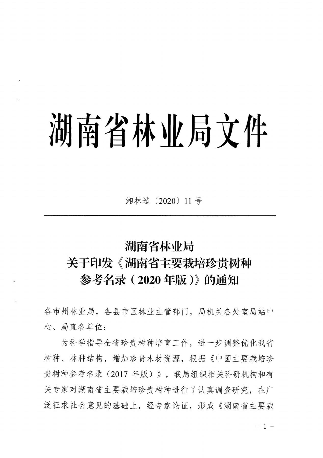 附件:1.湖南省林业局《关于印发<湖南省主要栽培珍贵树种参考名录(2020年版)>的通知》(湘林造〔2020〕11号)