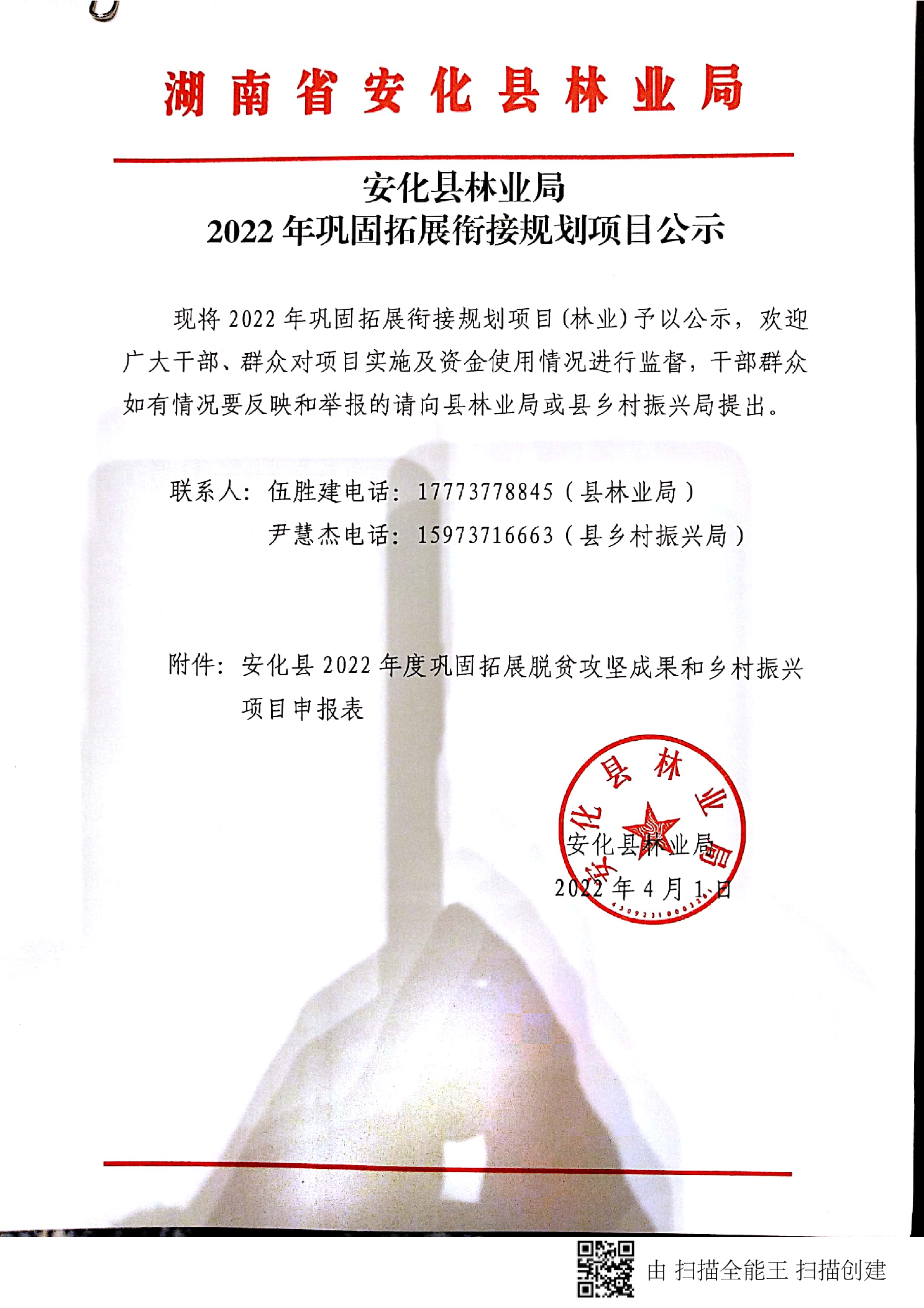 安化县林业局 2022年巩固拓展衔接规划项目公示