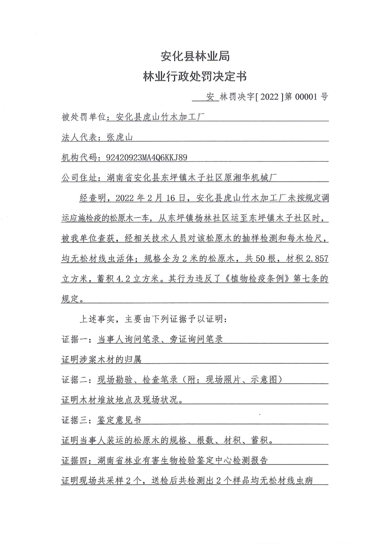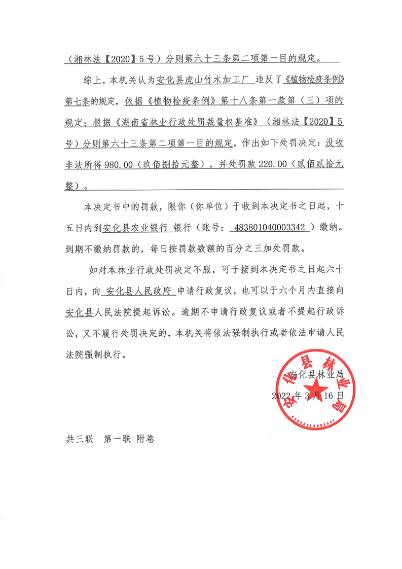 安林罚决字【2022】第00001号