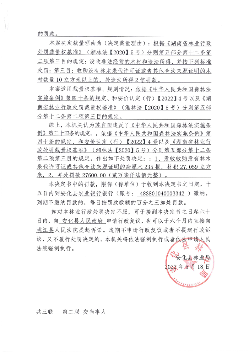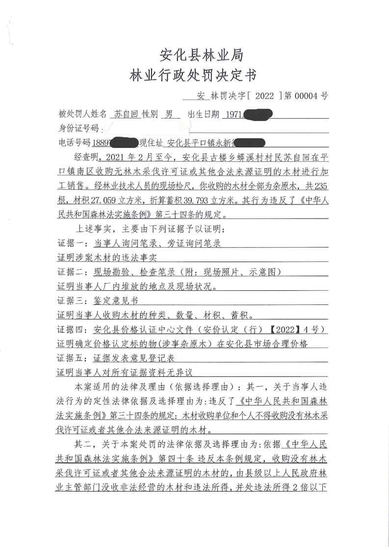 安林罚决字【2022】第00004号