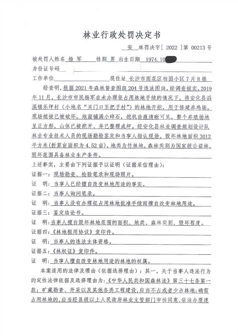 安林罚决字【2022】第00213号
