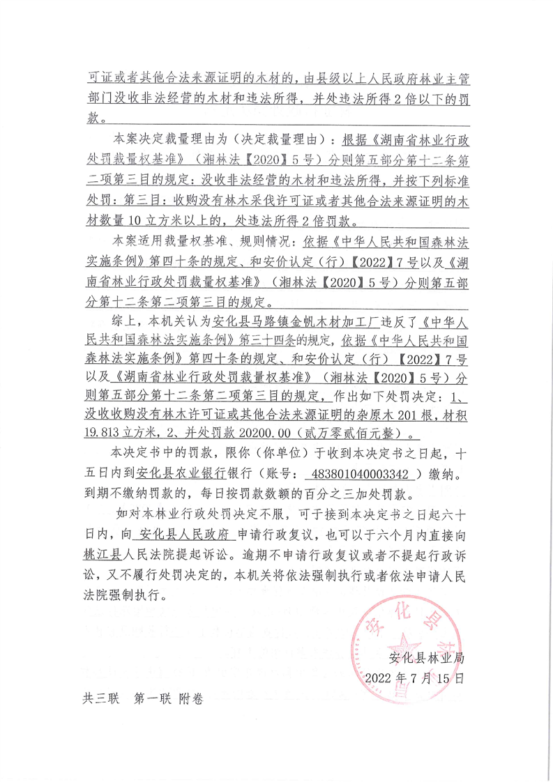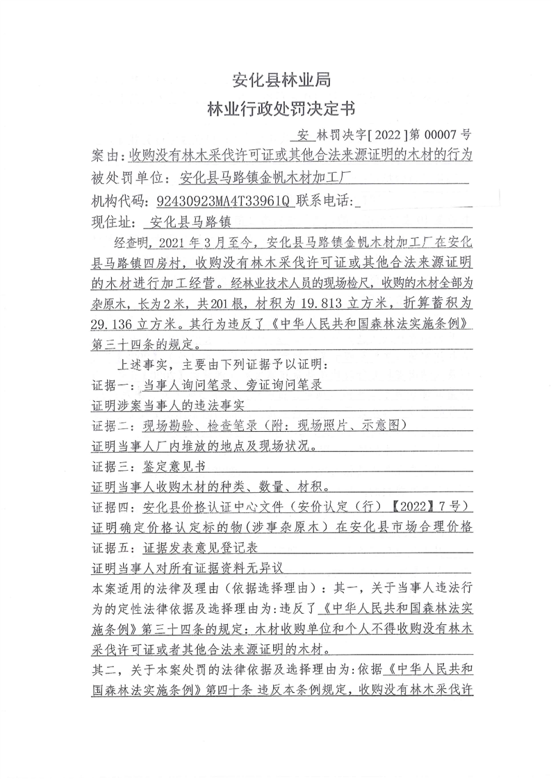 安林罚决字【2022】第00007号