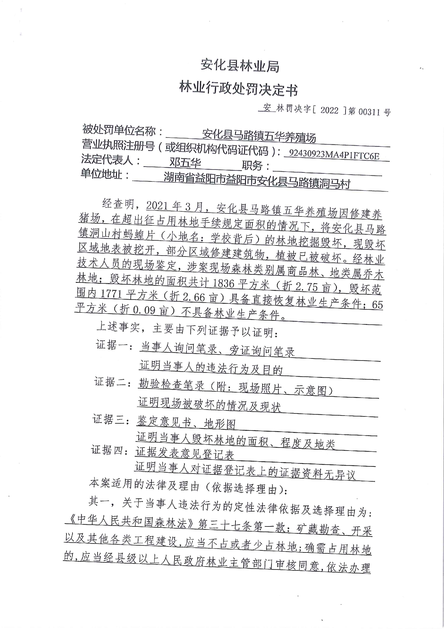 安林罚决字【2022】第00311号