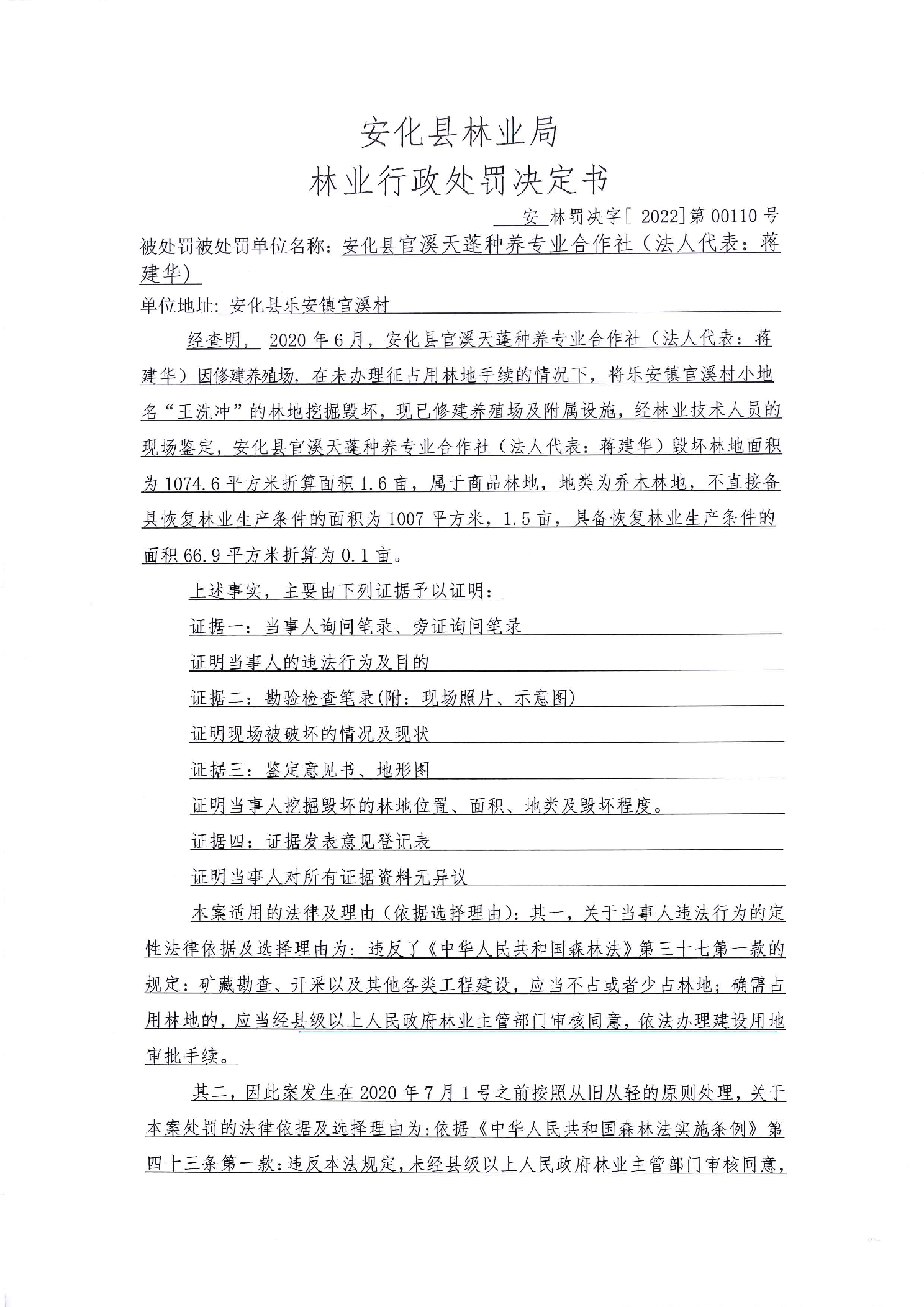 安林罚决字【2022】第00110号