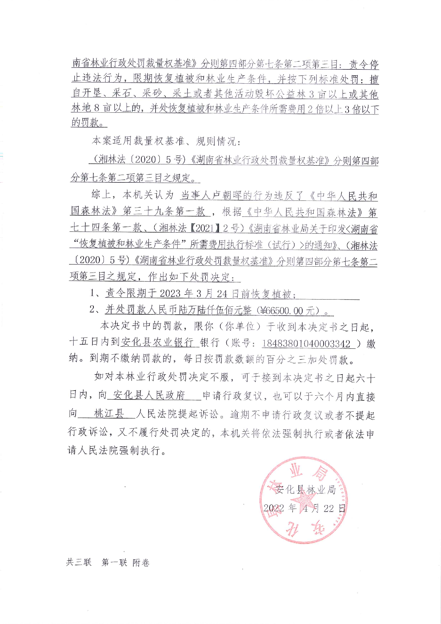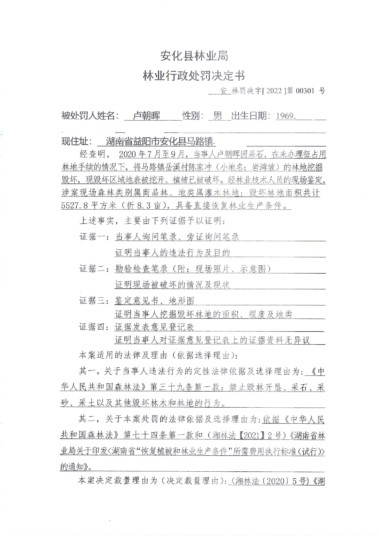 安林罚决字【2022】第00301号