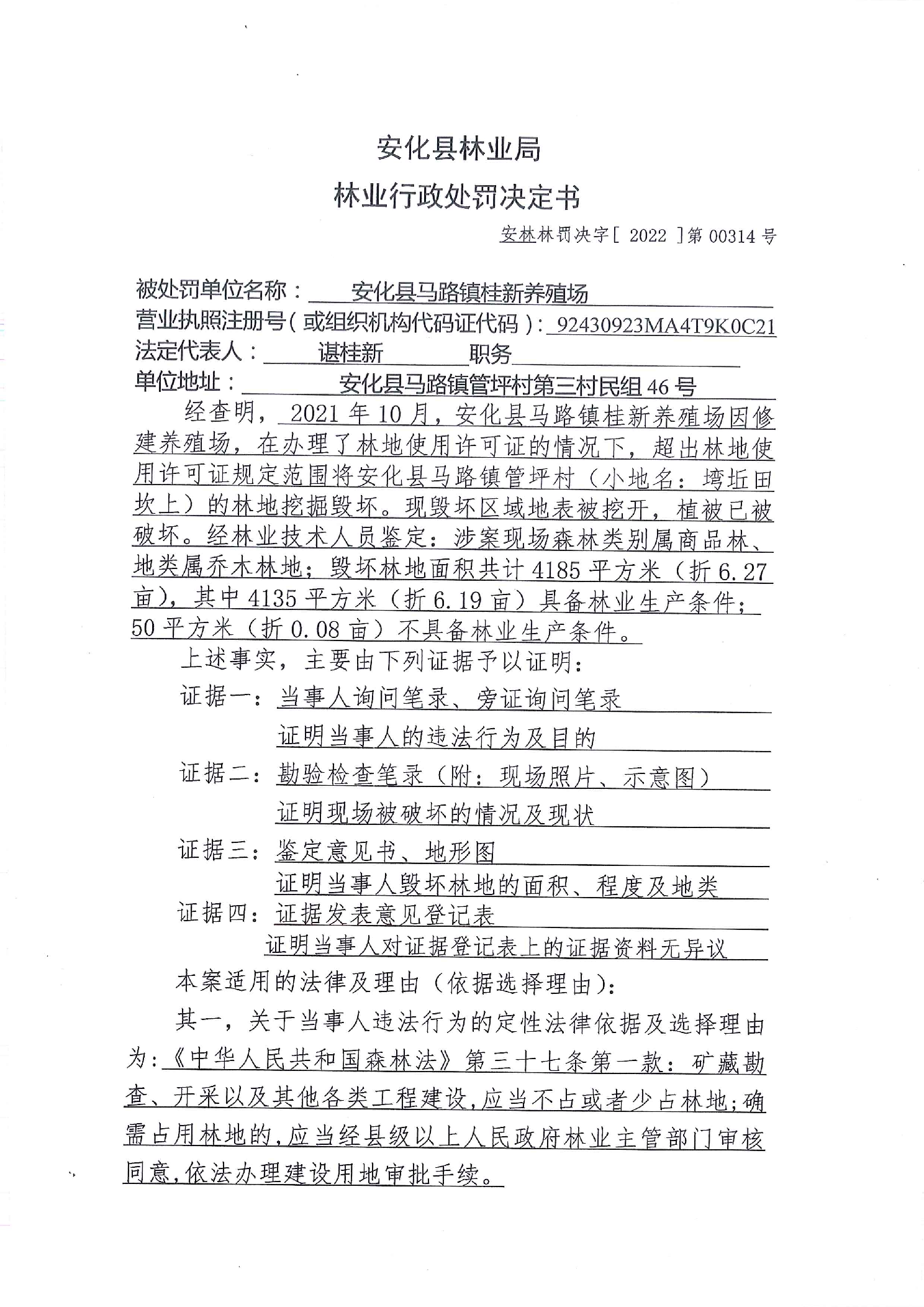 安林罚决字【2022】第00314号