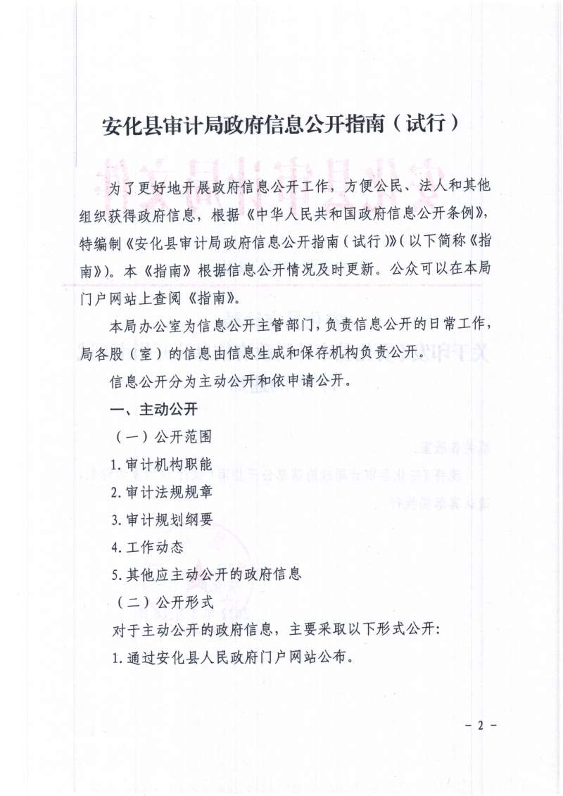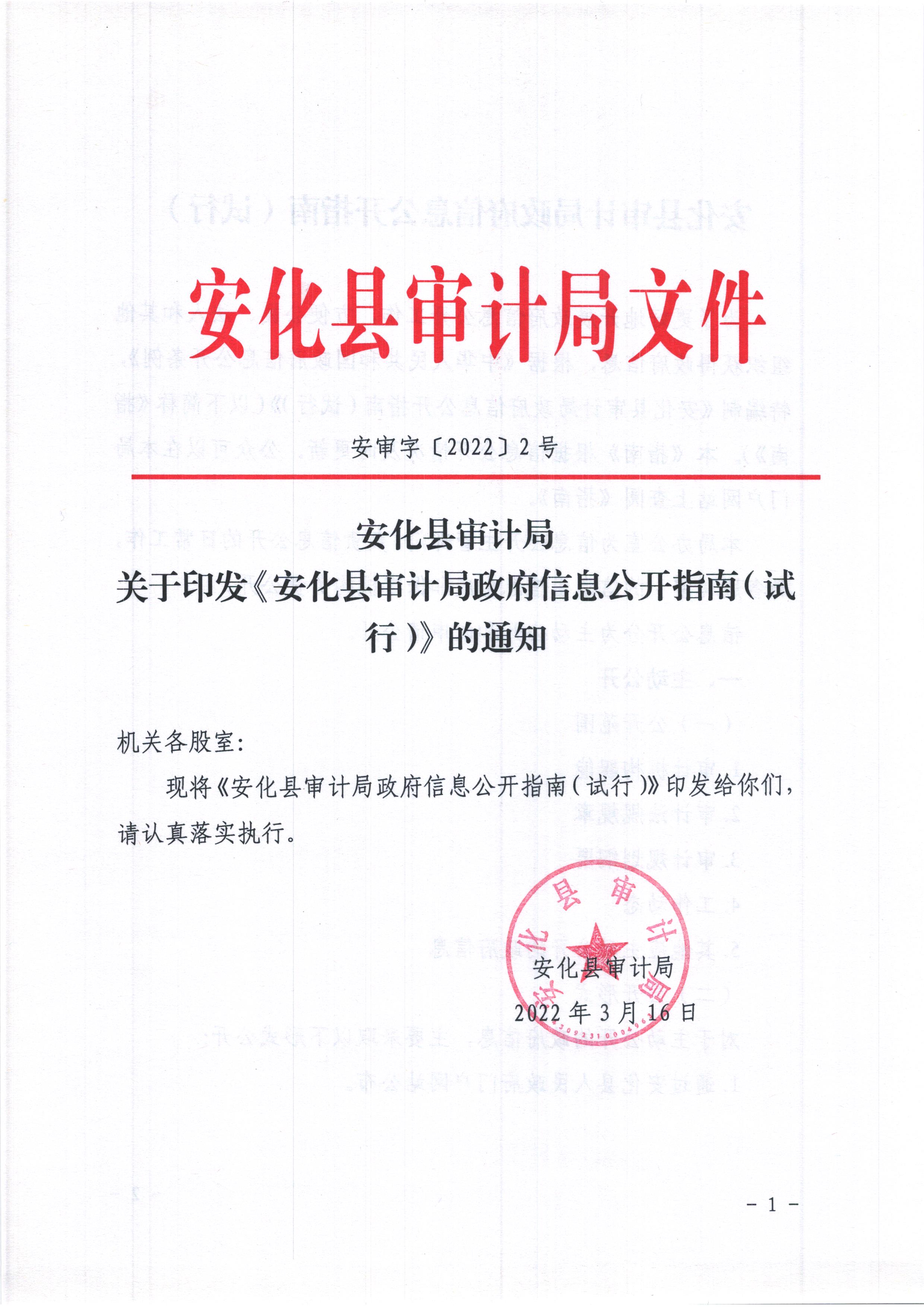 关于印发《安化县审计局政府信息公开指南(试行)》的通知