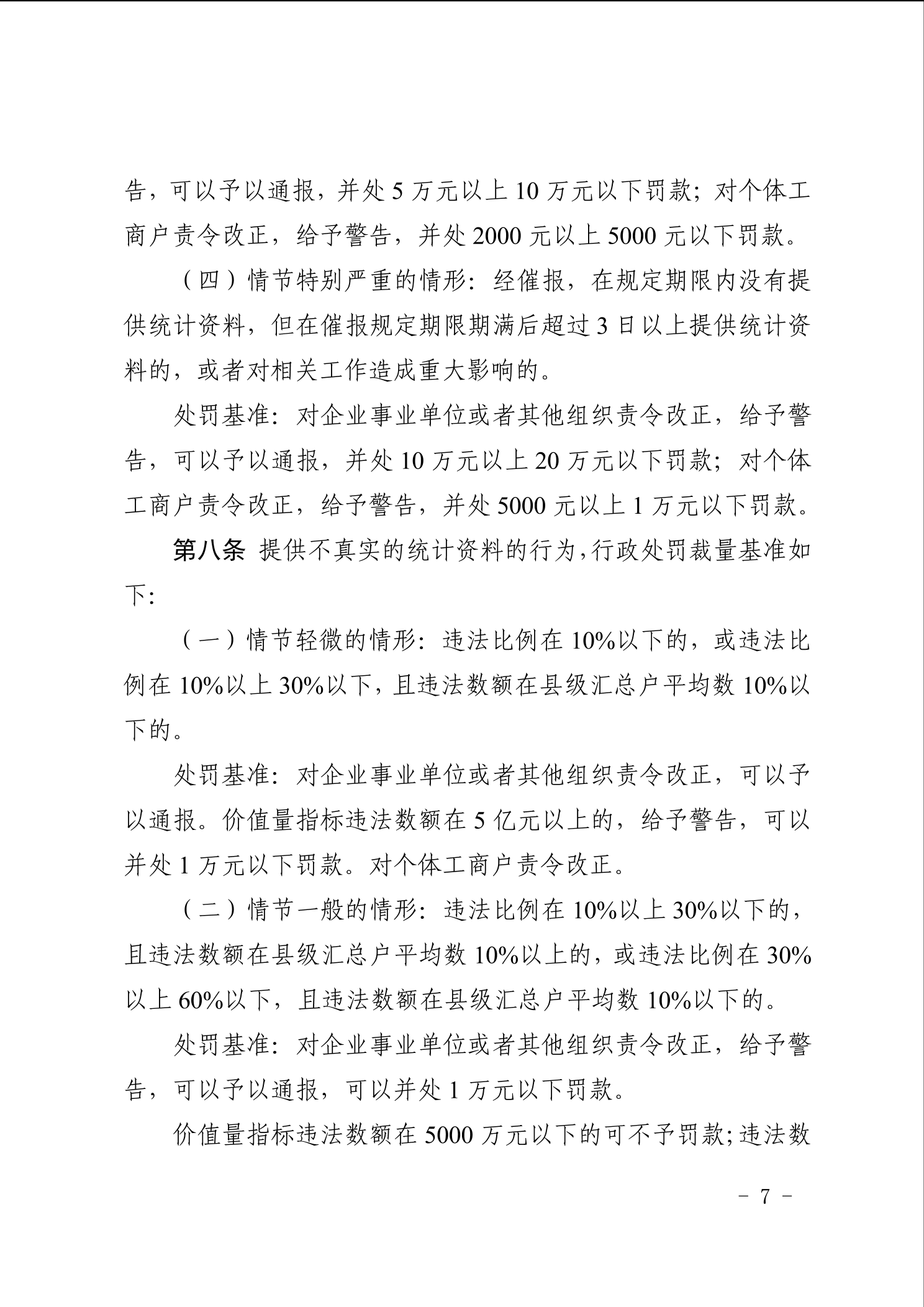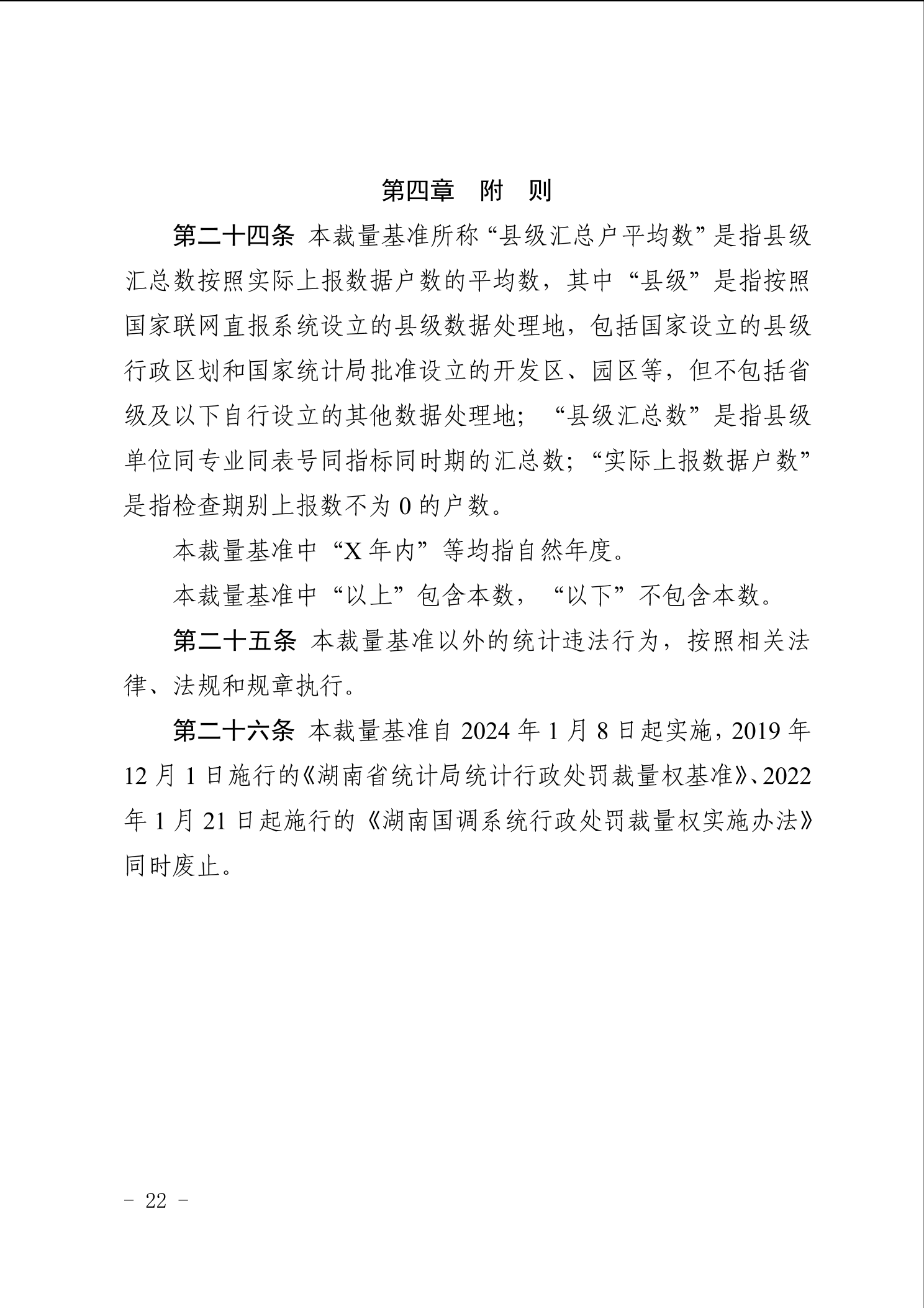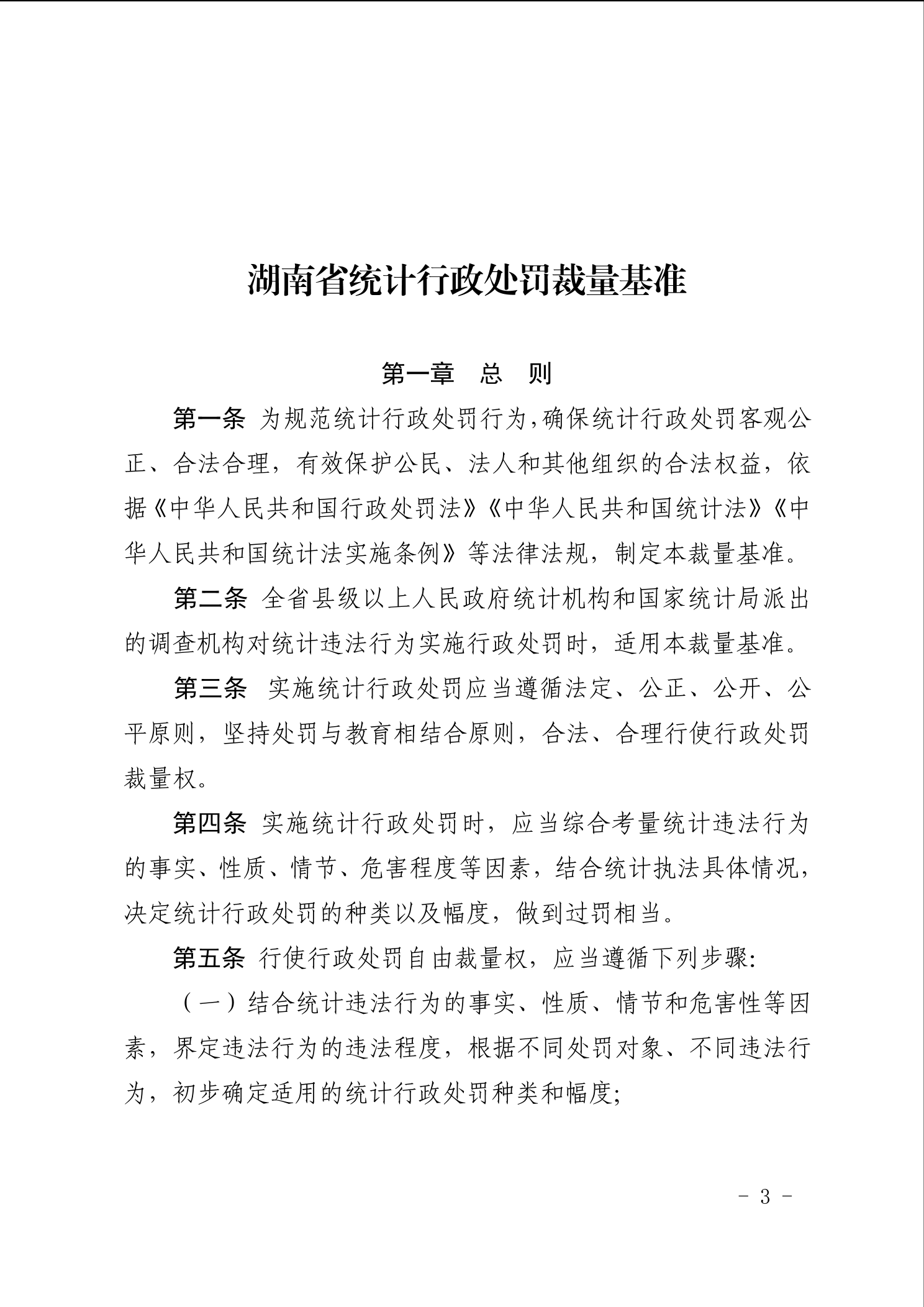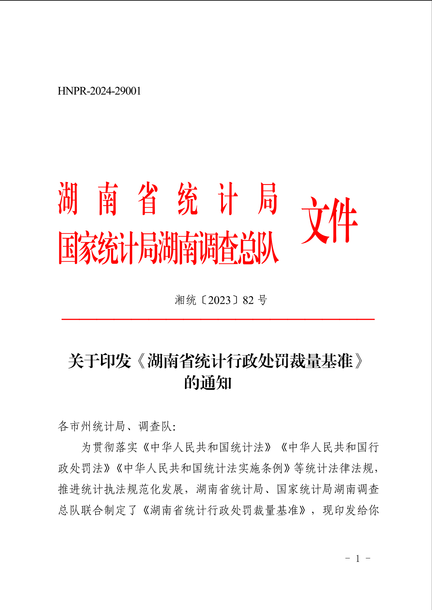 关于印发《湖南省统计行政处罚裁量基准》的通知