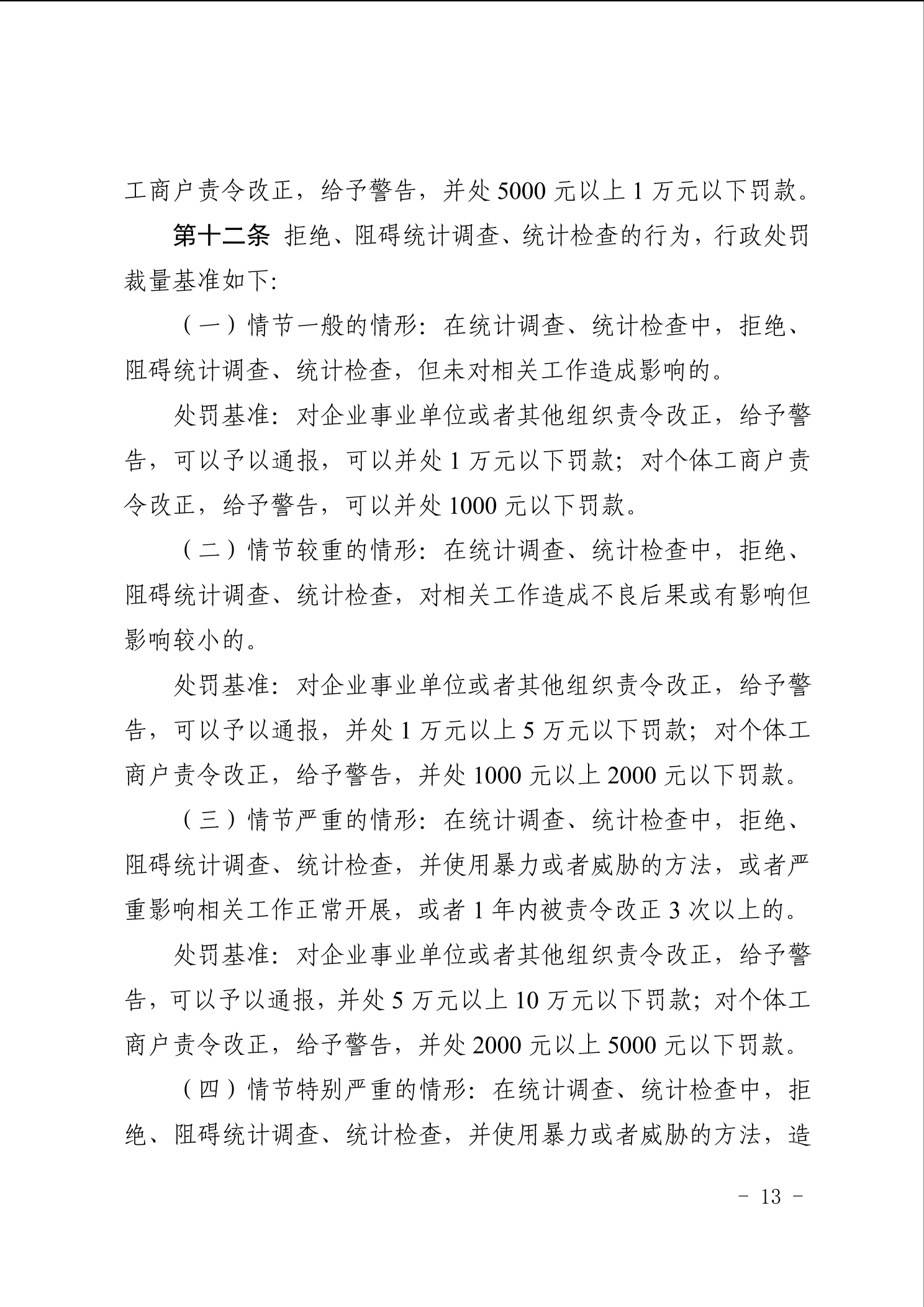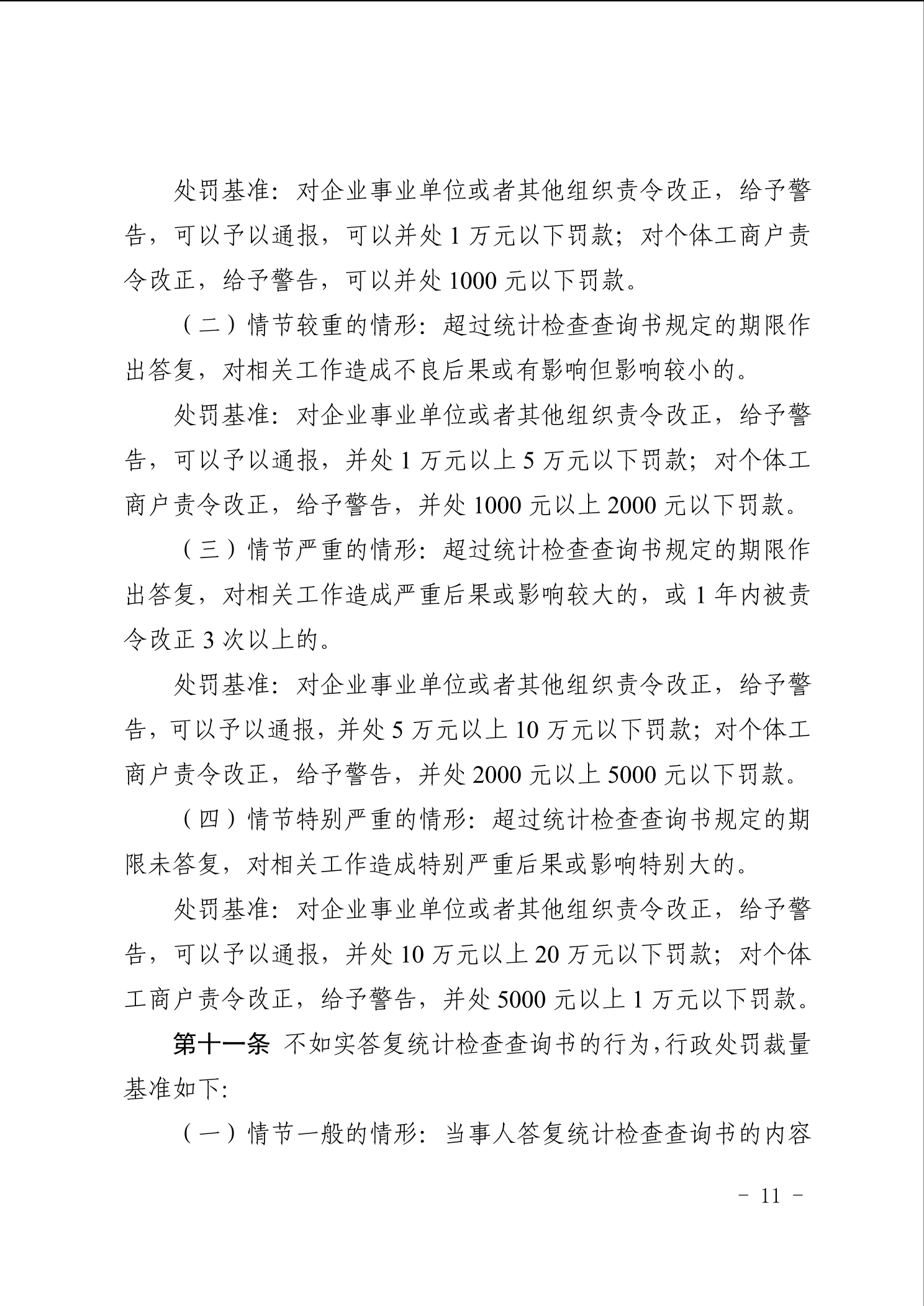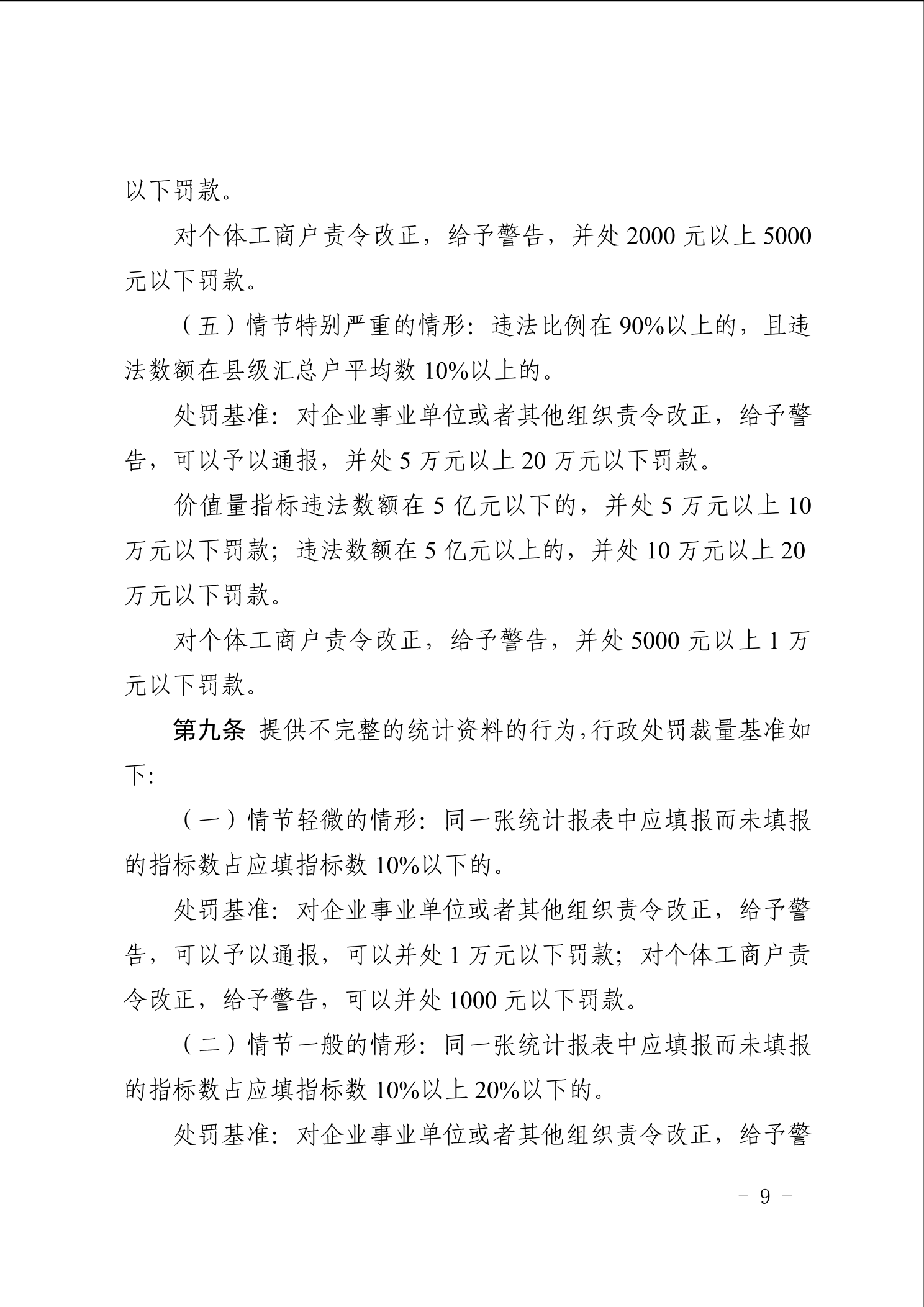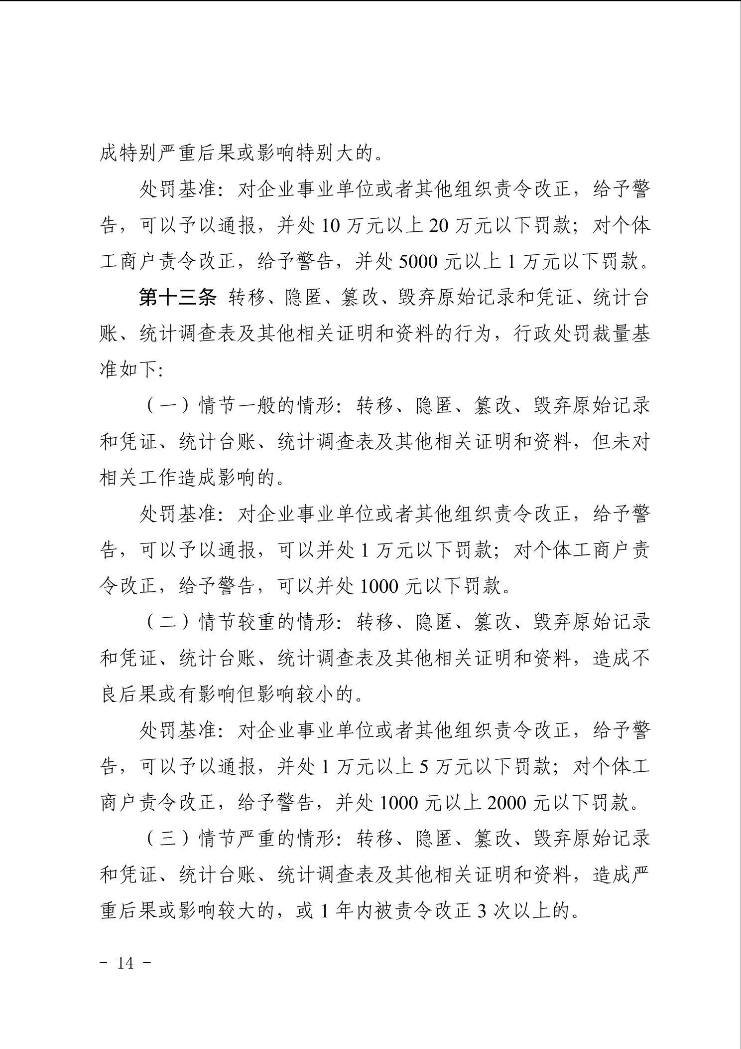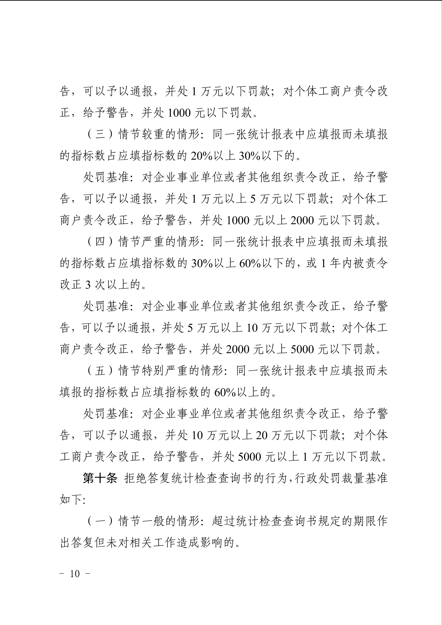 关于印发《湖南省统计行政处罚裁量基准》的通知