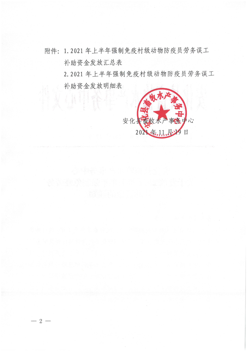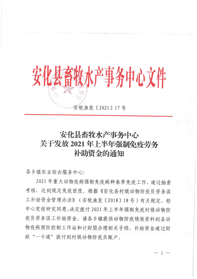 关于发放2021年上半年基层动物防疫工作补助资金的通知