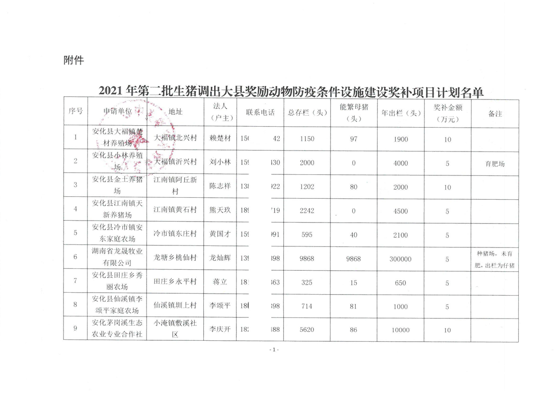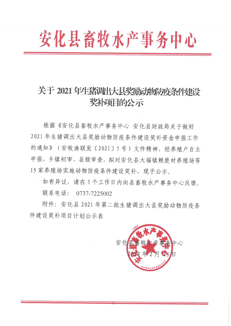关于2021年生猪调出大县奖励动物防疫条件建设奖补项目的公示
